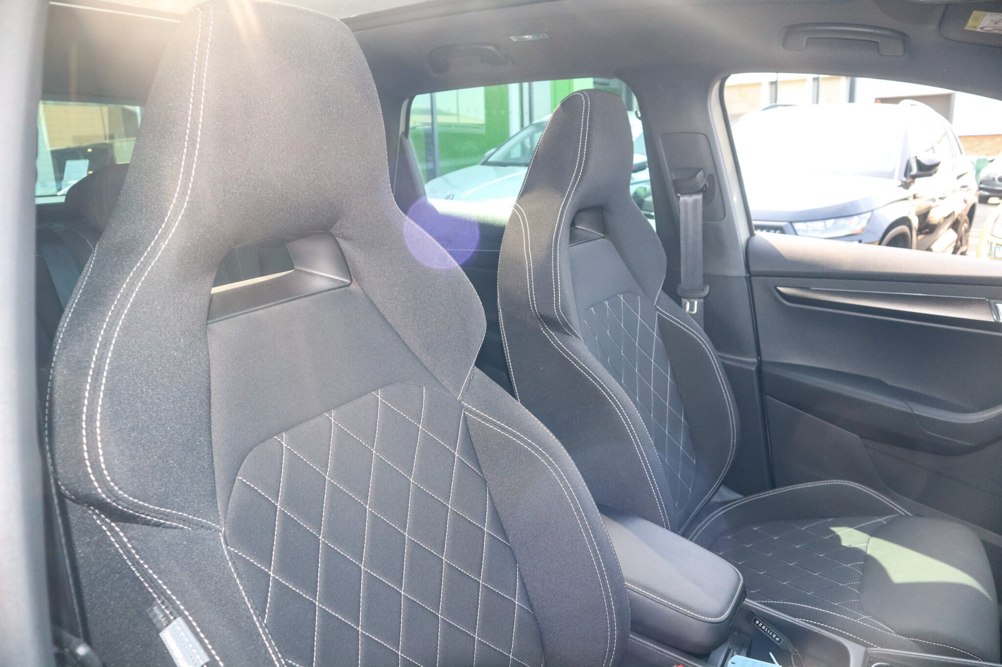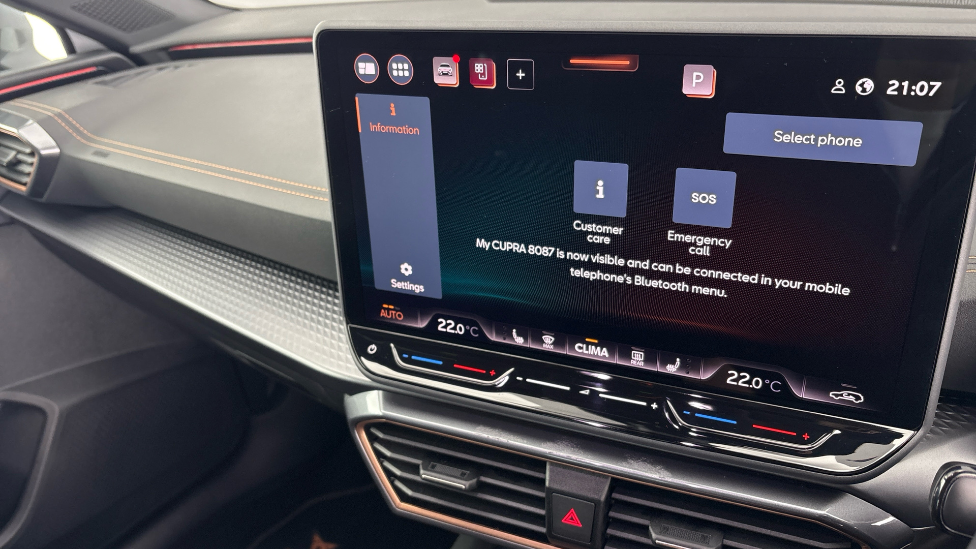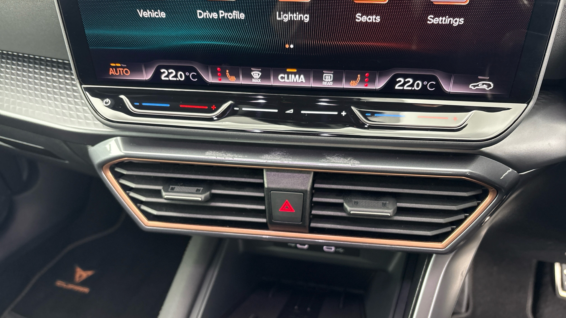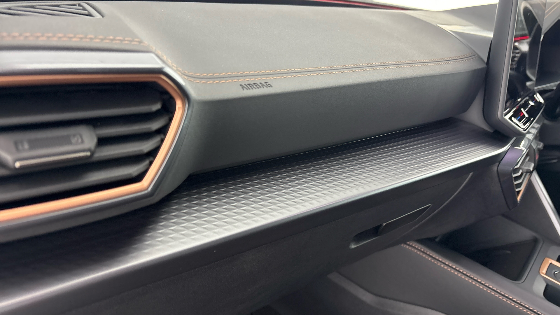 "features": "Digital cockpit and configurable dashboard, Driver alert system, Driving profile selection, Forward collision warning with automatic braking, Lane assist, Navigation system with 12'' Touchscreen Display, Park assist (inc front/rear parking sensors), PAS, Predictive adaptive cruise control with speed limiter, Rear view camera, RPM, trip computer, outside temp gauge, instrument light brightness, low fuel warning light, lights on reminder, gearshift indicator, Service interval indicator, Start/stop system with regenerative braking, Voice control system, Wired Android Auto, Wireless apple carplay, Wireless phone charger, Electronic locking differential and dynamic traction support, Standard suspension, 2 front and 2 rear USB type C sockets, Auxiliary input socket, DAB radio, Auto dimming rear view mirror, Body colour door handles, Body coloured bumpers, Dark grey wing mirror, Daytime running light with automatic headlight control and coming home feature, Dynamic headlight range control, Electric front/rear windows, Electrically adjustable heated and folding door mirrors with memory function, Front fog lamps with cornering function, Gloss black roof rails and window surrounds, LED Headlights, LED Taillights with dynamic indicator, Rain sensing wipers, Rear diffuser with black simulated exhaust pipes, Rear side wing doors, Rear wash/wipe, Third brake light, Tinted rear windows, Welcome lights, 12v power supply in centre console, 12V socket, 12v socket in loadspace, 2 front and 2 rear reading lights, 230V socket, 3 seat bench in 2nd row, 60/40 split rear bench seat with armrest and mechanical seat release, Black headlining, Dust/pollen filter, Front and rear head restraints, Front centre armrest, Height/reach adjust steering wheel, Illuminated interior front door sills, Illuminated sunvisor with mirror, Isofix, Leather multi function heated steering wheel with gear shift paddles, Luggage tie-down hooks, Single front passenger seat, Three zone climate control with control panel in rear, Variable luggage/load compartment floor, Wraparound lighting, Genuine Nappa leather Pack - Cupra, 3 point seatbelts on all rear seats, ABS, Brake control system - ESC and brake booster, Child proof door locks, Driver and front passenger airbags with front passenger airbag de-activation, Electronic parking brake, Front and rear disc brakes, Front side curtain airbags, Hill hold control, Public e-call, Seat belt reminder for front and rear seats, Tyre pressure monitoring system, Anti theft alarm system, Keyless entry and start system (KESSY), Locking wheel bolts, Copper and aluminium interior detailing, 19\" 'Exclusive' machined sport matte black and silver alloy wheels, ",