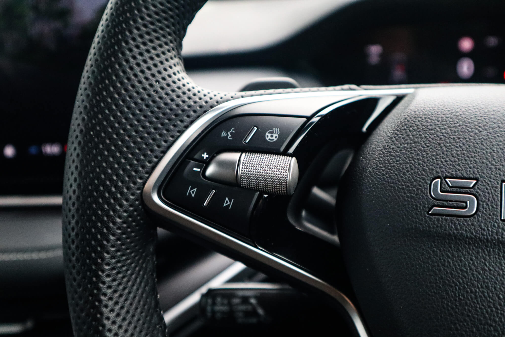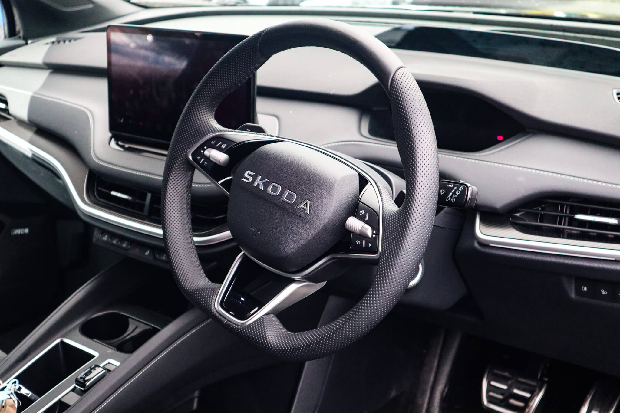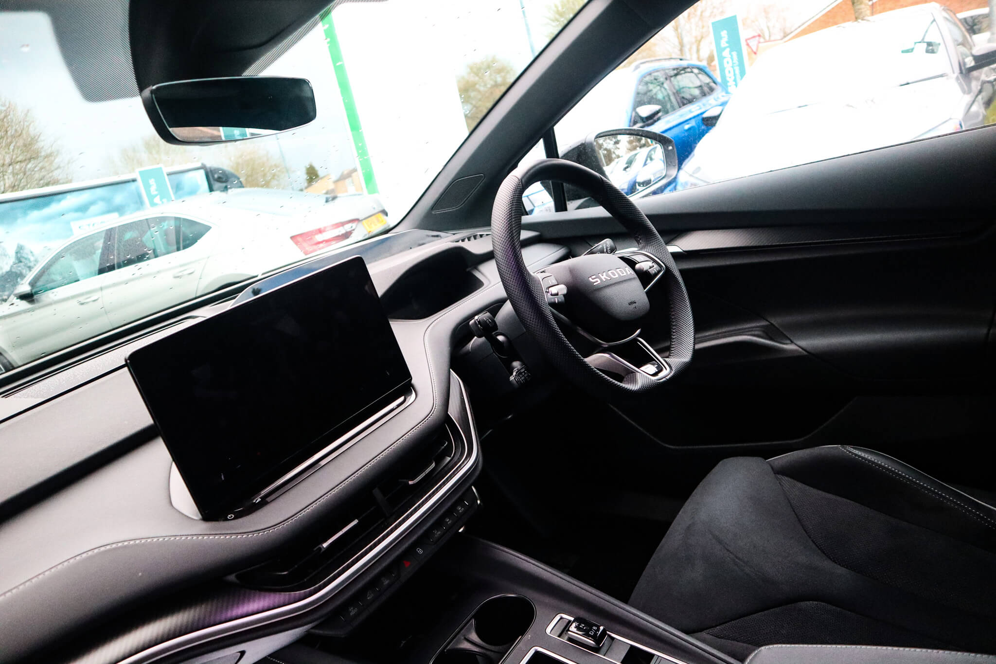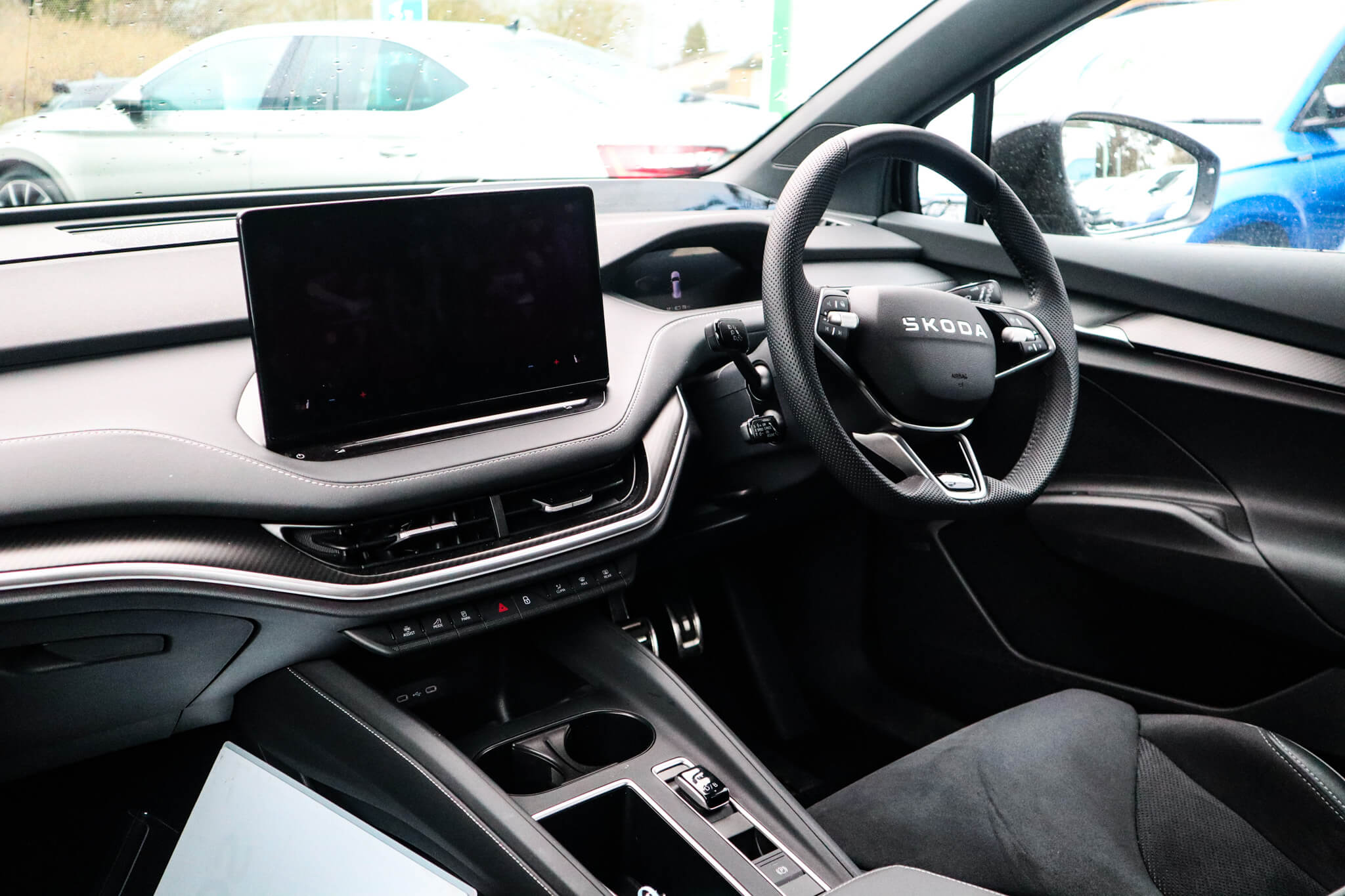 "features": "13\" touchscreen display, 15W wireless charging with cooling function, 5\" Digital cockpit, Blind Spot Detection (BAS), Bluetooth system, Drive mode selector, Driver alert system, E-call, Electrically operated tailgate with kick activation (virtual pedal), Electronic engine sound, Emergency steering support with turn assist, Exterior temperature indicator, Front and rear parking sensors, Front assist with assisted automatic braking to vehicles, pedestrians and cyclists, Gesture control, Predictive adaptive cruise control with traffic jam assist, Progressive steering, Satellite navigation system, Skoda Connect iV remote services with charging, air conditioning and smart schedules, Speed assist, Speed limiter, Traffic sign recognition, Travel assist plus with emergency assist, lane assist plus with narrow lane assist and urban evasive steering support, Voice control system, Washer fluid level indicator, Wi-Fi hotspot, Wireless smartlink, 175 kW DC charging, 6m mode 3 cable (32A), Four wheel drive, Sports suspension, 45W USB-C ports (charging + data) front and rear, DAB Digital radio, Auto dimming rear view mirror, Body colour door mirrors and handles, Body colour door sills, Dashboard and door moulding light in multiple colours, Door mirror memory, Dynamic headlight range control with cornering light function, Electric adjustable heated folding door mirrors with boarding spots and welcome logo, Electric front and rear windows, Full LED Matrix beam headlights with variable light distribution, Gloss black roof rails, Gloss black tailgate lettering, Gloss black window surround, Heat insulating darkened glass in side and rear windows, Heat insulating glass in windshield, Integrated fog light with all-weather function, LED daytime running lights, LED rear lights with animated indicators, LED third brake light, Light assistant (coming and leaving home), Privacy glass and acoustic side windows, Radiator grille in gloss black, Rain and light sensors, Rear side wing doors, Rear spoiler, Rear window wiper with washer system and intermittent control, Safety reflectors on front and rear doors, Sports bumpers, Variable front intermittent wipers, 12V socket in boot, 1x umbrella, 3 rear headrests, 3 seat bench in 2nd row, 3-spoke leather heated sports multifunction steering wheel with paddles for recuperation level selection, 60:40 foldable rear seat with sliding adjustment and backrest angle adjustment, Aluminium pedals, Black headlining, Black textile floor mats with grey stitching, Boot lighting, Electrically adjustable driver seat with memory function, Extended interior noise suppression, Front and rear footwell lighting, Front courtesy lights, Front reading lights, Front sport seats, Front sports head restraints, Heated front seats, Height adjustable drivers seat, Height adjustable front passenger seat, High centre console with armrest, Interior door handle lighting in front and rear, Isofix child seat fittings in outer rear seats with top tether, Isofix child seat preparation for front passenger seat, Laminated soft-touch plastic knee rest, LED ambient lighting, Manual rear window blind, Manually adjustable steering column, Massage functionality for drivers seat, Microsuede/artificial leather upholstery, Pollen filter, Power adjustable lumbar front seats, Rear reading lights, Single front passenger seat, Sliding boot cover, Sunvisors with illuminated vanity mirrors, Tri zone climate control, Advanced package with head up display - Enyaq, 3 point height adj front seatbelts + pretensioners, Auto door release and activation of warning lights in the event of an accident, Central interaction airbag, Crew protection assist, Driver and front passenger airbags, ESC (incl. ABS+MSR+ASR+EDS+HBA+DSR+RBS+MKB), Front and rear three point safety belt on all seats, Front disc brakes, Front passenger airbag deactivation switch, Front side airbags with curtain airbags, Height adjustable seatbelts, Power child locks, Rear drum brakes, Rear side airbags, Two tone horn, Tyre pressure monitor, Visual and acoustic seat belt reminder, Warning lights in front doors, Anti theft alarm system with interior monitoring, backup horn and towing protection, Central locking system with SAFE system, Keyless entry and start/stop system advanced with walk away locking, Black artificial leather dashboard with grey stitching, Carbon effect decorative inserts, Matte black lining around drive selector, Anti-theft wheel bolts protection, Tyre repair kit with compressor, ",