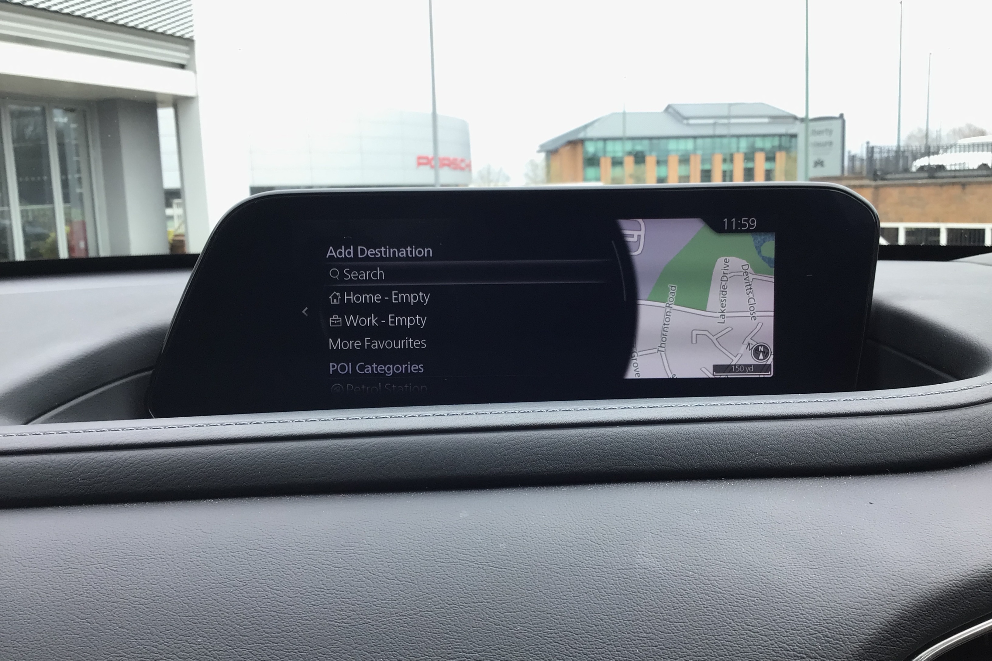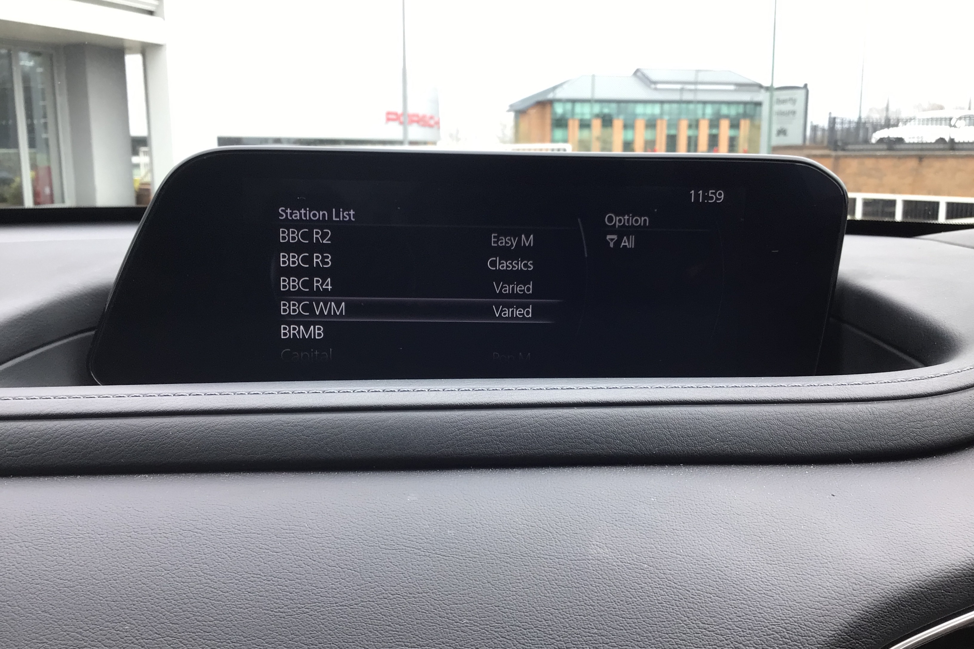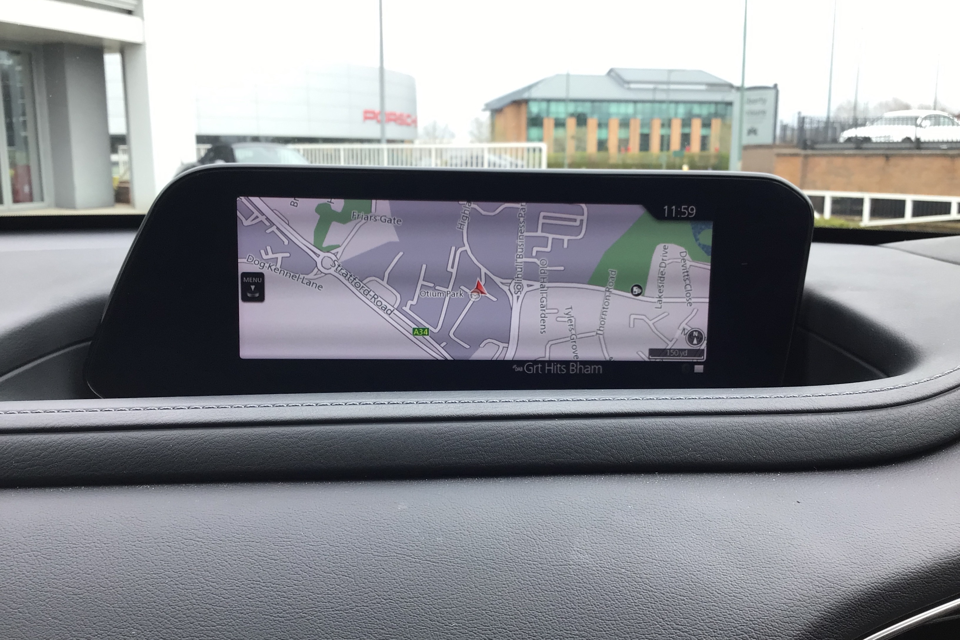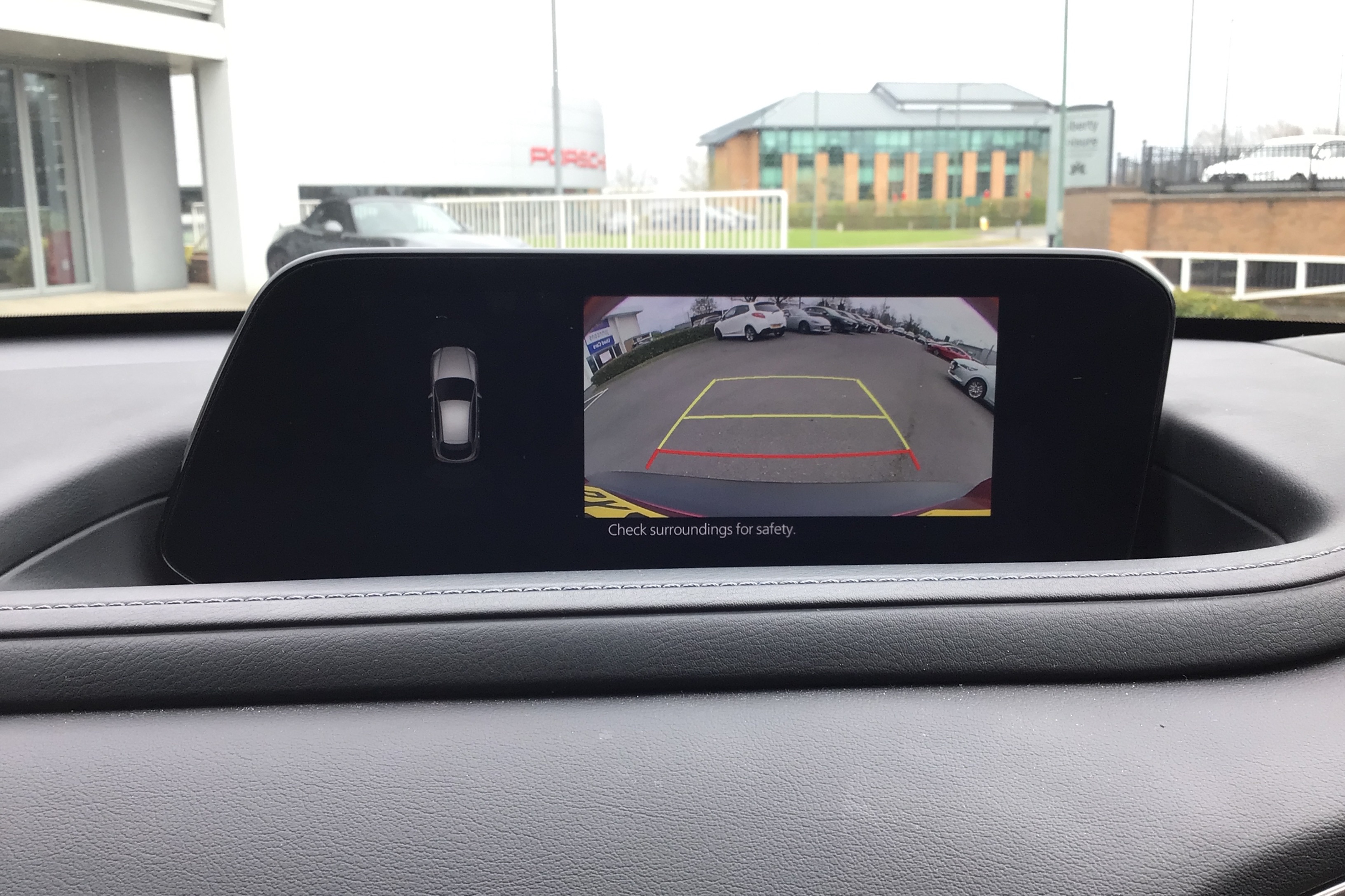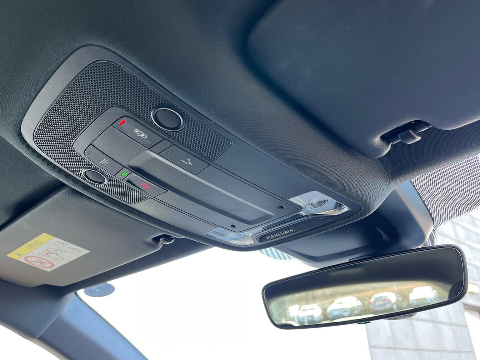 "Dimming rear view mirror with black surround",