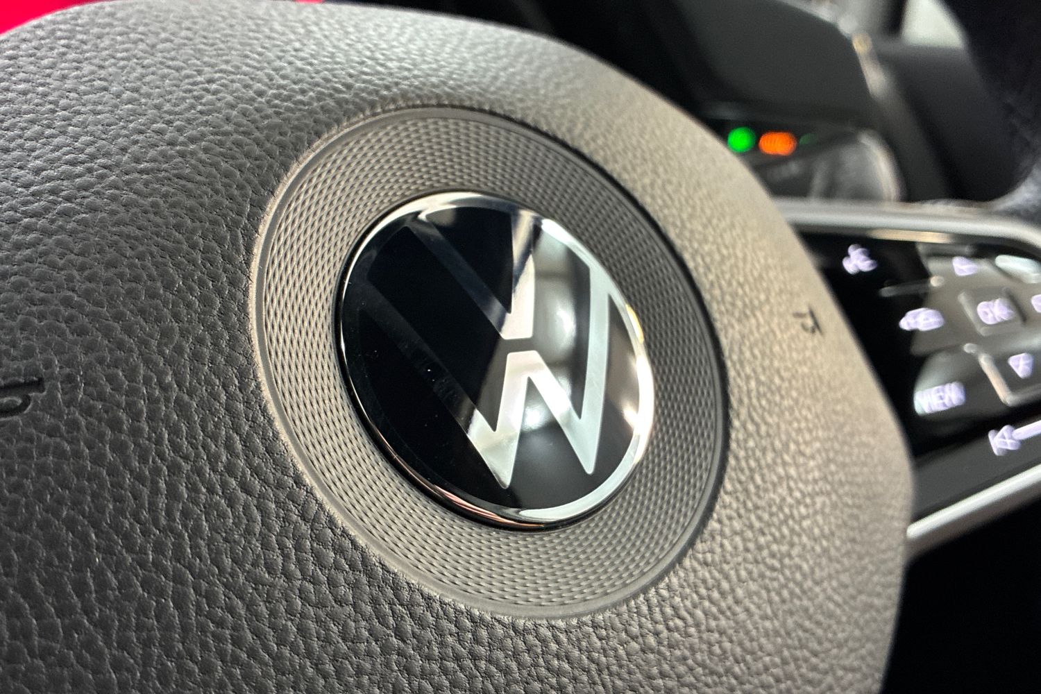 "Latice curved decorative insert on the dashboard with hot stamping in copper and white ambient lighting white"