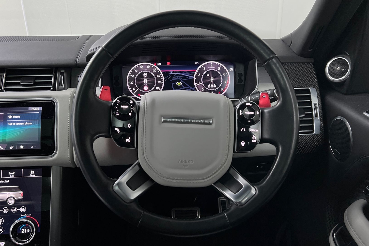 "3 spoke flat top and bottomed leather multi function sport steering wheel with gear shift paddles and \"S\" badging",