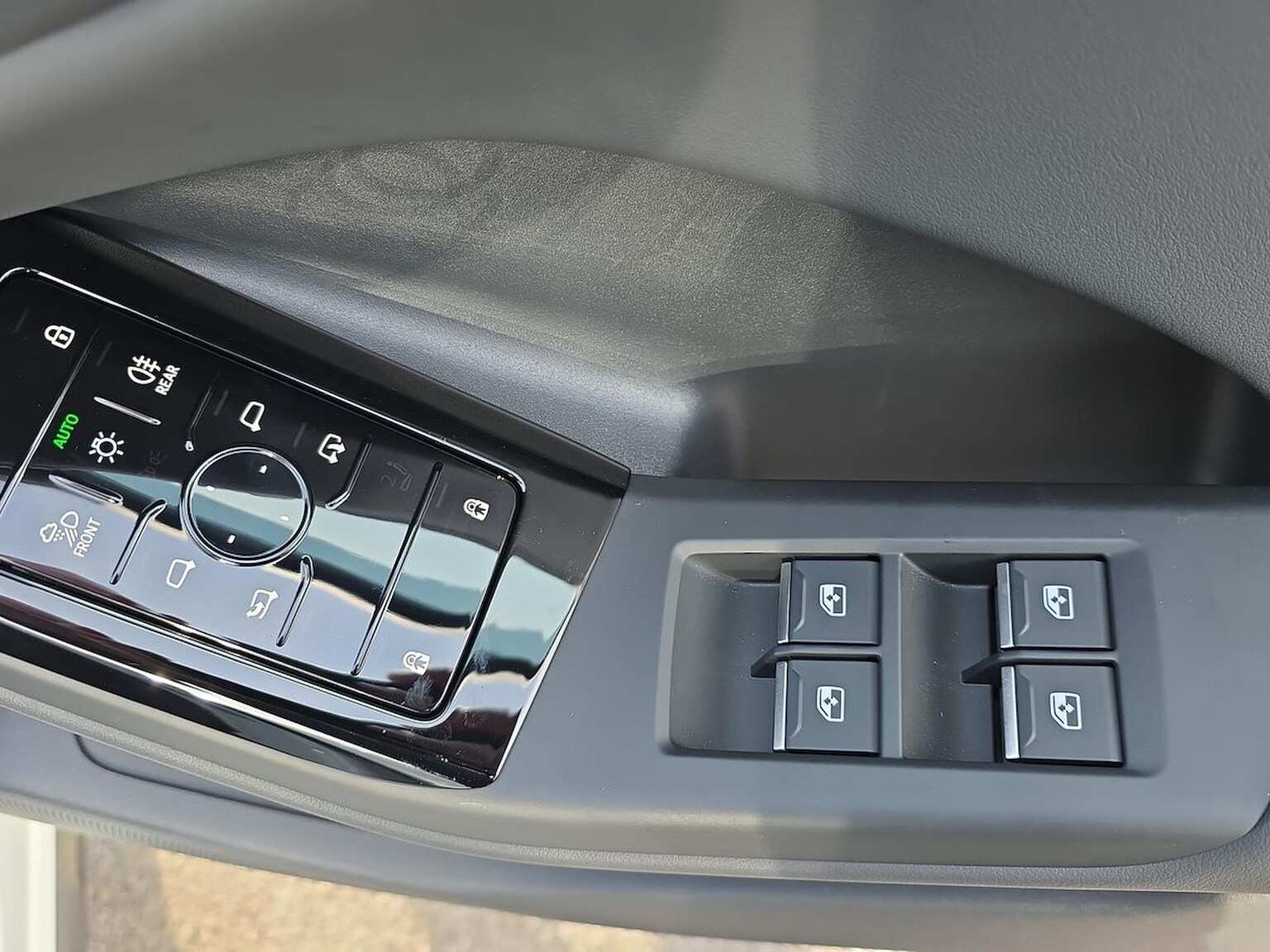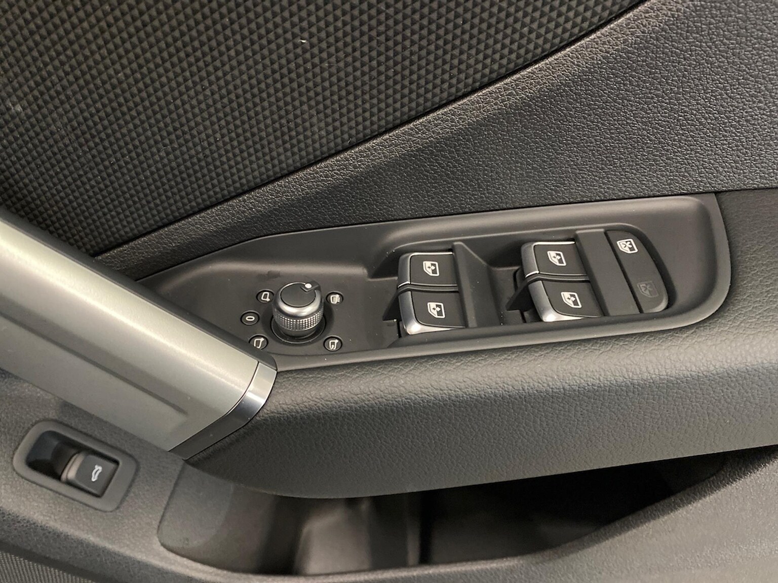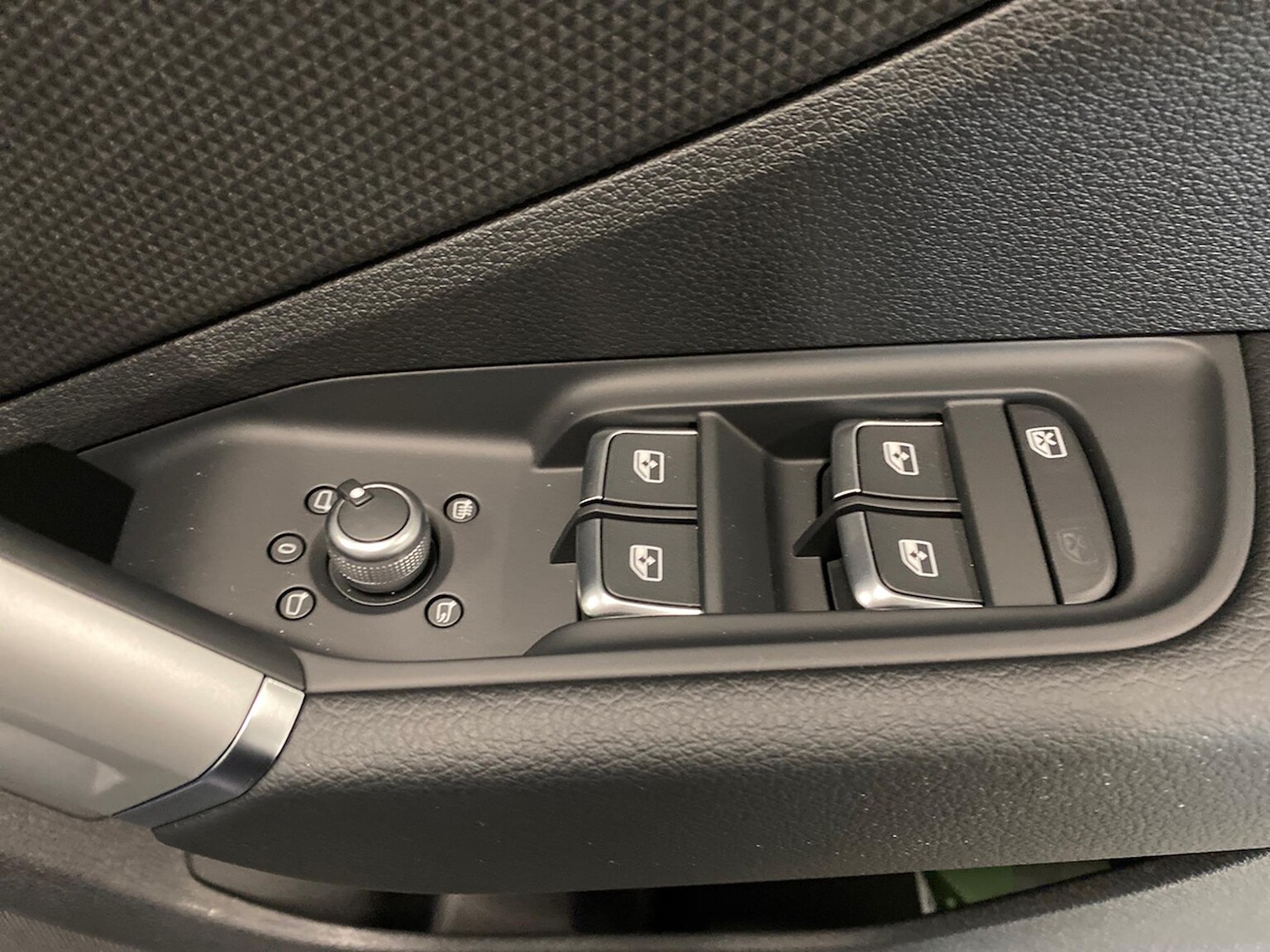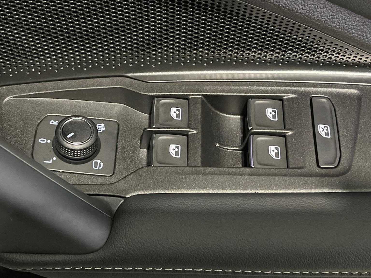 "Chrome applications on rotary light, mirror adjustment, window regulator switches, outlet with frame in black",