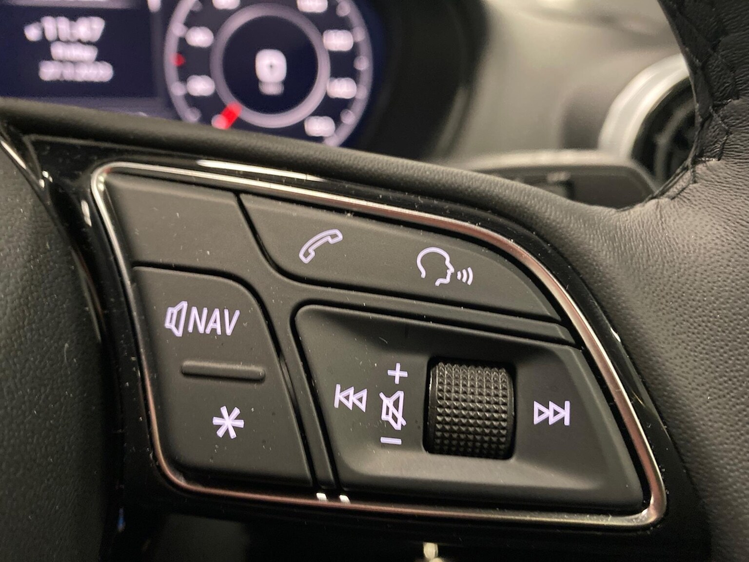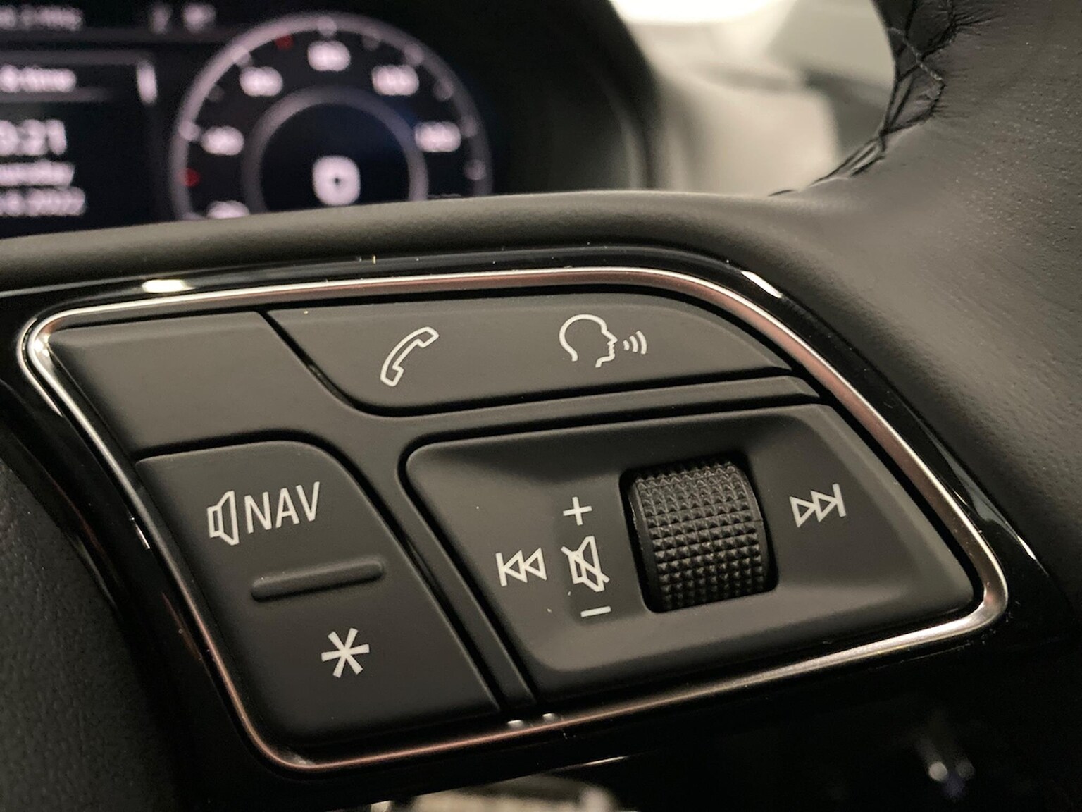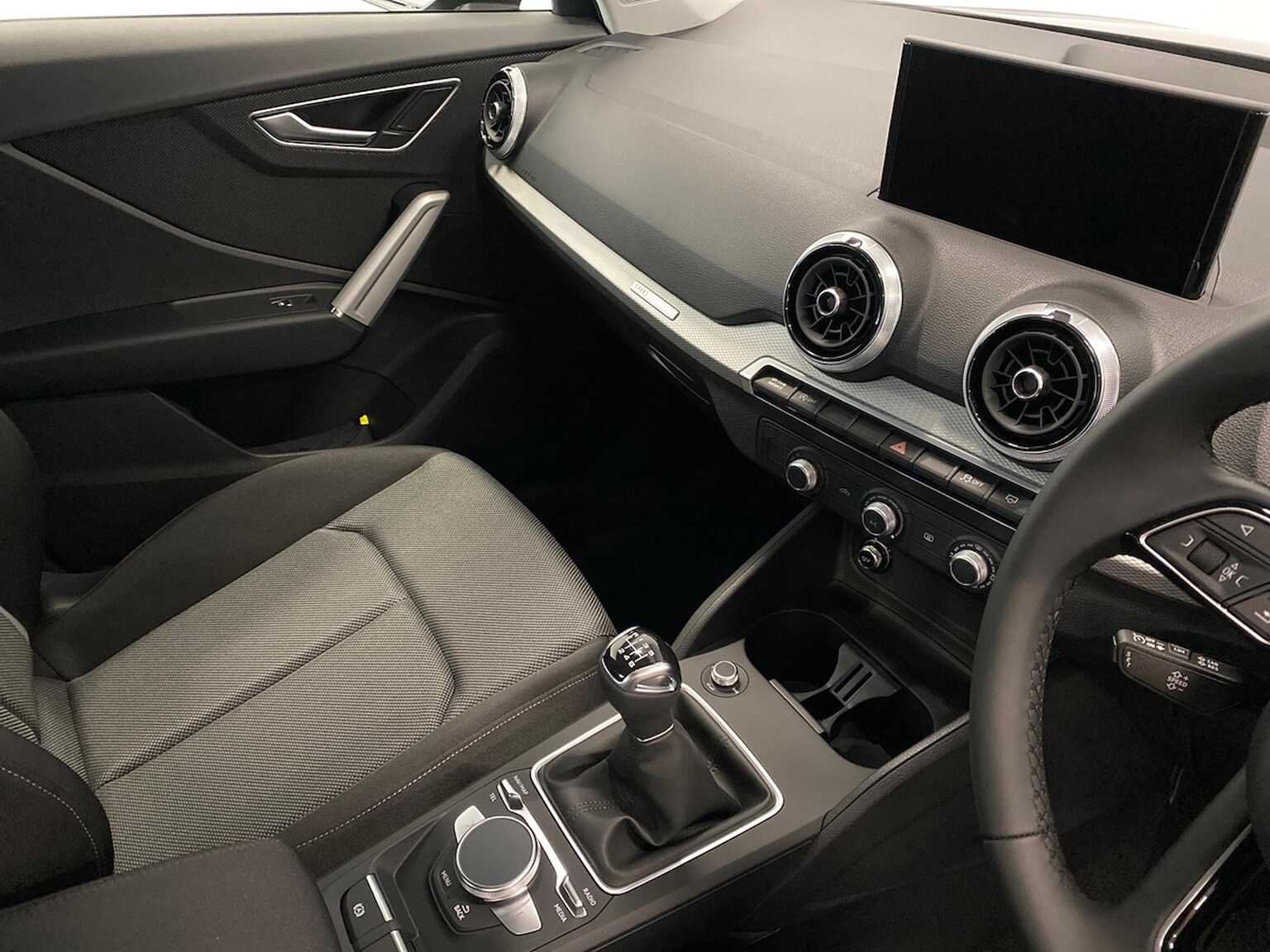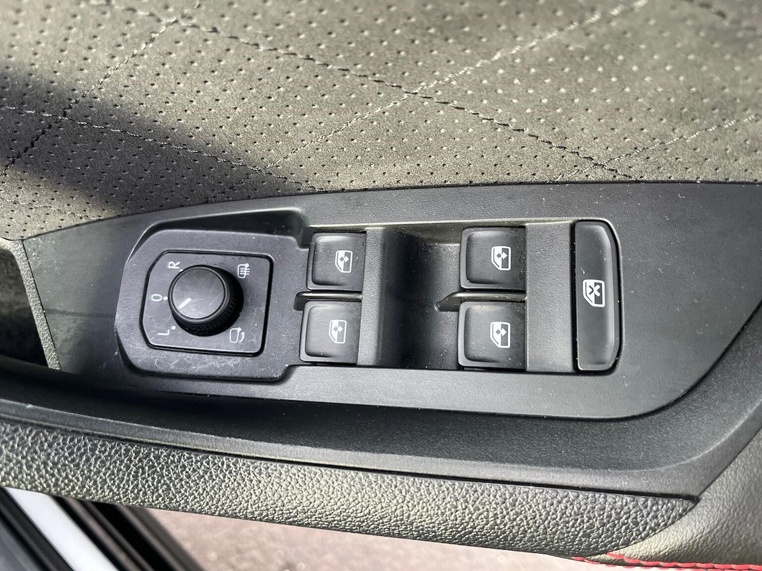 "Chrome applications on rotary light, mirror adjustment, window regulator switches, outlet with frame in black",