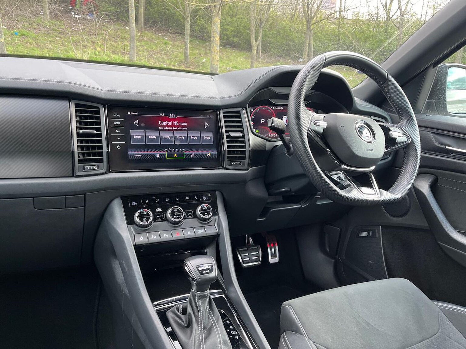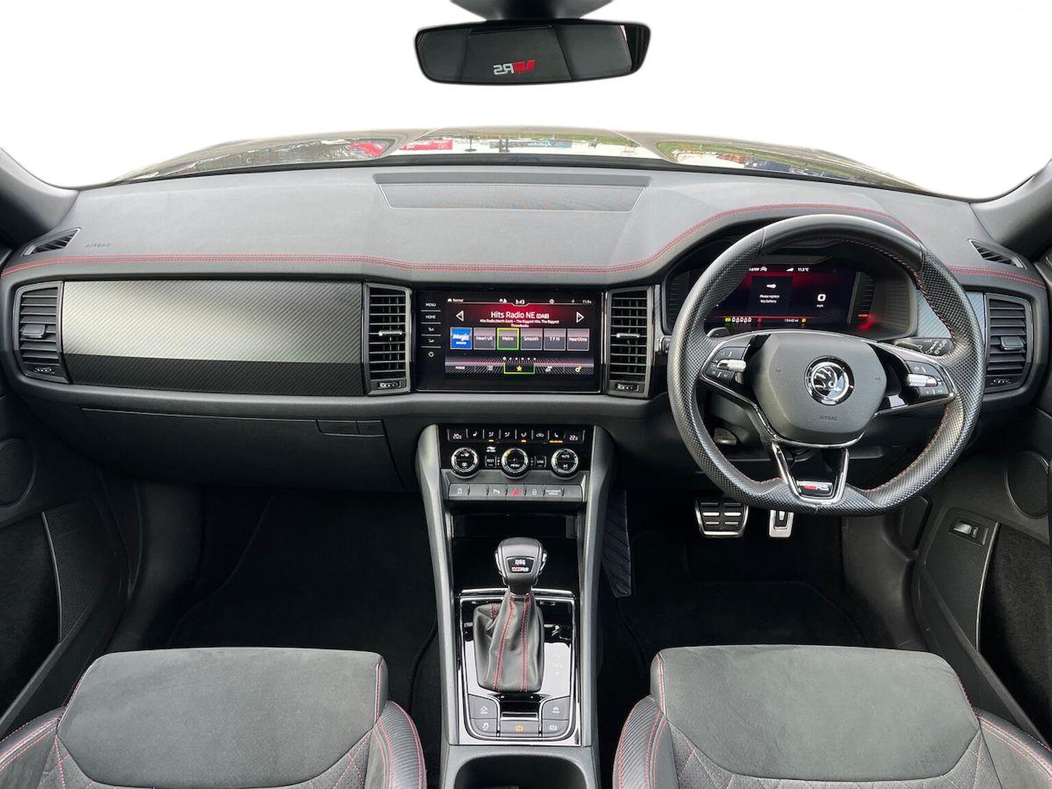 "features": "Bluetooth system, Columbus satellite navigation with 9.2\" touchscreen, integrated Wi-Fi, web radio, E-call, ECO Stop/start function, Exterior temperature indicator, Progressive steering, Rear view camera, Smartlink wireless for apple carplay and wired for android auto, Speed limiter, Tailgate unlocking from outside, USB C Port x 2 in front centre console, Virtual Cockpit - 10.25\" digital display, Wireless charging, Dynamic Chassis Control including off-road function, 8 Speakers, DAB Digital radio, Dynamic sound booster, Aero front windscreen wipers with intermittent function, Aero rear window wiper, Auto dimming rear view mirror, Black wheel arch surrounds, Body colour bumpers, Body colour door handles, Chrome exhaust tailpipe, Electric front and rear windows, Extended rear spoiler with finlets in gloss black, Front fog lights, Full LED matrix headlights with AFS (adaptive front light system), cornering function and AWL (all weather lighting system), Gloss black door mirrors, Gloss black roof rails, Heated rear window, LED daytime running lights, LED rear fog light, LED third brake light in rear spoiler, Light assistant (coming/leaving home/tunnel light), Off-road style lower front bumper element, Privacy glass, Rain and light sensors, Rear diffuser, Rear LED lights (high functionality) with welcome effect and dynamic indicators, Safety reflectors on front and rear doors, vRS exterior design - vRS front and rear bumpers with vRS badging (gloss black on tailgate and chrome on radiator grille) + black window surround, Window control switches with black trim, Without engine designation, 12V socket in boot, 2 rails with 2 hooks, 4 foldable roof handles with rear coat hooks, 60:40 foldable rear seat with sliding adjustment and backrest angle adjustment, Aluminium pedals, Black roof headlining, Bottle holders in door panel in the 1.5 litre front and 1 litre rear, Cargo storage compartments, Chrome headlight control button, Chrome interior door handles, Coat hooks on B pillar, Covered storage compartment on driver side, Decorative door sills in the front and rear, Front centre armrest with storage compartment, cup holder and 12V socket, Front courtesy lights, Gear shift lever with chrome frame and black gloss insert with vRS logo, Height adjustable front headrests, Illuminated and cooled glovebox, Illuminated luggage compartment, Isofix child seat fittings in outer rear seats with top tether, Manually adjustable steering column, Microsuede door panels with vRS black stitching, Net programme in boot (1x horizontal Net, 2x vertical Nets), Overhead glasses storage compartment, Pollen filter, Rear centre armrest with cupholders, Sliding trunk cover, Small Bags on the inner sides of the front backrests, Sports seats, Sunvisors with illuminated vanity mirrors, Three rear height adjustable headrests, Ticket holder on A Pillar, Umbrella in door panel, Variable boot floor, vRS red stitching in front and rear armrests and door panel armrests, LED Interior light pack - Kodiaq, Auto door release and activation of warning lights in the event of an accident, Driver and front passenger airbag with knee airbag and front passenger airbag deactivation, Electronic parking brake with hill start assist, Emergency rear braking signal, ESC (incl. ABS+MSR+ASR+EDS+HBA+DSR+RBS+MKB), Front assist with autonomous emergency braking, Front side airbags with curtain airbags, Fuel cut off safety device, Height adjustable front 3 point seatbelts + pretensioners, Hill hold control, Rear disc brakes, Red brake calipers, Safety vest holder in door, Seat belt reminder for all seats, Three point rear seat belts, Two tone horn, Tyre pressure monitor, Alarm with interior monitoring and tilt sensor with safe function, Anti-theft wheel bolts, Immobiliser, Keyless entry and start system (KESSY), Remote central locking with 2 keys, Black air vent surround, Carbon finish dashboard and door inserts, Red stitching in dashboard, 20\" Sagitarius anthracite alloy wheels with aero covers, Temporary spare wheel (space saver), ",