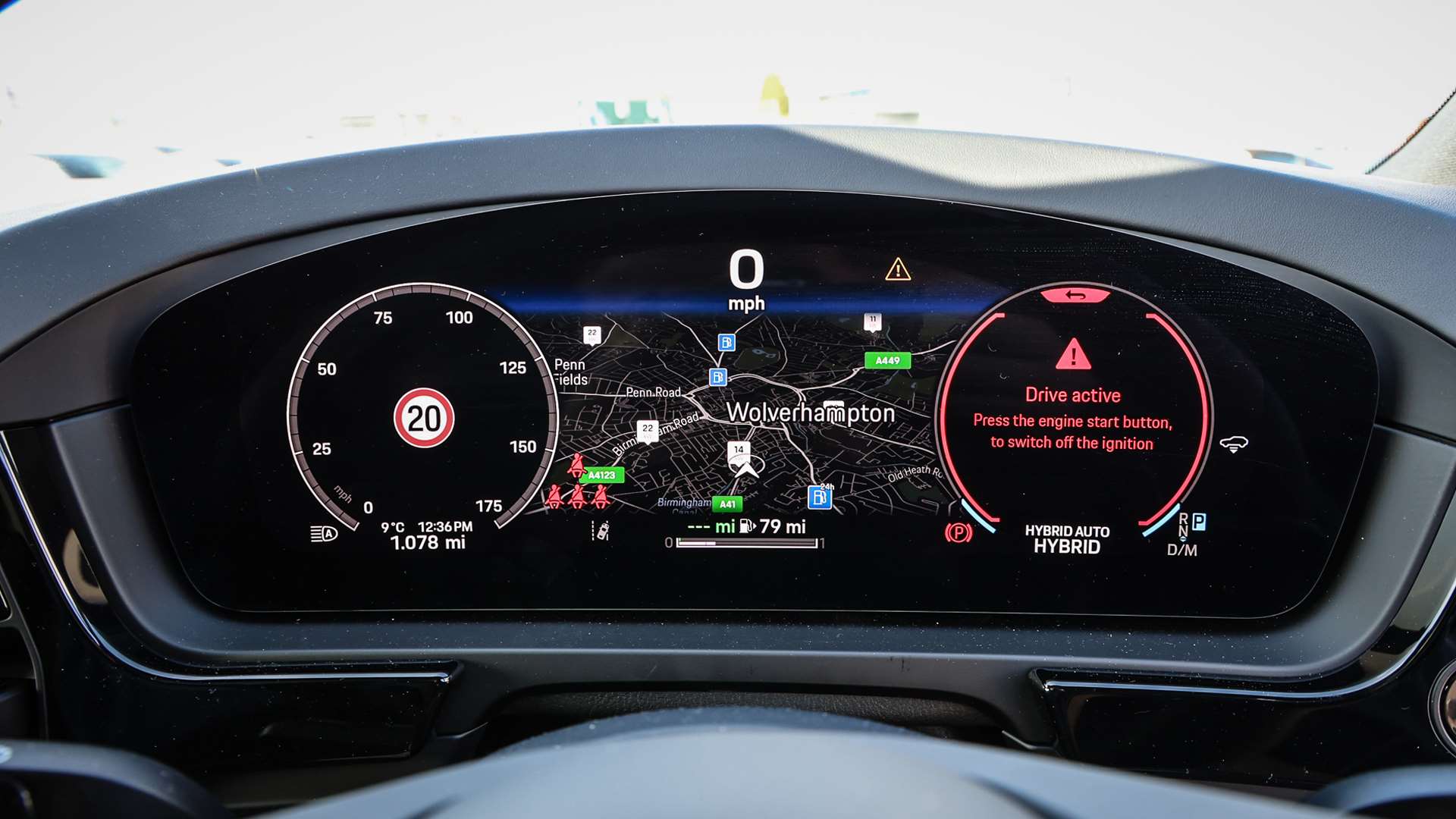 "Central analogue rev counter with black dial face, power meter and pointers in acid green",