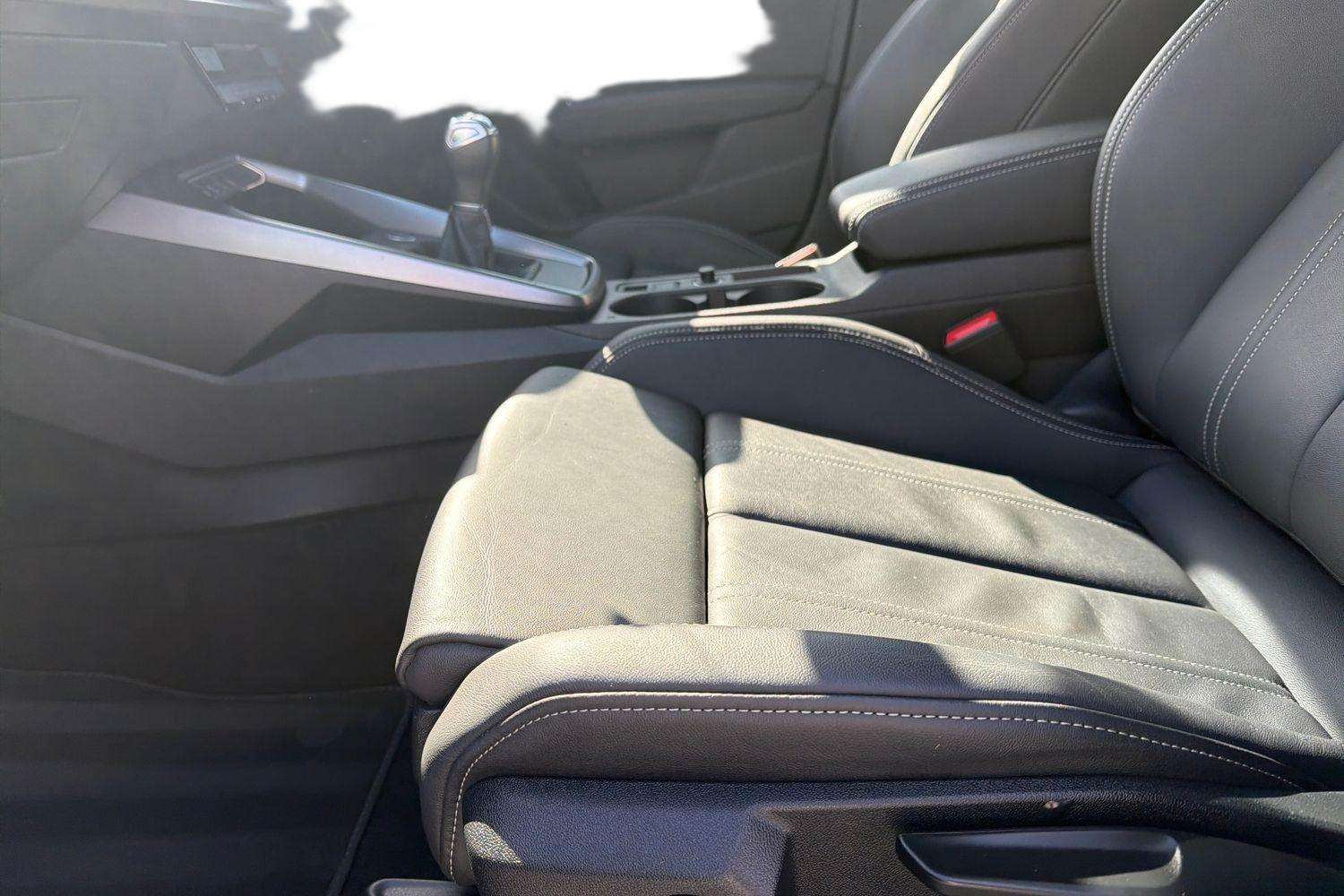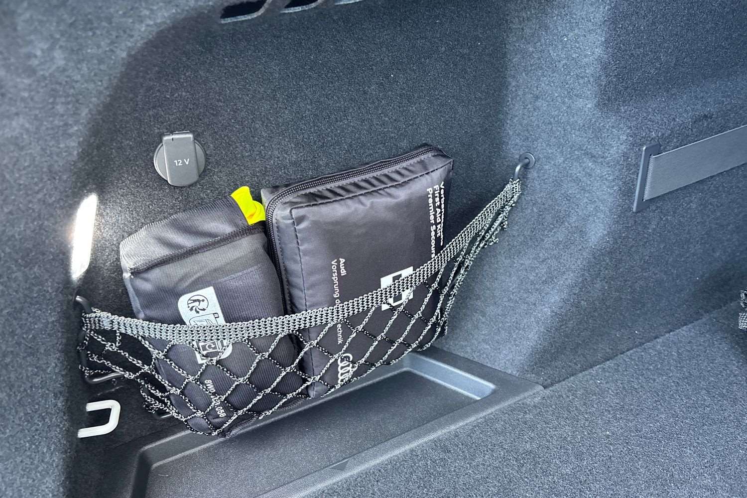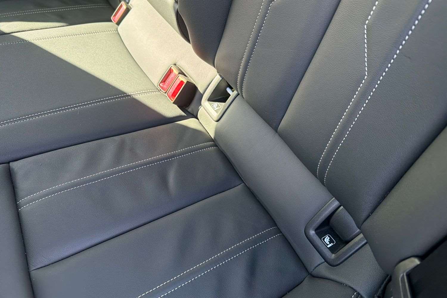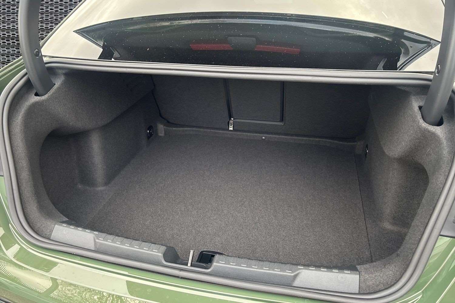 "Leather covered fixed luggage compartment cover",
