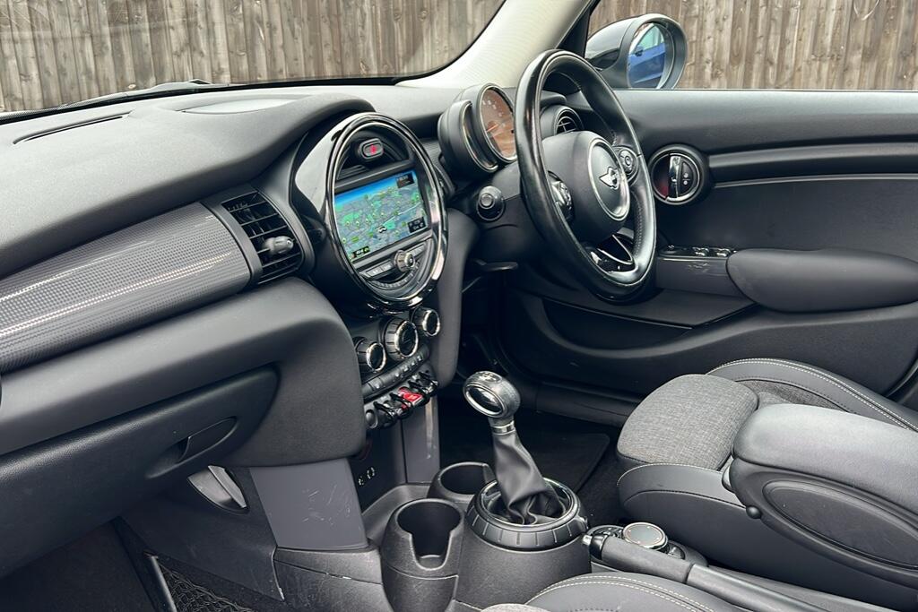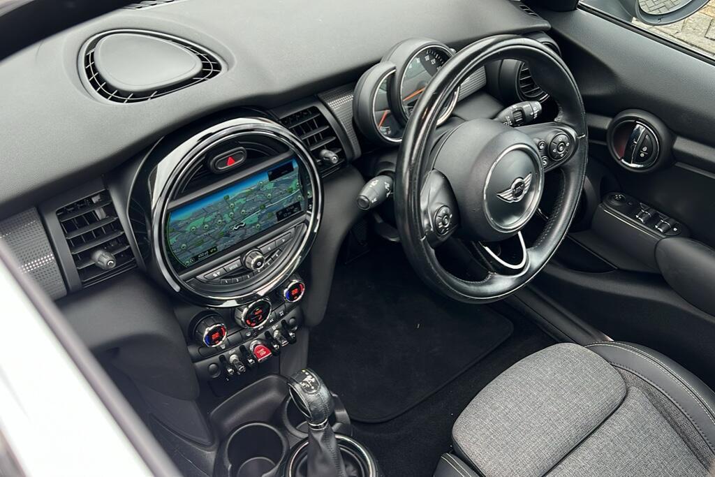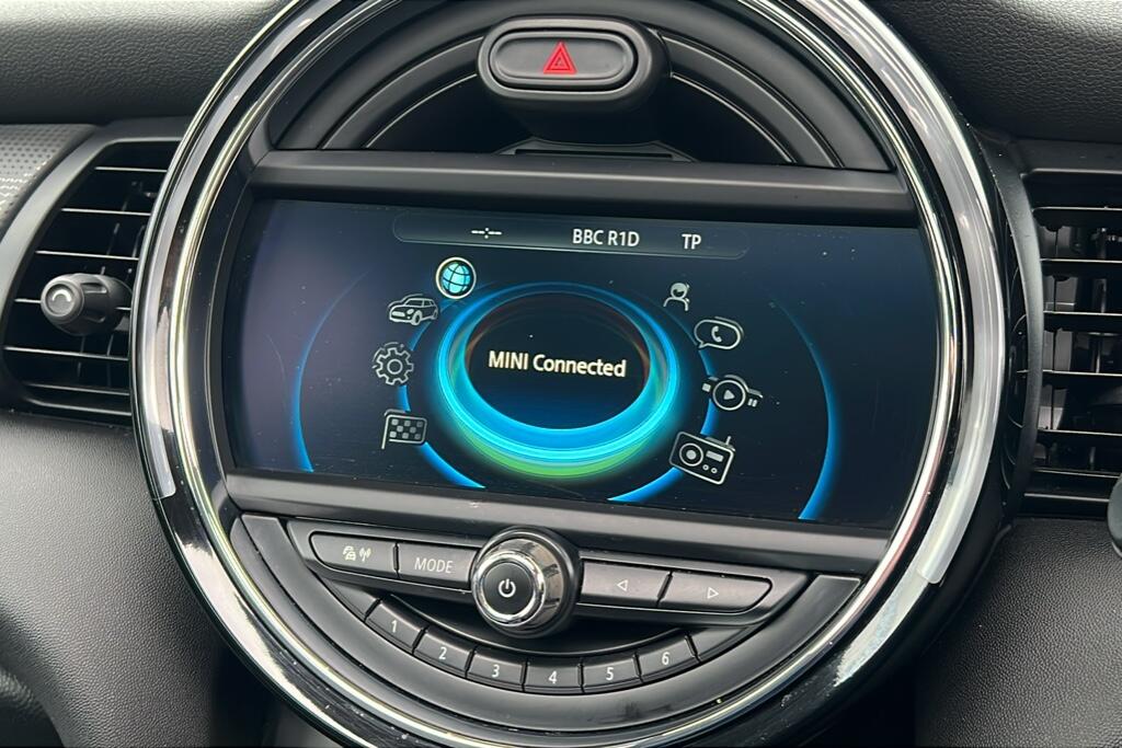 "features": "Central toggle bar, Circular OLED Screen, Compatible mobile phone bluetooth with audio streaming, Cruise control, Digital instrument cluster, Electro-mechanical speed dependant steering assistance, Emergency call service, MINI Experience Modes, Mini navigation system, On board computer, Service interval indicator, 7 speed steptronic transmission with double clutch, DAB Digital radio, Personal eSim, Adaptable light signatures, Auto headlights, Black grille surround, Electric adjustable heated door mirrors, Electric front windows, Heated rear window, Heated windscreen washer jets, LED daytime running lights, LED indicator lights, LED rear lights, Rain sensor window wipers, Rear fog lights, Rear window wiper, 2 seat bench in second row, 2 zone automatic air conditioning, 60/40 rear seat bench, Ambient lighting, Cupholders, Floor mats, Front and rear head restraints, Front compact armrest, Heated steering wheel, Height adjustable passenger seat, Light headliner, Luggage compartment lighting, Single front passenger seat, Sport Vescin Steering Wheel black with vibrant silver accents, Sunvisors with vanity mirrors, Vescin/Cloth upholstery, Driving assistant pack - Cooper Hatchback, Level 1 pack - Mini Hatchback, Park assistant pack - Cooper Hatchback, 3 point seatbelts on all four seats, 6 Airbags - front, side, head and seat belt tensioners, Acoustic pedestrian protection, Anti-lock braking system (ABS), DSC - Dynamic Stability Control, Electronic parking brake, Front and rear disc brakes, Front ISOFIX (iSize), Front passenger airbag deactivation, Traction control, Tyre pressure monitoring system, Alarm, Immobiliser, Remote central locking, Black/Blue dashboard knit, Tyre repair kit, ",