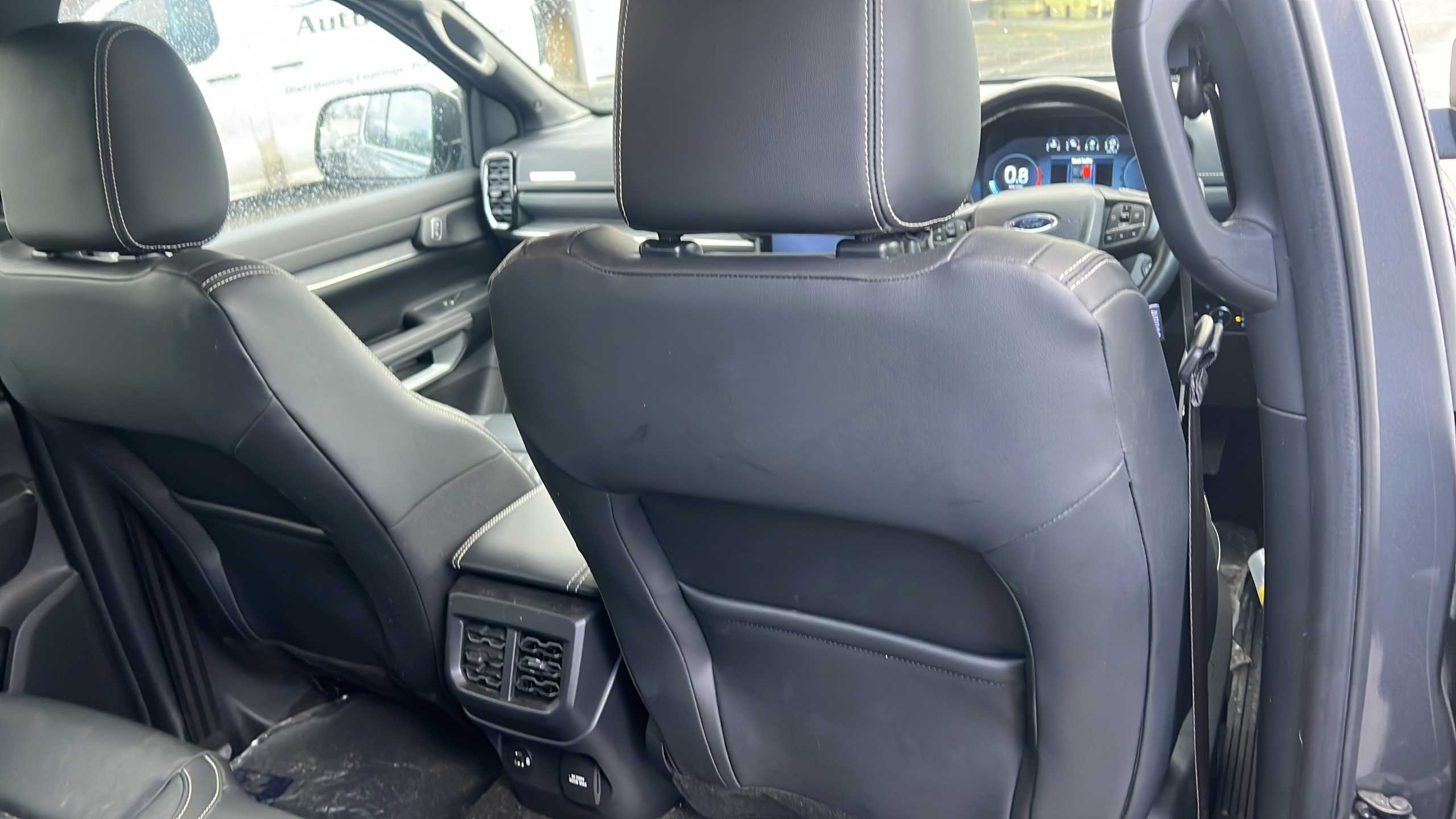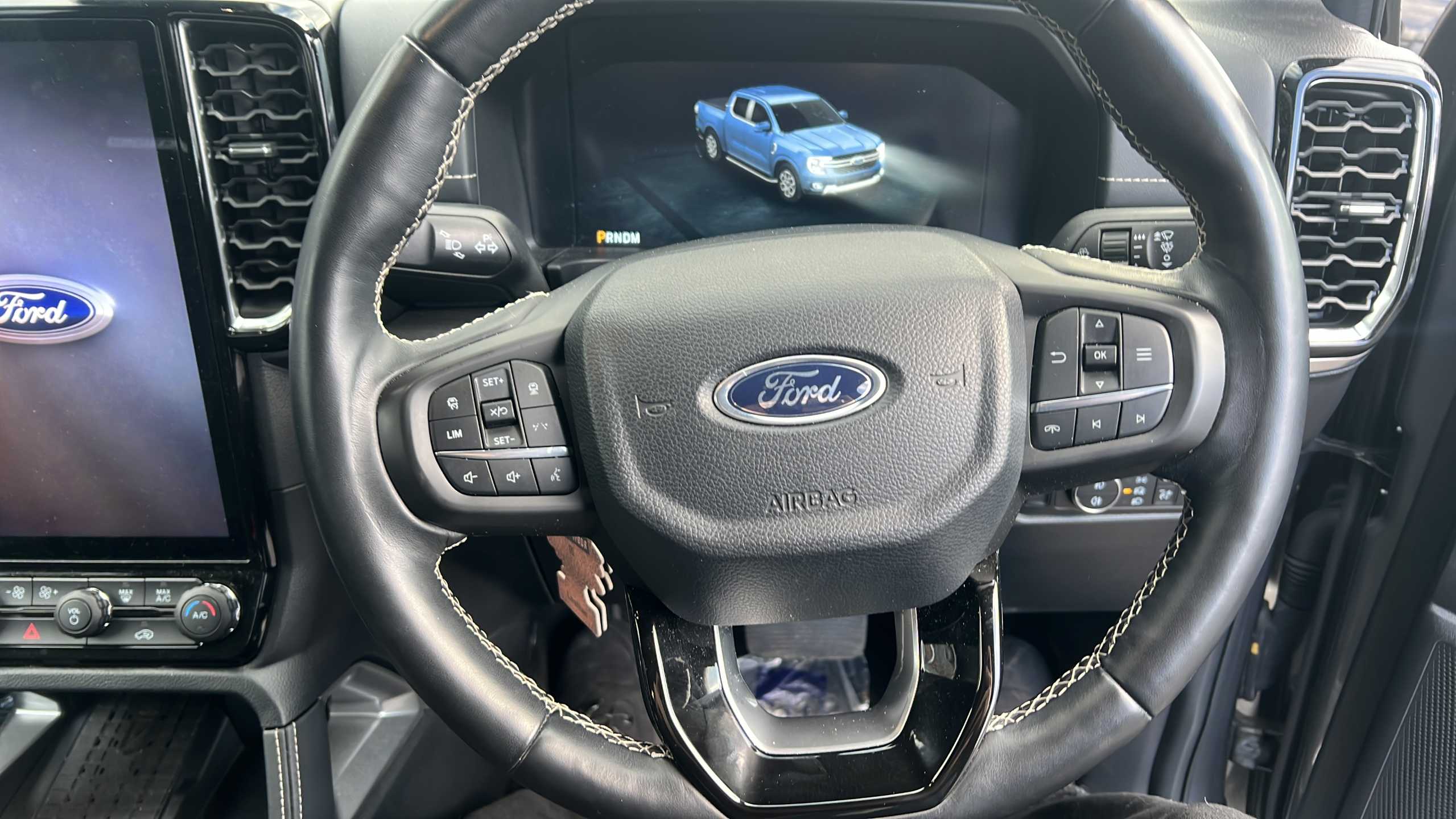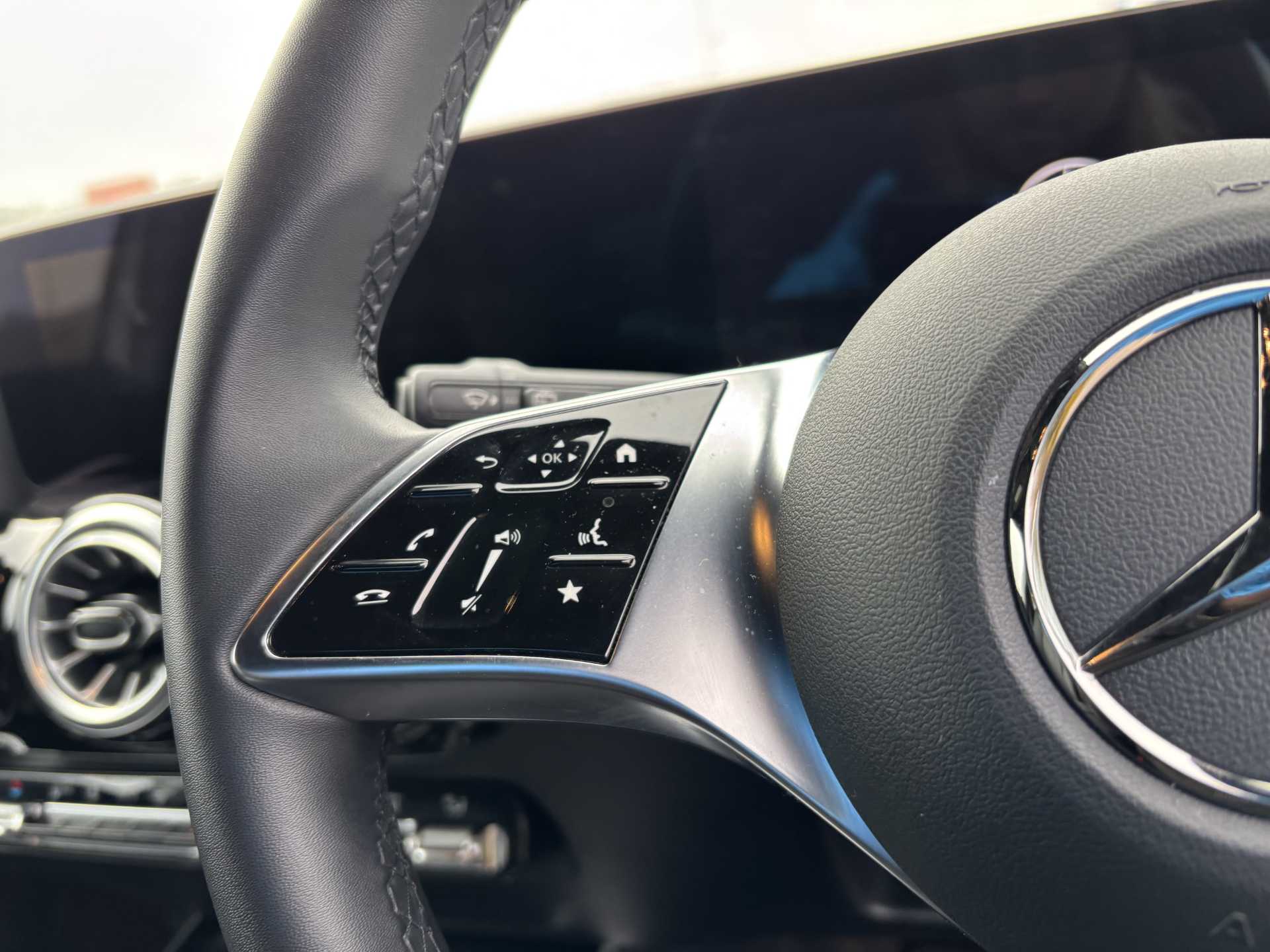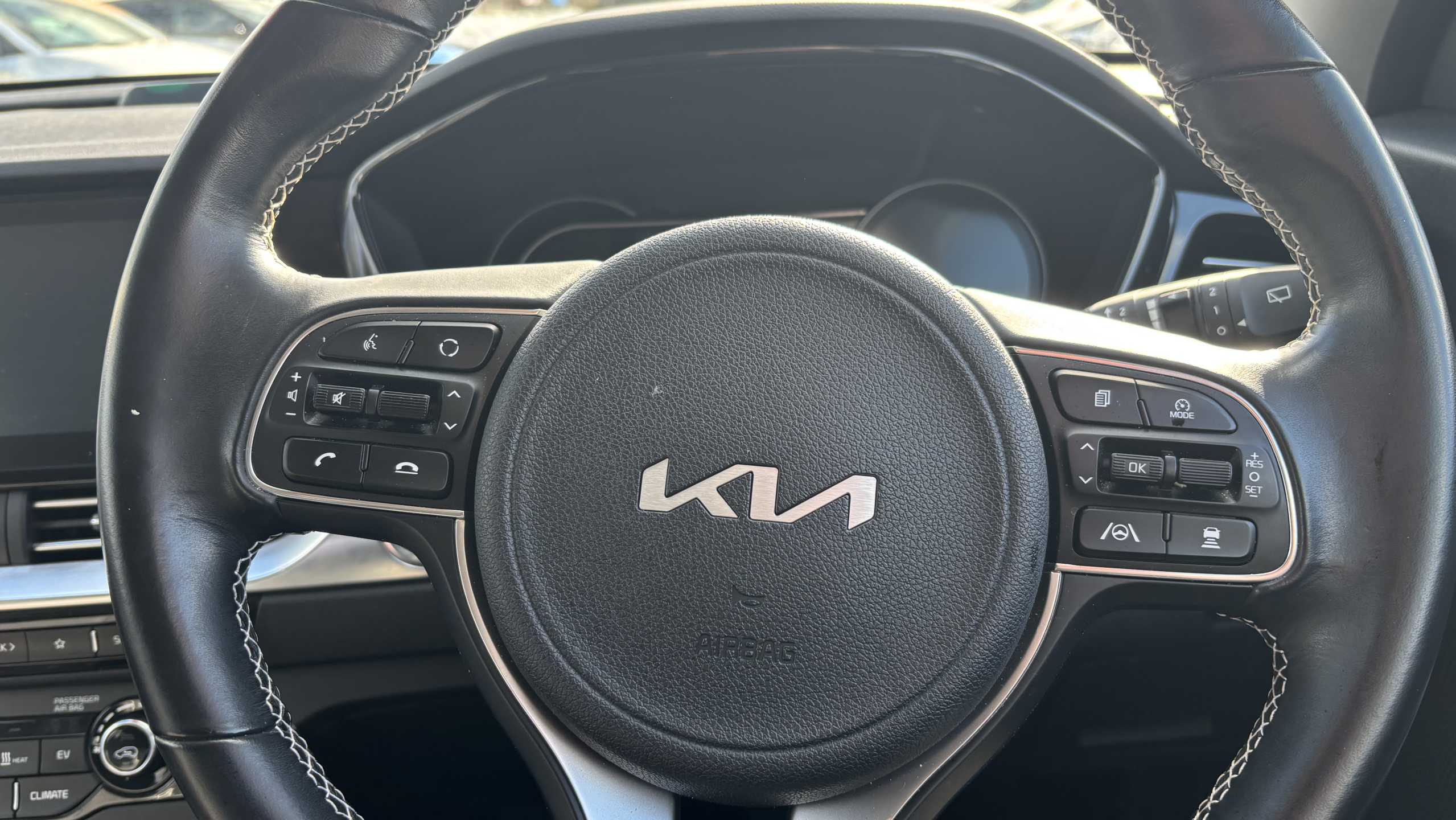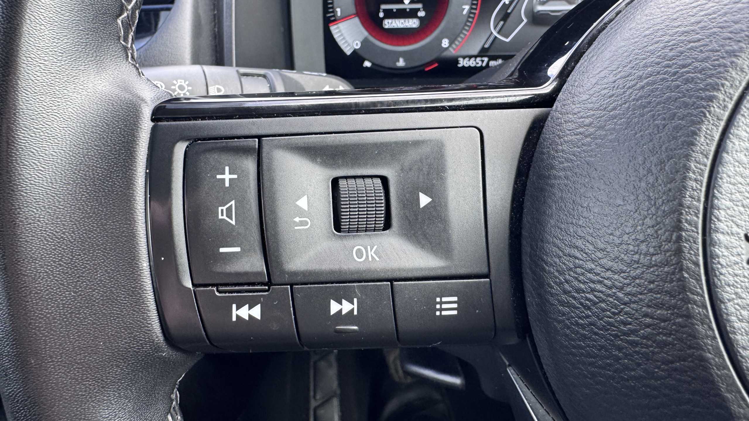"Leather steering wheel with detail stitch",