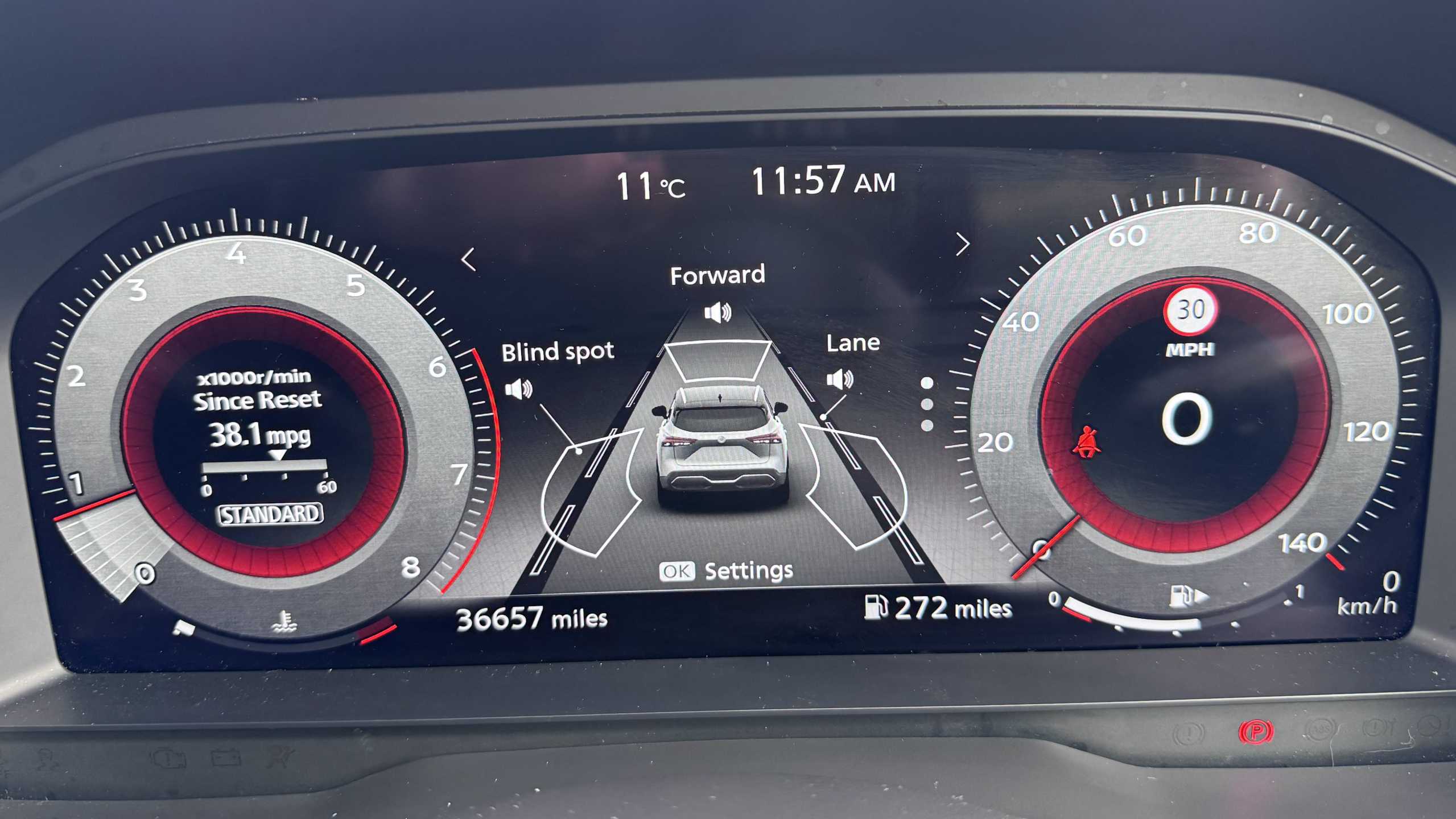 "Exterior temperature indicator with ice warning",
