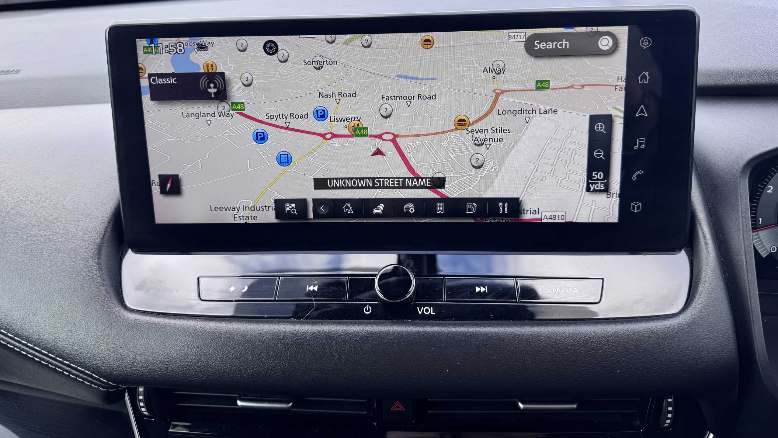 "Satin chrome dashboard trim",