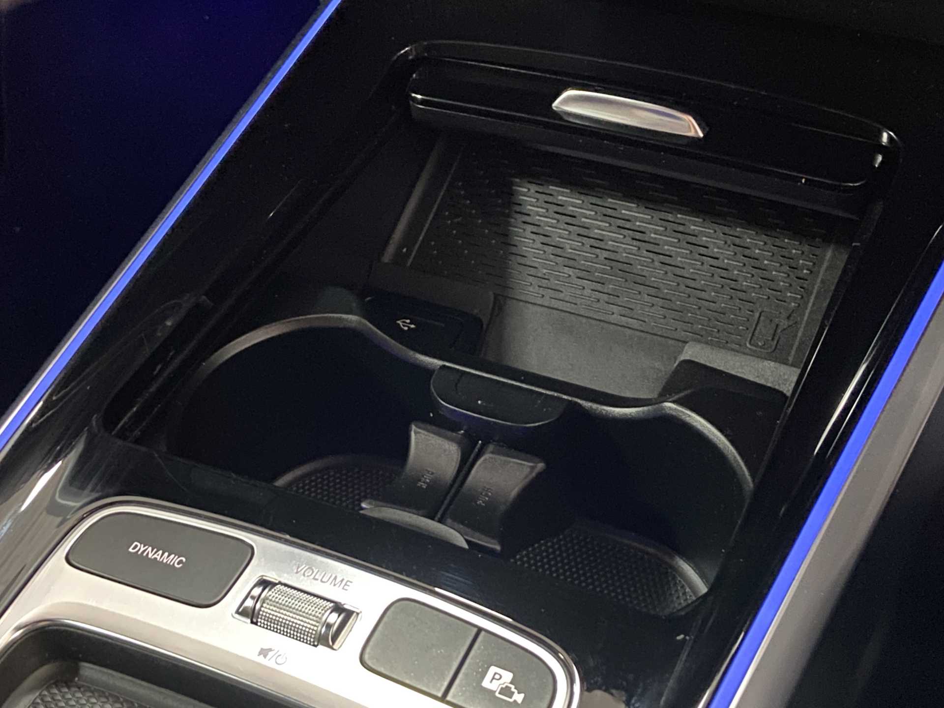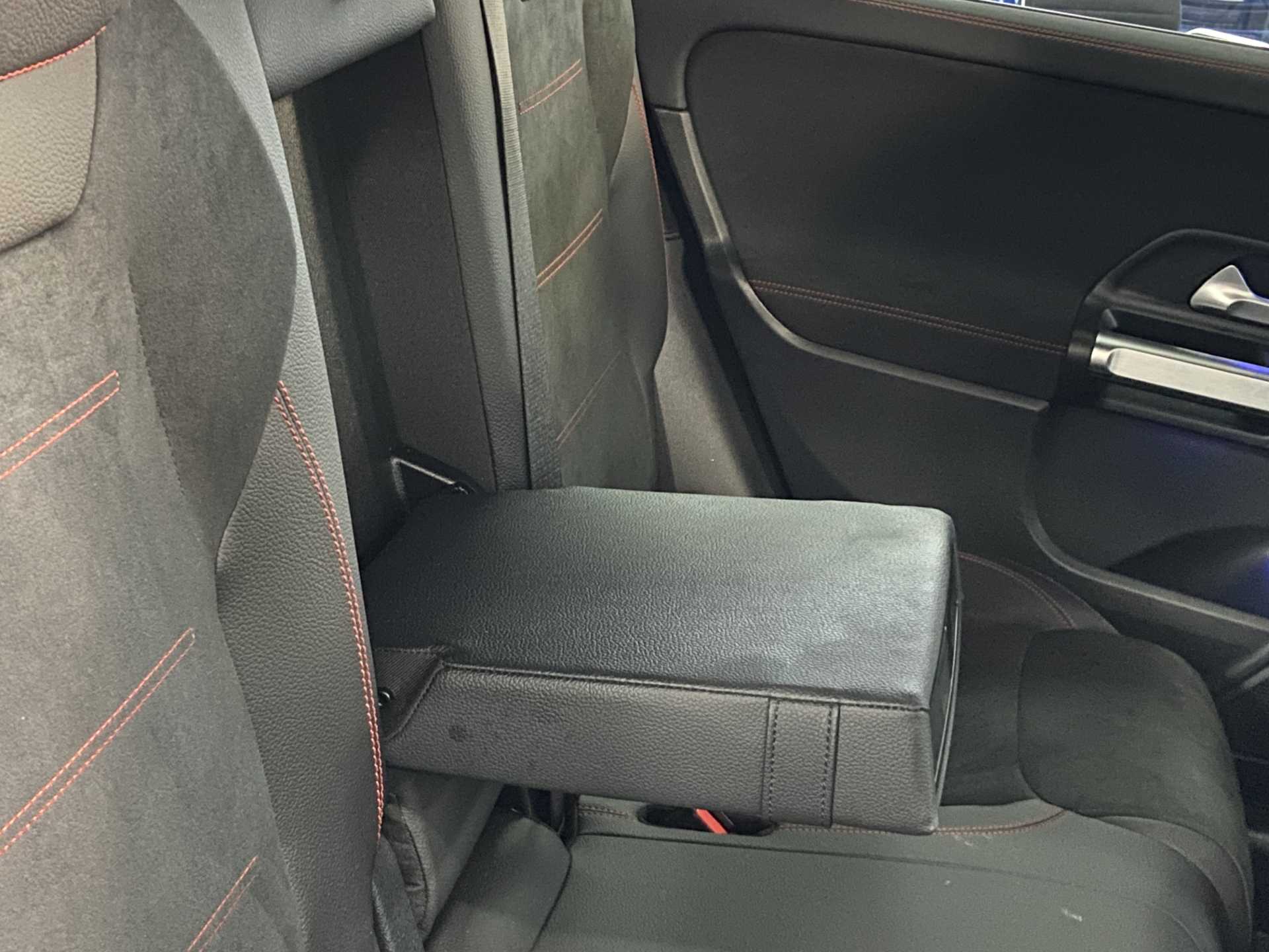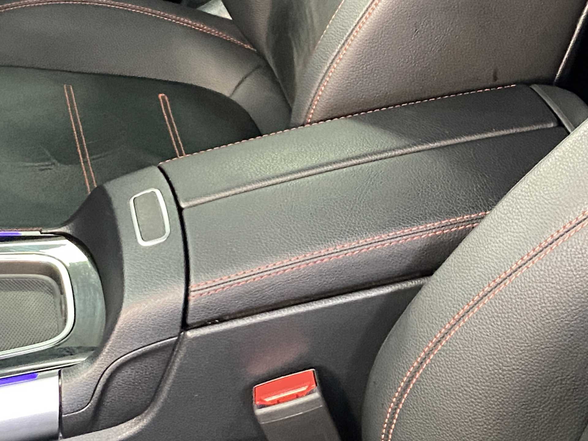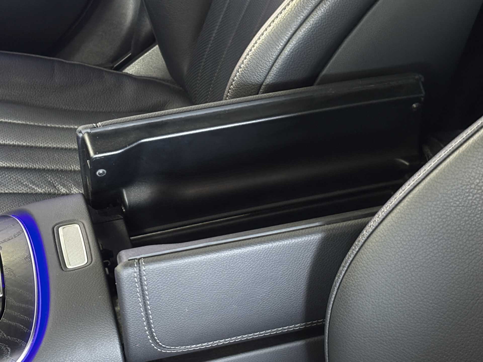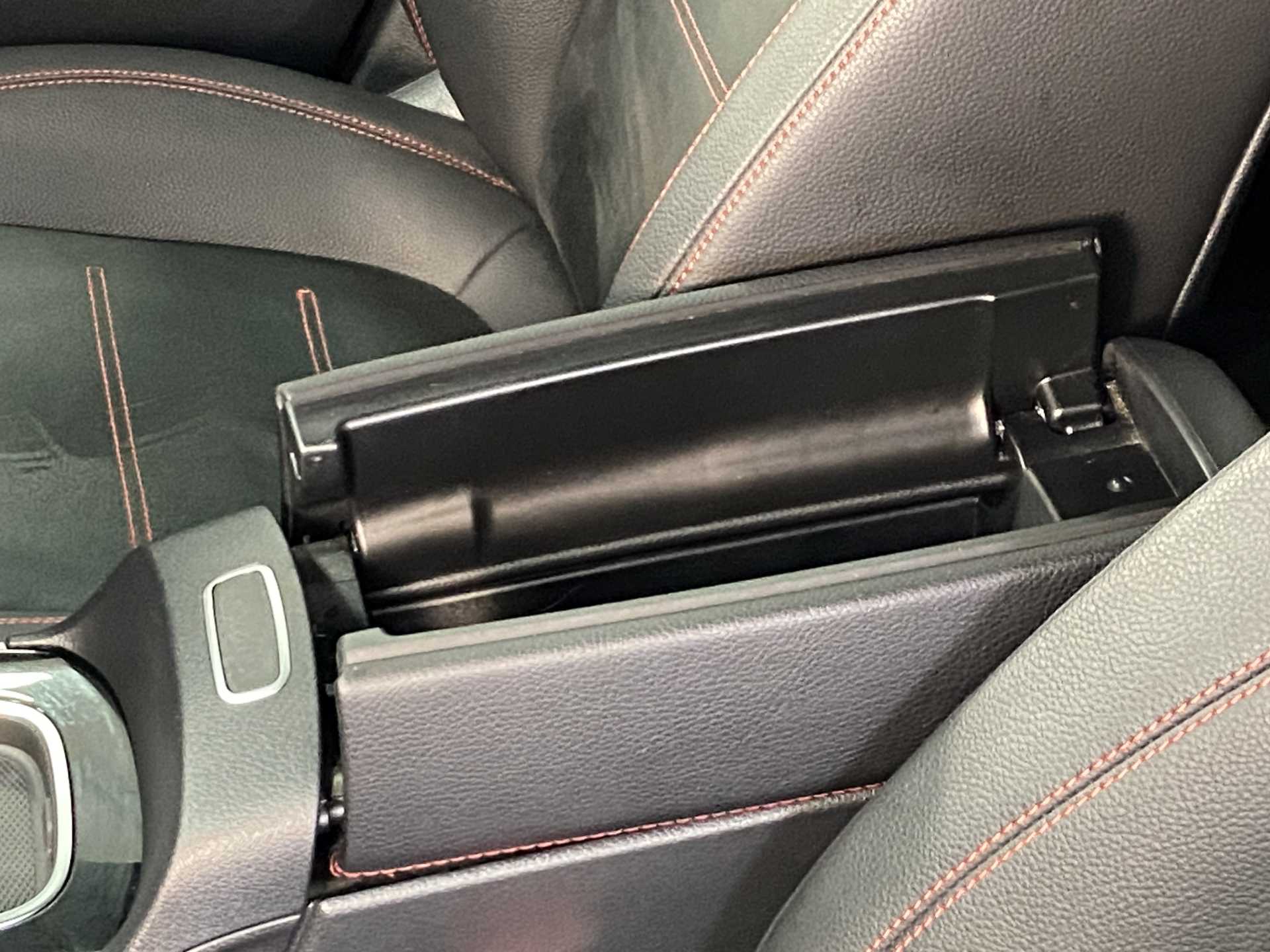 "Soft front seat sliding armrest with interior bin",