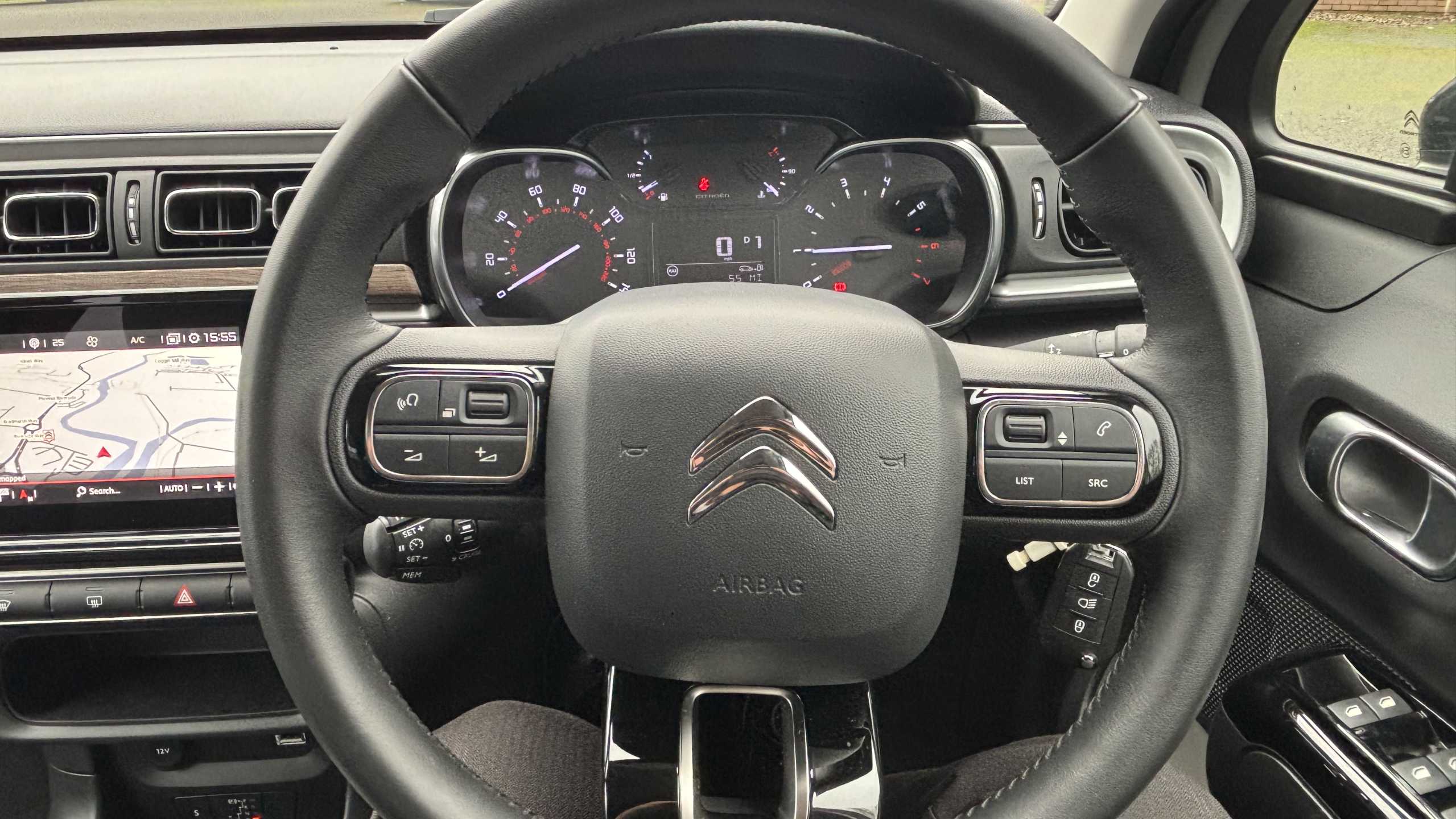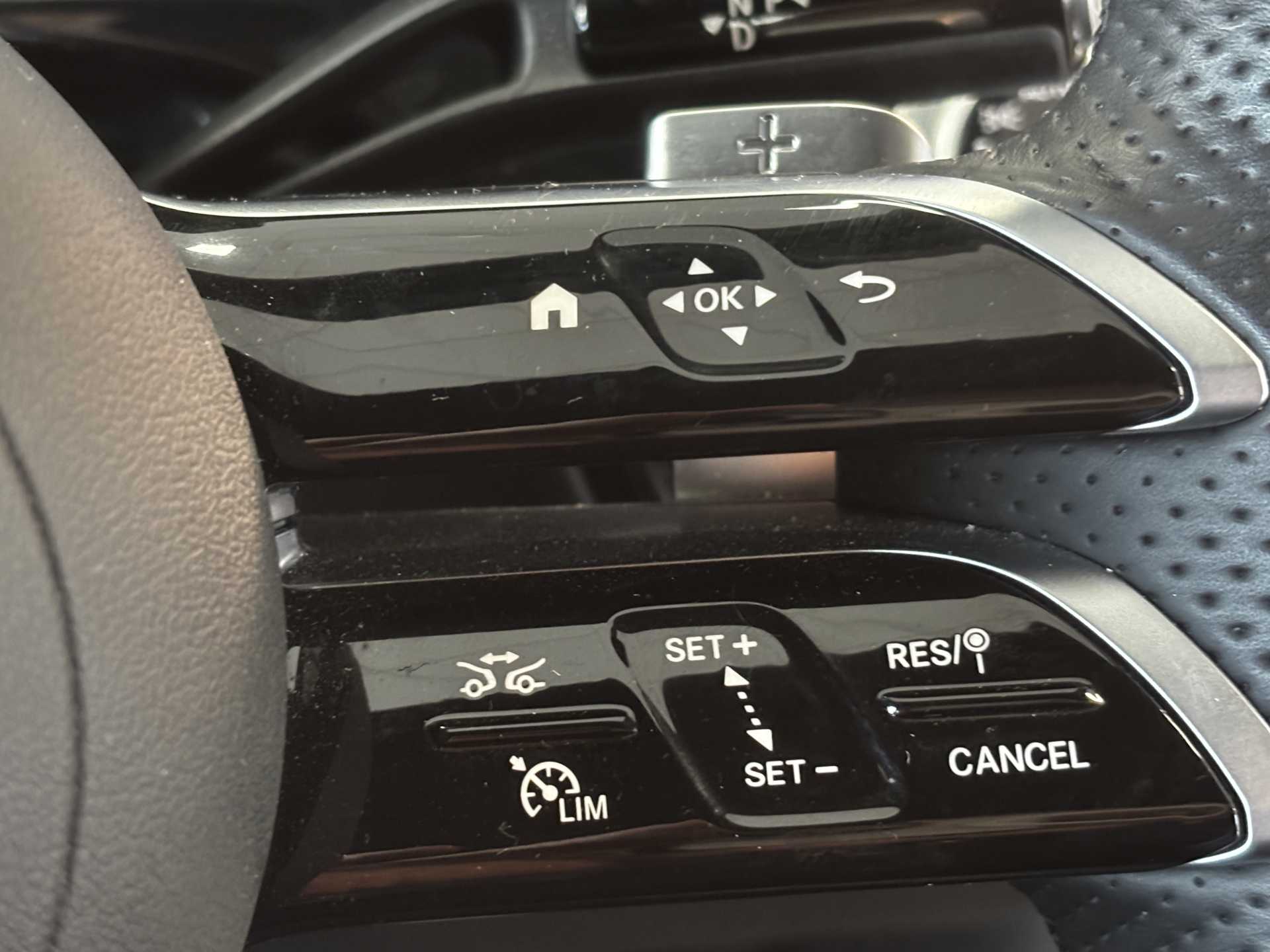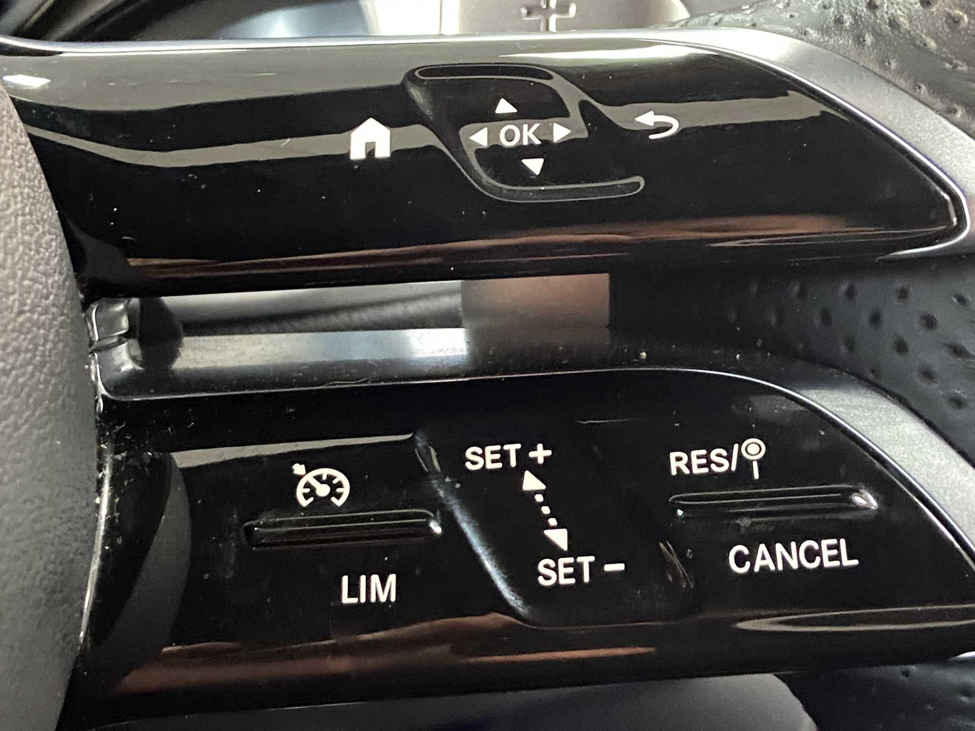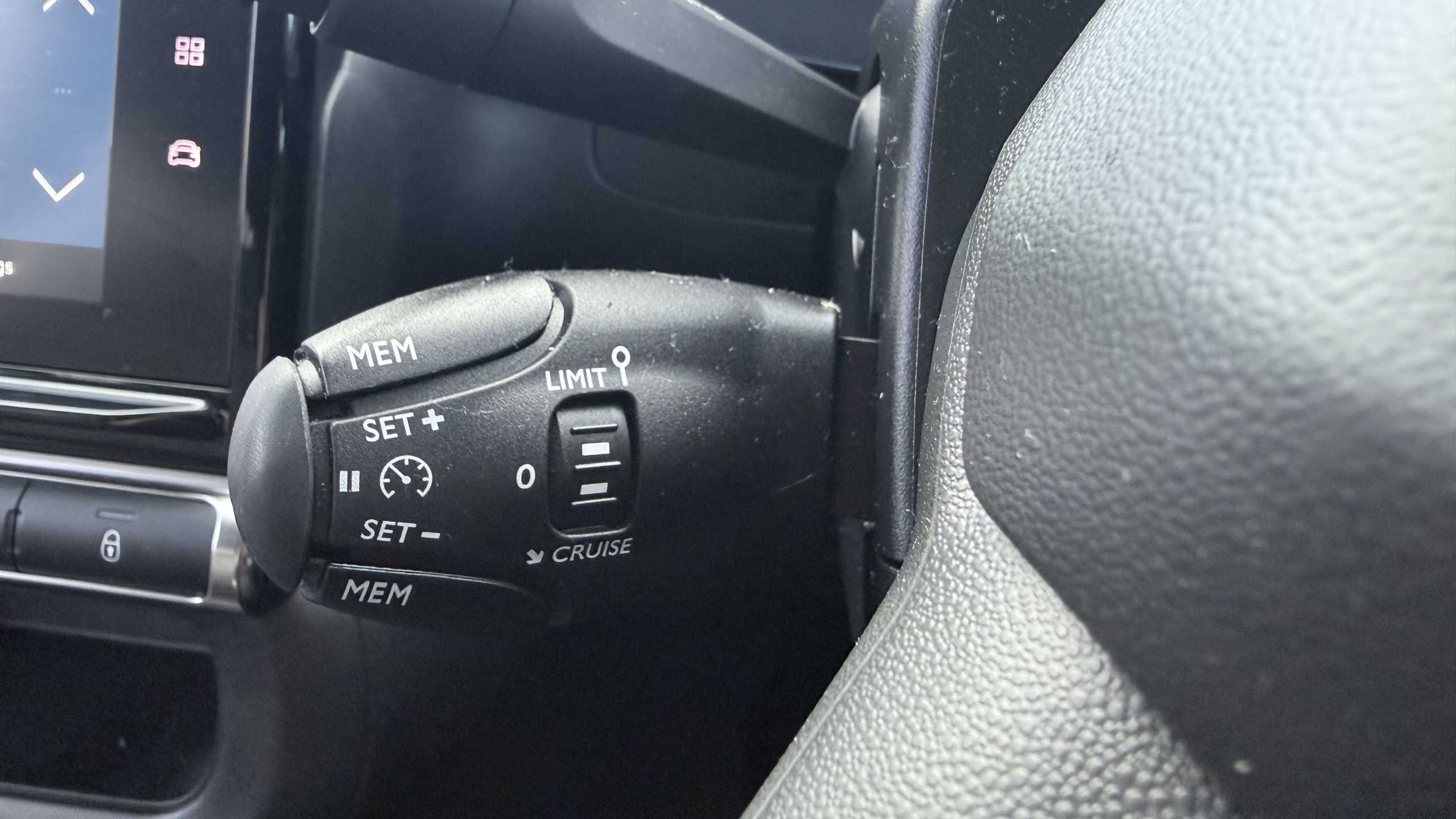"Speed limiter push button on steering wheel",