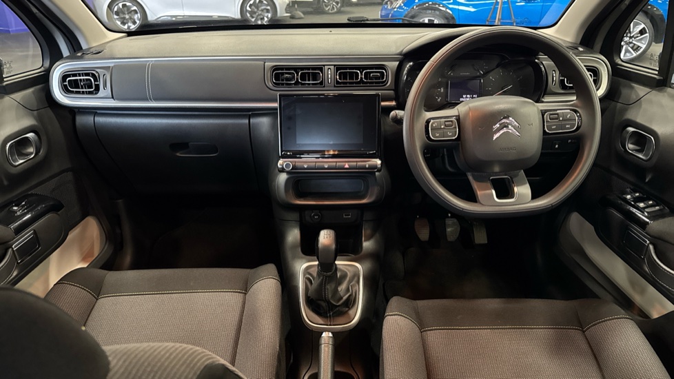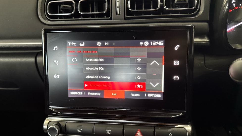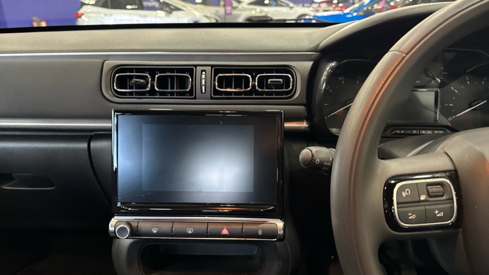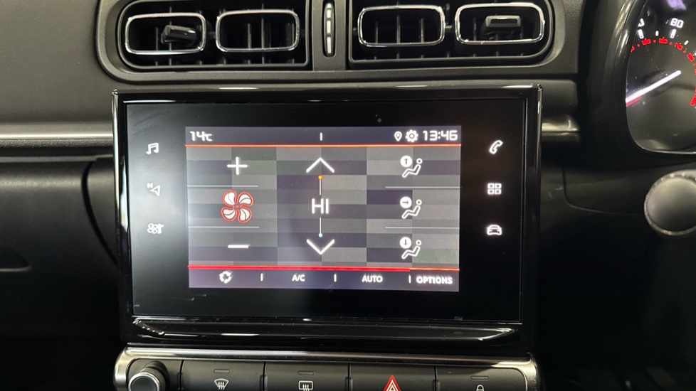 "Central facia display with digital clock, outside air temperature and audio information",