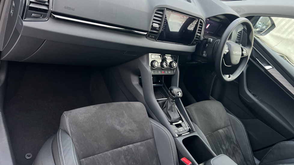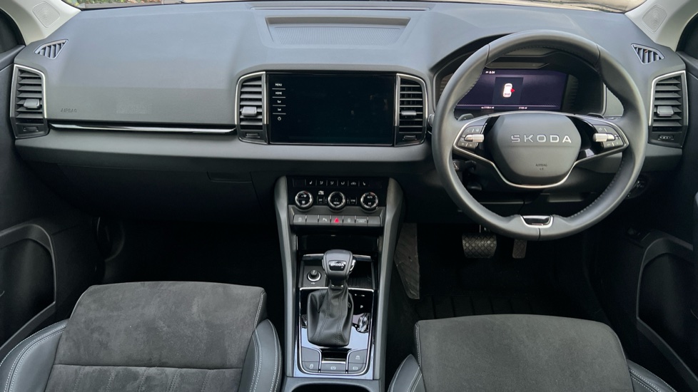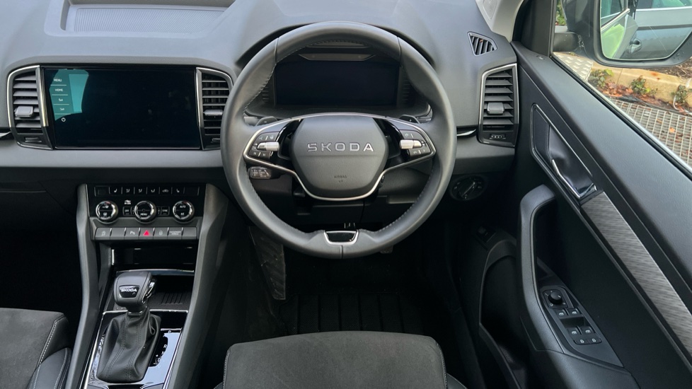 "features": "Advanced driver attention and drowsiness monitor, Amundsen navigation system with 8\" touchscreen display and integrated WLAN and web radio, Electro-mechanical PAS, Emergency services call system, Lane assist, Outside temperature gauge, Sensor for driver assistance systems, Service interval indicator, SmartLink wireless for Apple and wired for Android, Start/stop system with regenerative braking, Traffic sign recognition, USB C Port x 2 in front centre console, Virtual Cockpit - 10.25\" digital display, Wireless smartphone charging, 8 Speakers, DAB radio with Bluetooth, USB connection, Acoustic glass, Aero front windscreen wipers with intermittent function, Auto dimming rear view mirror with light and rain sensors, Black electric window control buttons, Body colour door mirrors and handles, Electric front and rear windows with child proof lock, Electrically adjustable heated folding and auto dimming door mirrors, Front fog lights, Headlight range control, Heated rear windscreen, LED daytime running lights, LED Headlights, LED rear lights with high functionality welcome effect and dynamic indicators, Light assistant (coming/leaving home/tunnel light), Plastic scuff plates in door apertures, Privacy glass, Rear side wing doors, Rear window wiper with washer system and intermittent control, Safety reflectors on front doors, Third brake light, Unique dark chrome design logo on alloy wheels, 1.5 litre bottle holders in driver and front passenger door panels, 12V socket in boot, 12v socket in front centre armrest with storage compartment and rear air vents, 2 spoke leather heated multifunction steering wheel, 2 x Tablet holder, 3 rear height adjustable headrests, 3 seat bench in 2nd row, 4 foldable roof handles with rear coat hooks, Black floor carpet, Cargo elements in boot, Chrome inner door handles, Driver/front passenger reading lights, Foldable hooks in the boot, Folding tables on the front seat backrests, Front head restraints, Height adjustable driver and passenger seat, Height adjustable front three point seats belts with tensioners, Height/reach adjust steering wheel, Ice scraper, Illuminated glovebox, Illuminated luggage compartment, Interior noise suppression, Isofix child seat preparation for front passenger seat, Isofix child seat preparation outer rear, Loft fabric upholstery, Manual lumbar support for front seats, Pearl grey interior ceiling, Pen holder, Pollen filter, Rear boot cover, Rear package tray, Rear reading lights, Rubbish bin door, Safety vest holder, Single front passenger seat, Skoda lettering on steering wheel, Storage box in upper central dashboard closed, Sunvisors with illuminated vanity mirrors, Textile floor mats, Ticket holder, Umbrella under passenger seat, Under passenger seat storage compartment, Non Smokers pack, Parking pack - Karoq, Winter pack with heated front seats - Karoq, Automatic door unlocking in case of crash, Automatic fuel cut off in case of crash, Driver airbag, Electronic parking brake with auto hold function, Emergency rear braking signal, ESC (incl. ABS+MSR+ASR+EDS+HBA+DSR+RBS+MKB), Front assist, Front side airbags, Head airbags, Hill hold control, Knee airbags, Passenger airbag with switch-off function, Pedestrian monitor, Seatbelt reminder signalisation and pretensioner for all seats, Three point seatbelts rear, Two tone horn, Tyre pressure monitor, Alarm with interior monitoring, back up horn and tilt sensor with safe function, Electronic engine immobiliser, Keyless entry and start/stop, Remote central locking with 2 remote folding keys, Anodized cross door decor, Black centre console, Chrome framed air vents, Satin black dashboard, Satin black door trim, Anti-theft wheel bolts protection, Breakdown and tool kit, ",