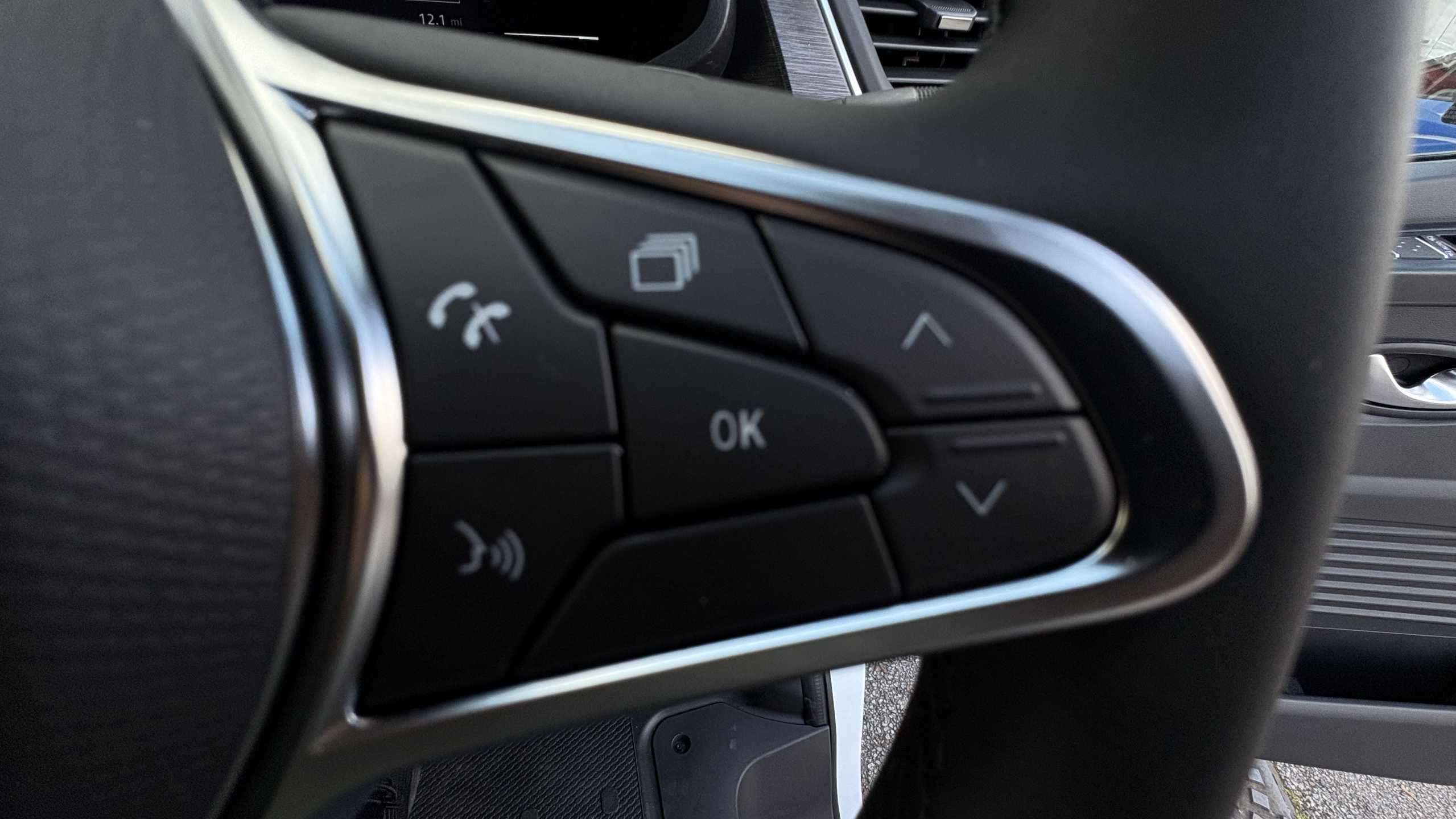 "3 spoke flat bottomed multi-function leather steering wheel",
