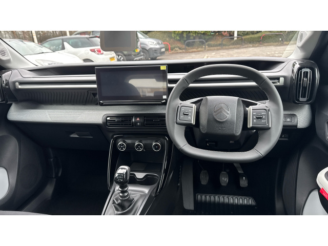 "Eco Leather steering wheel with cruise speed limiter controls",