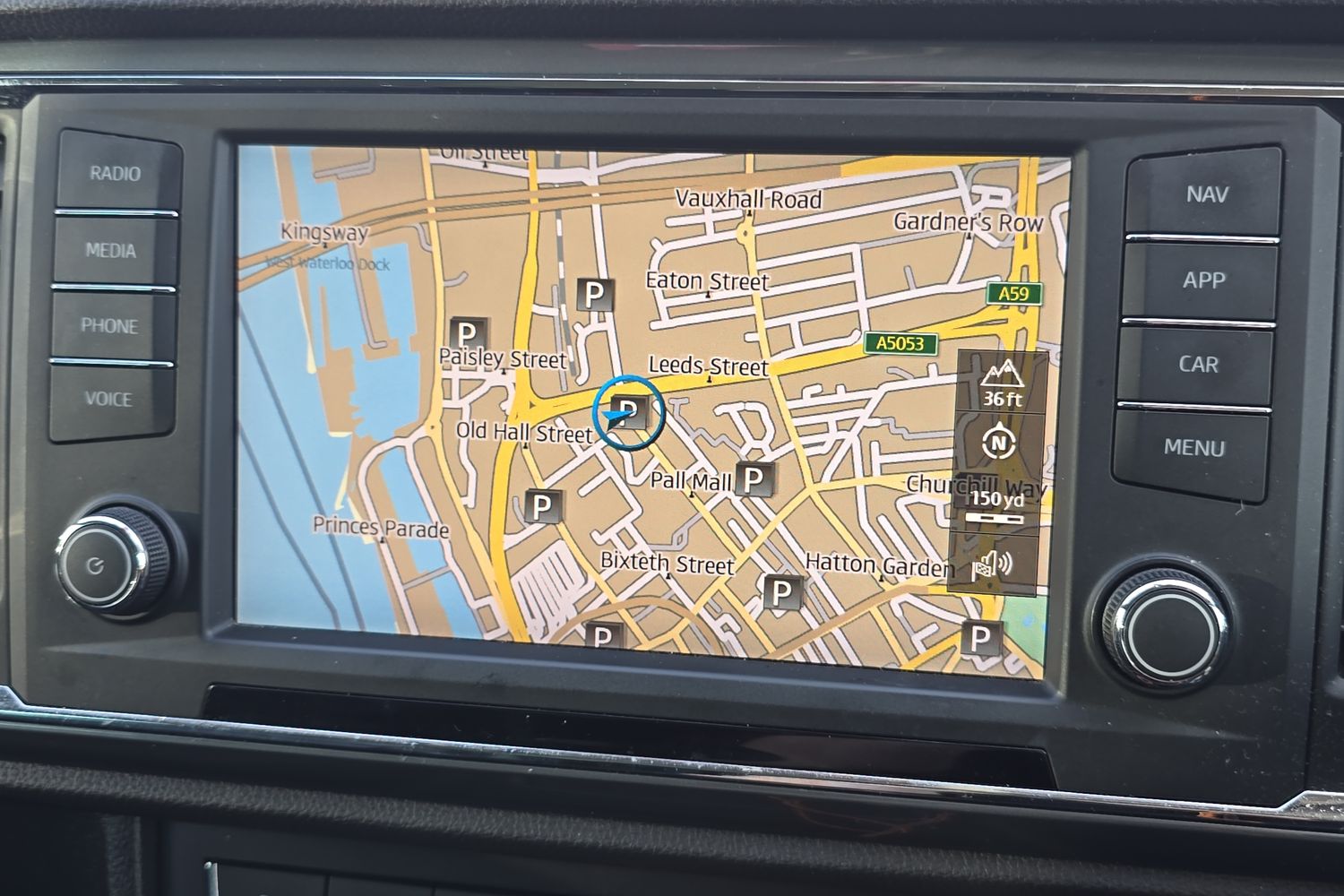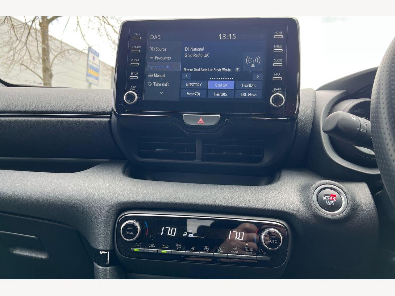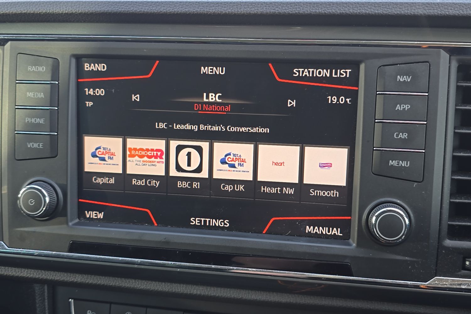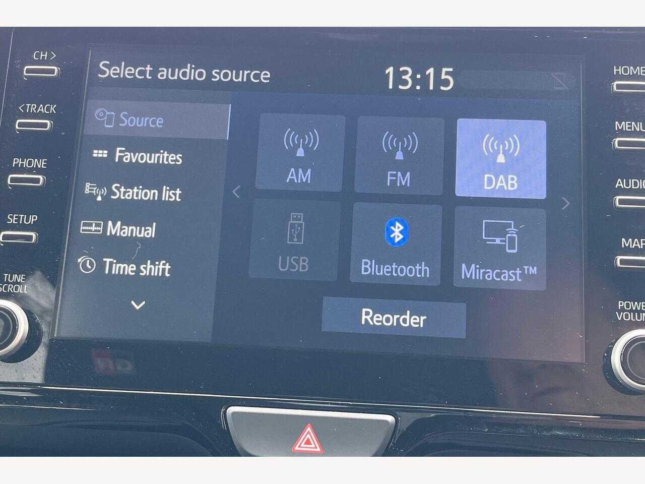 "Central facia display with digital clock, outside air temperature and audio information",