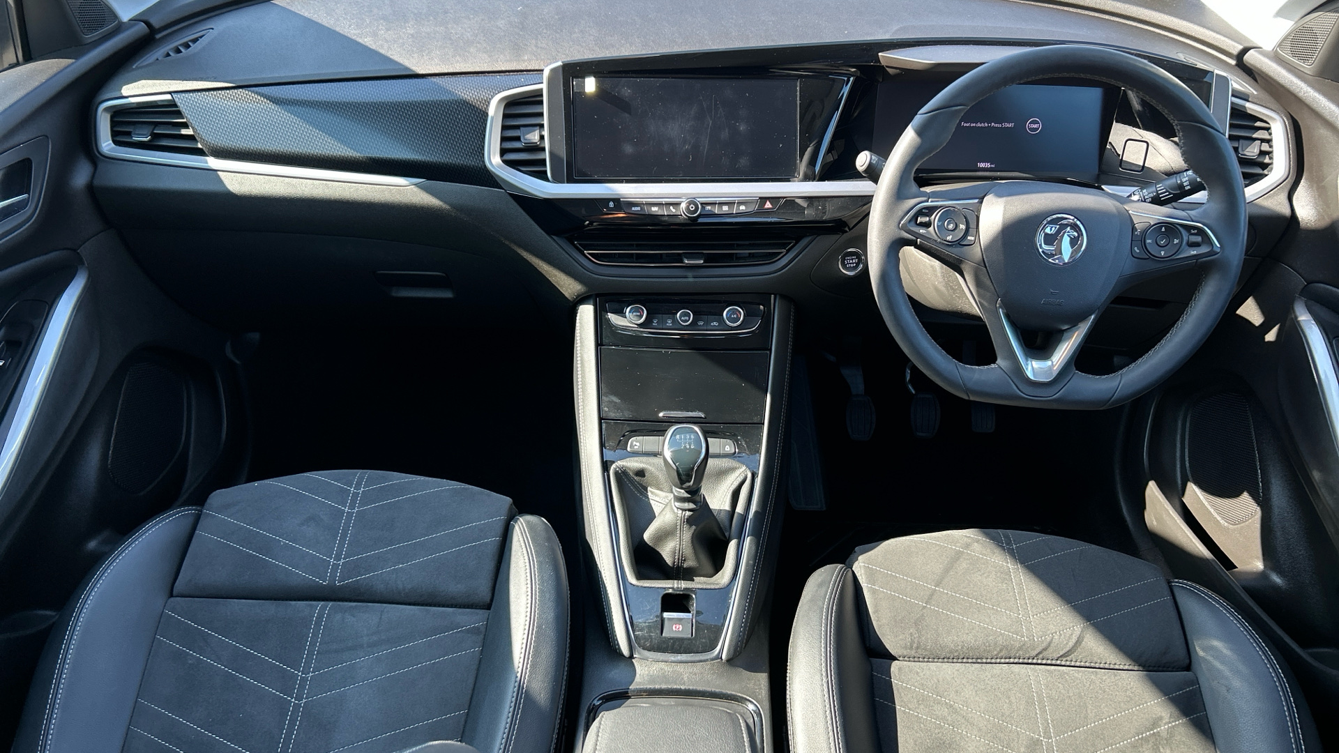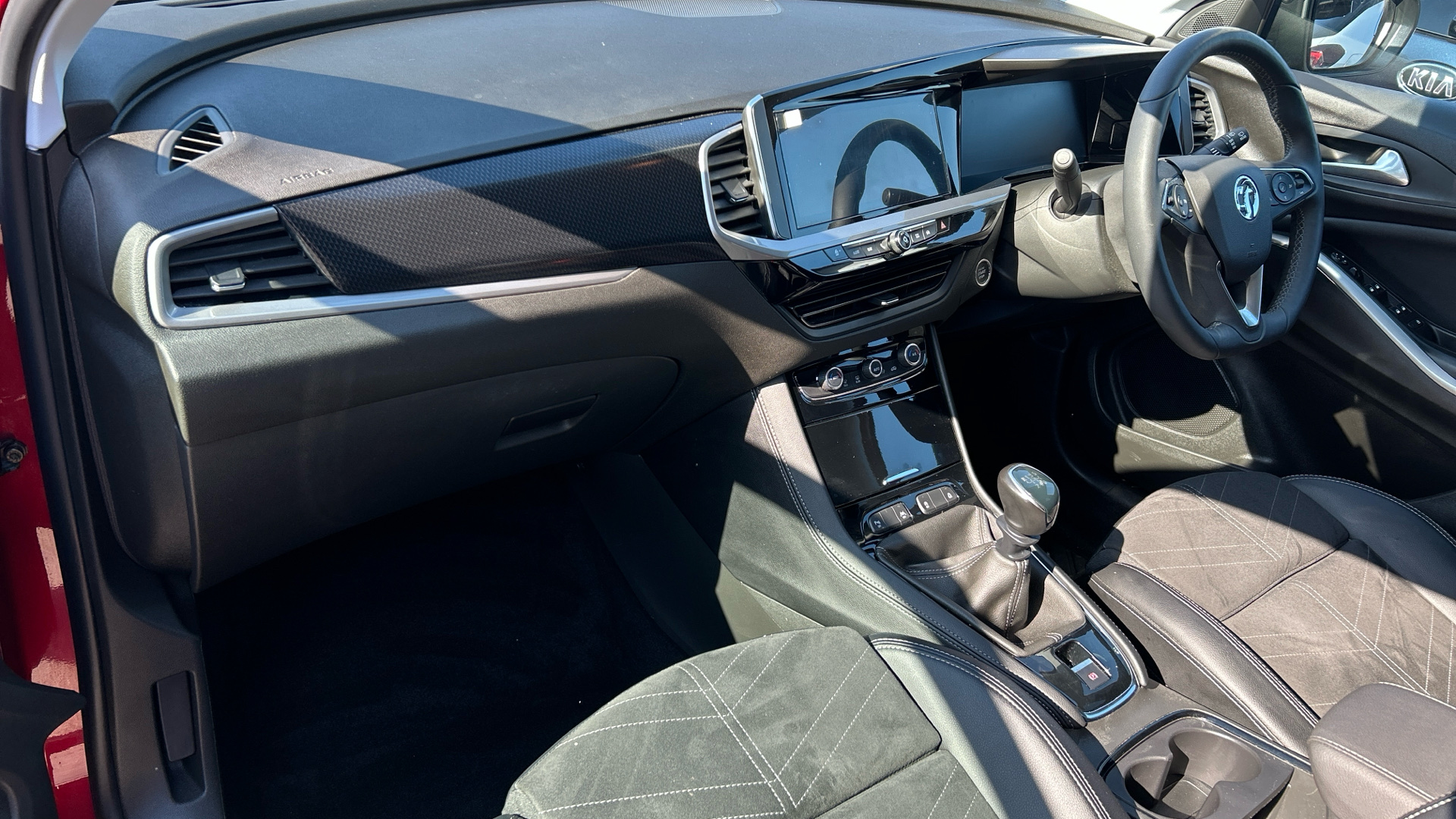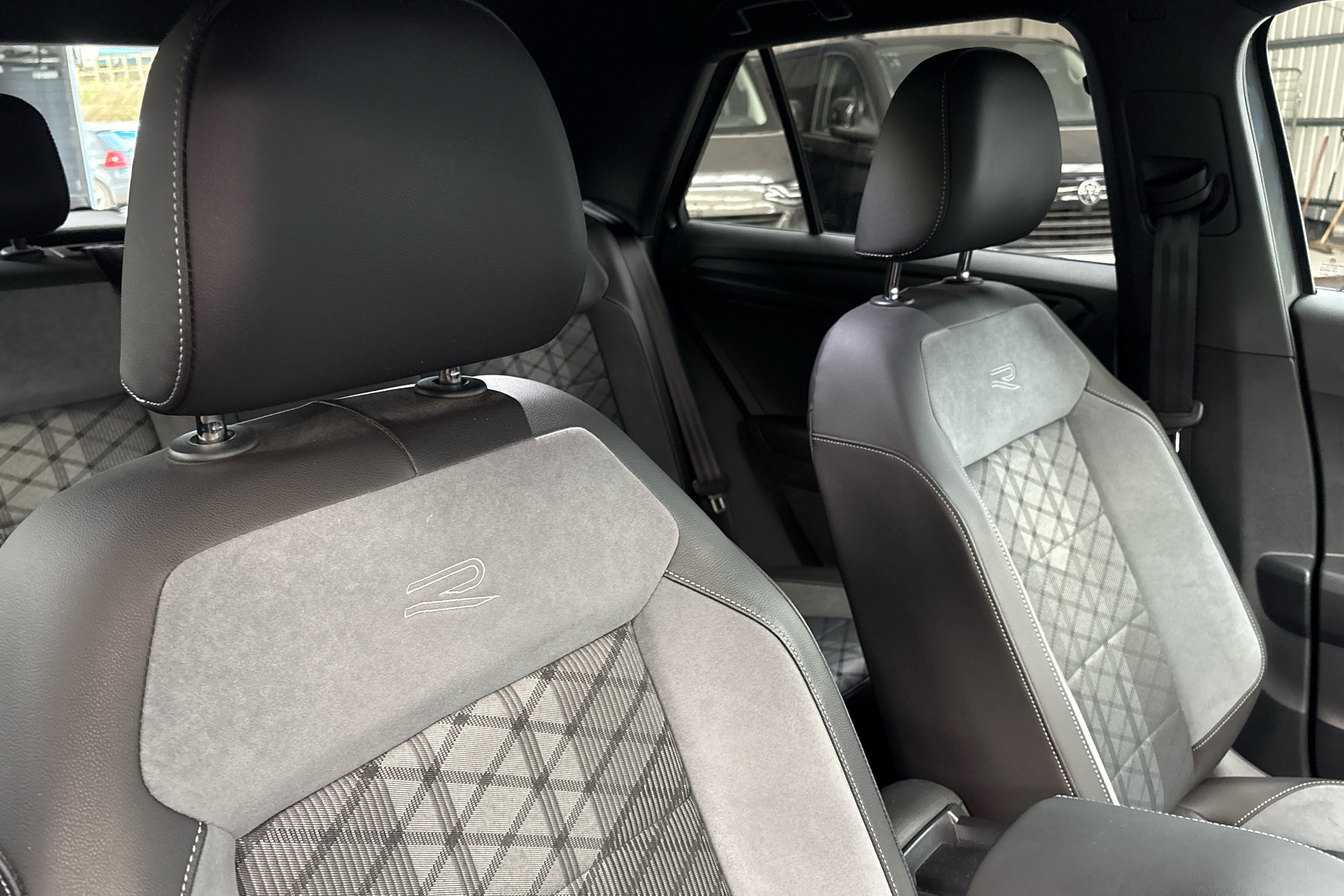 "R.S. line black suede-leather upholstery with red/grey stiching",