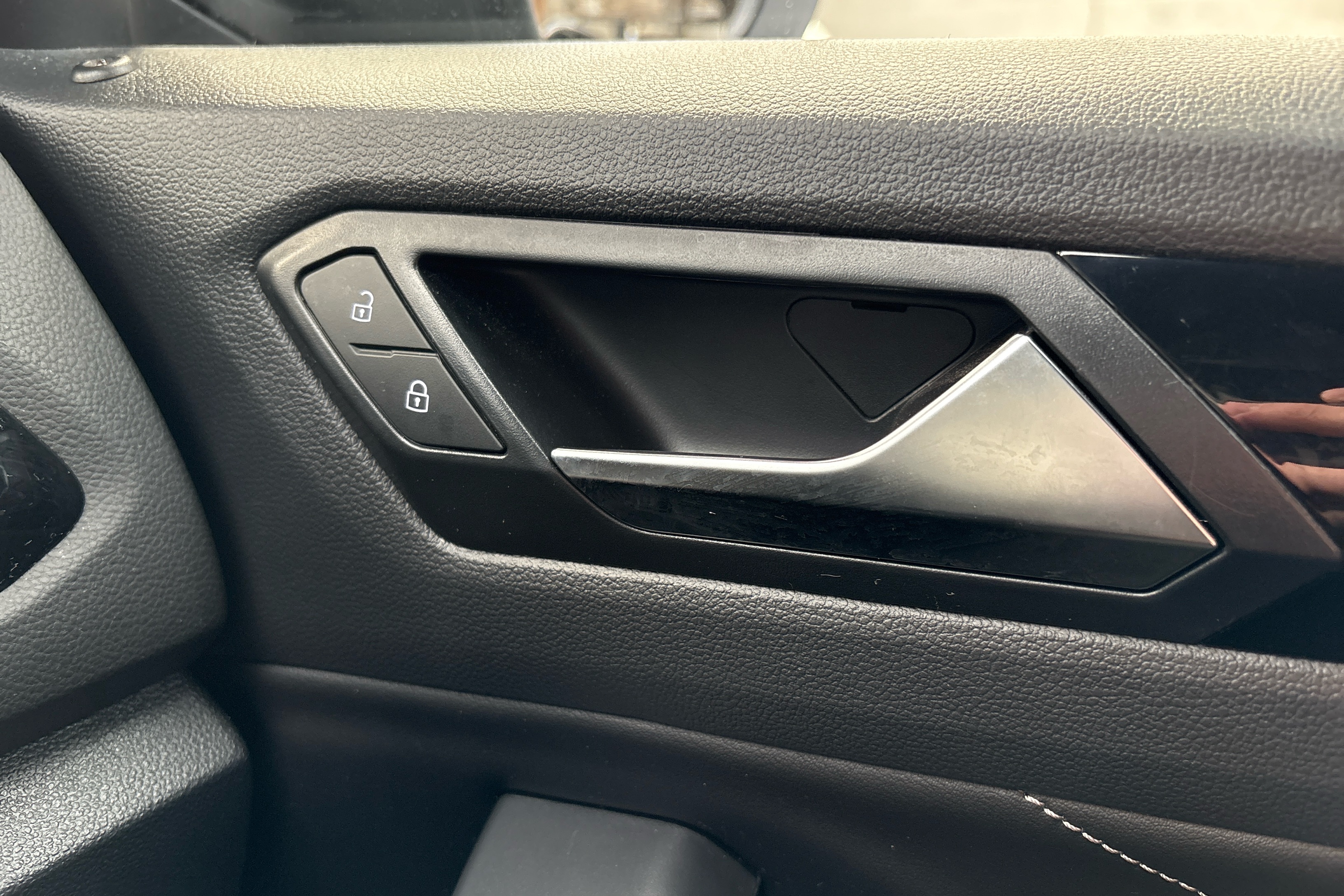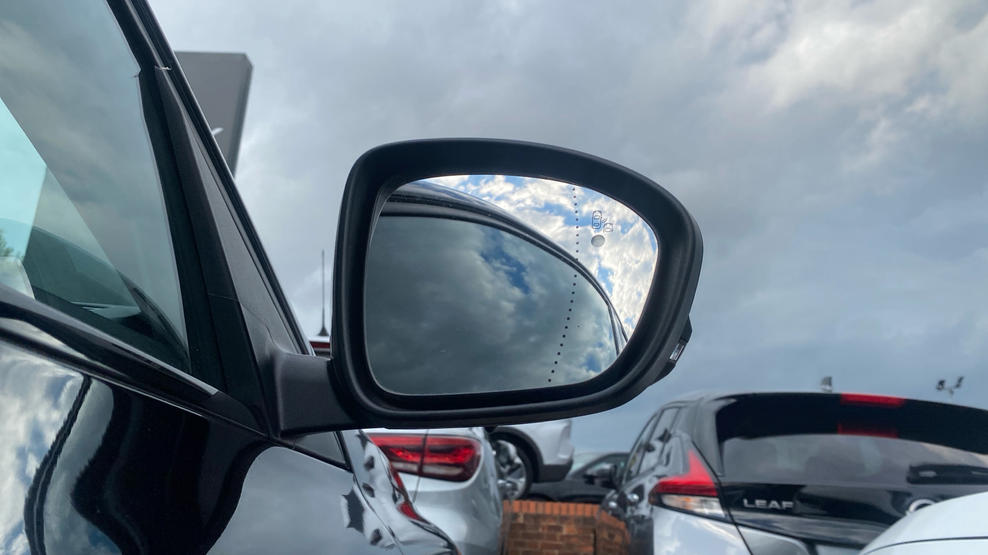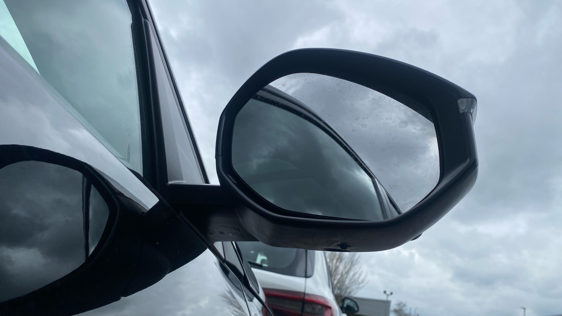 "Glossy black door mirror and lower window lining",