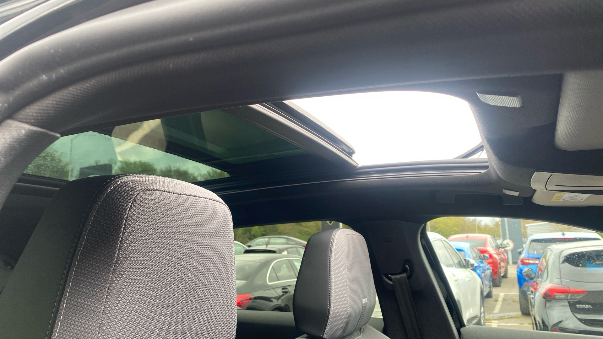 "Black interior roof lining",