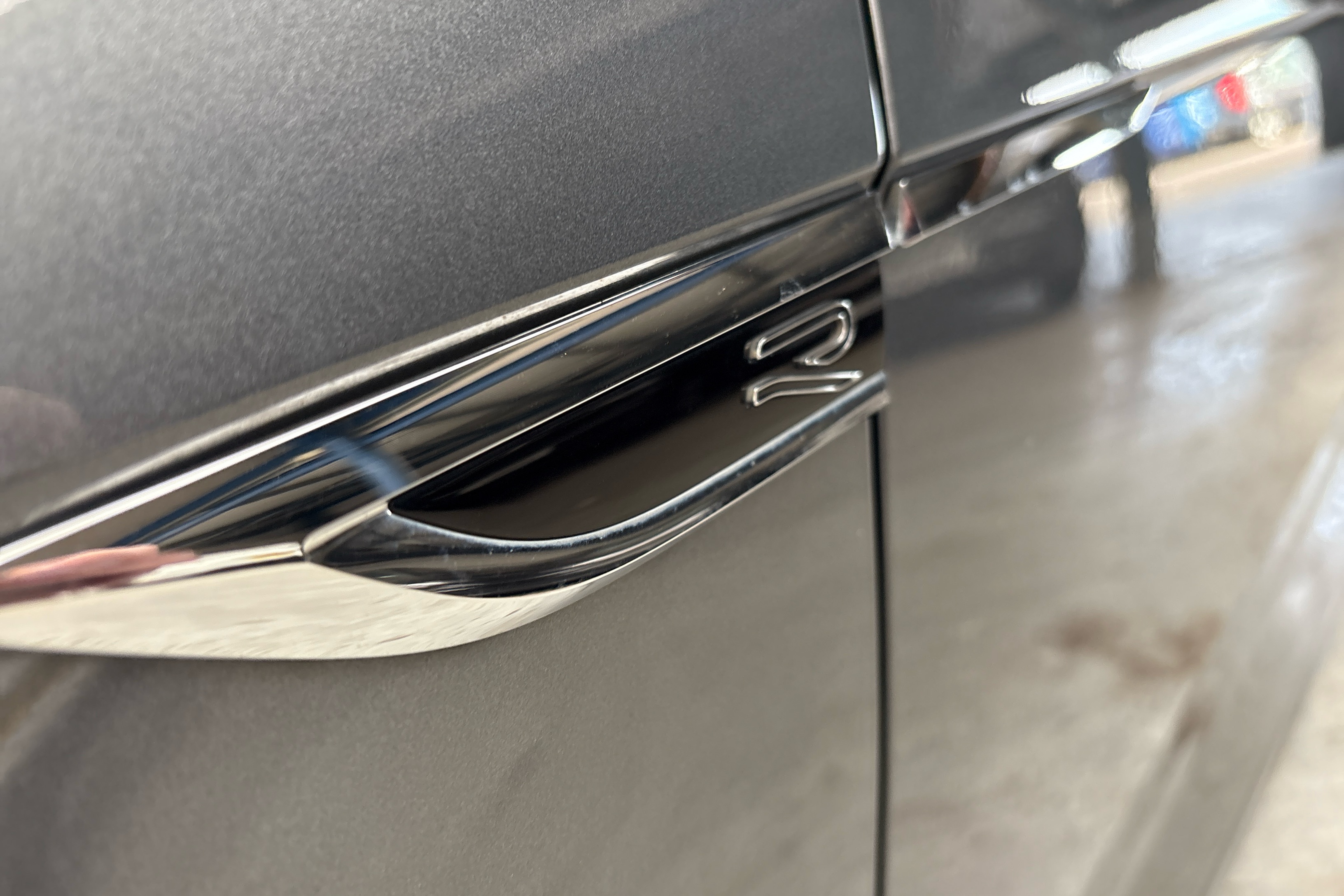 "Black side door protection with gun metal insert",