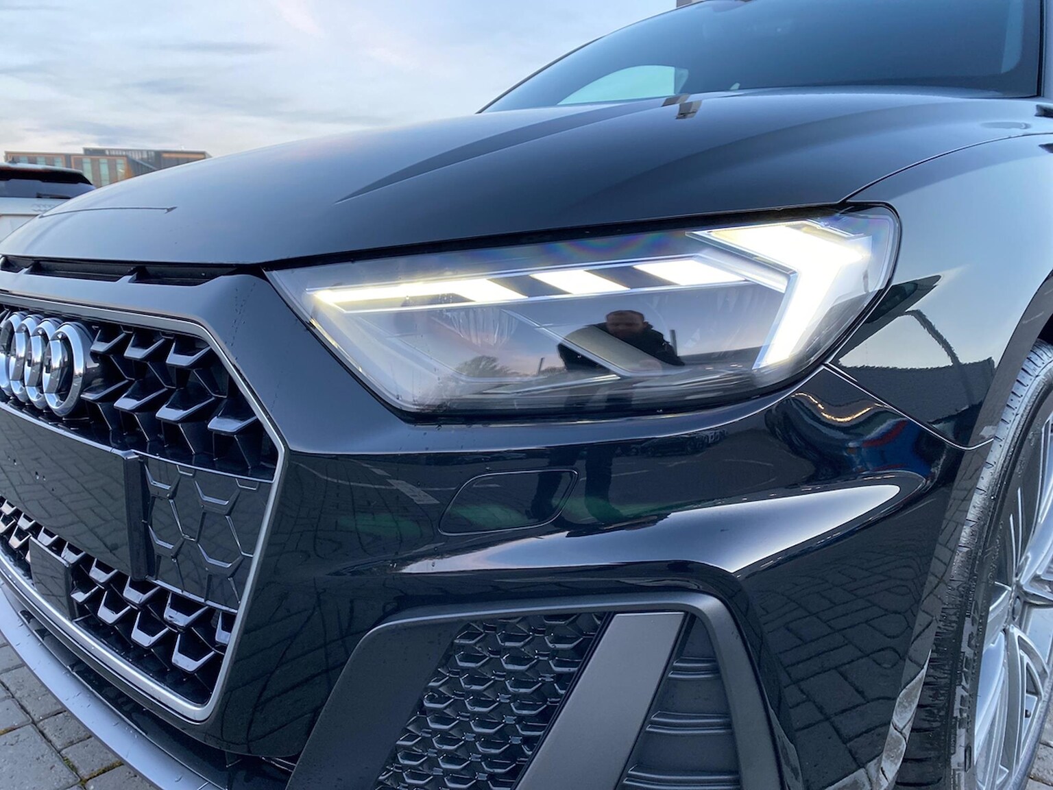 "Audi HD matrix LED headlights with Audi laser light + dynamic front and rear indicators",