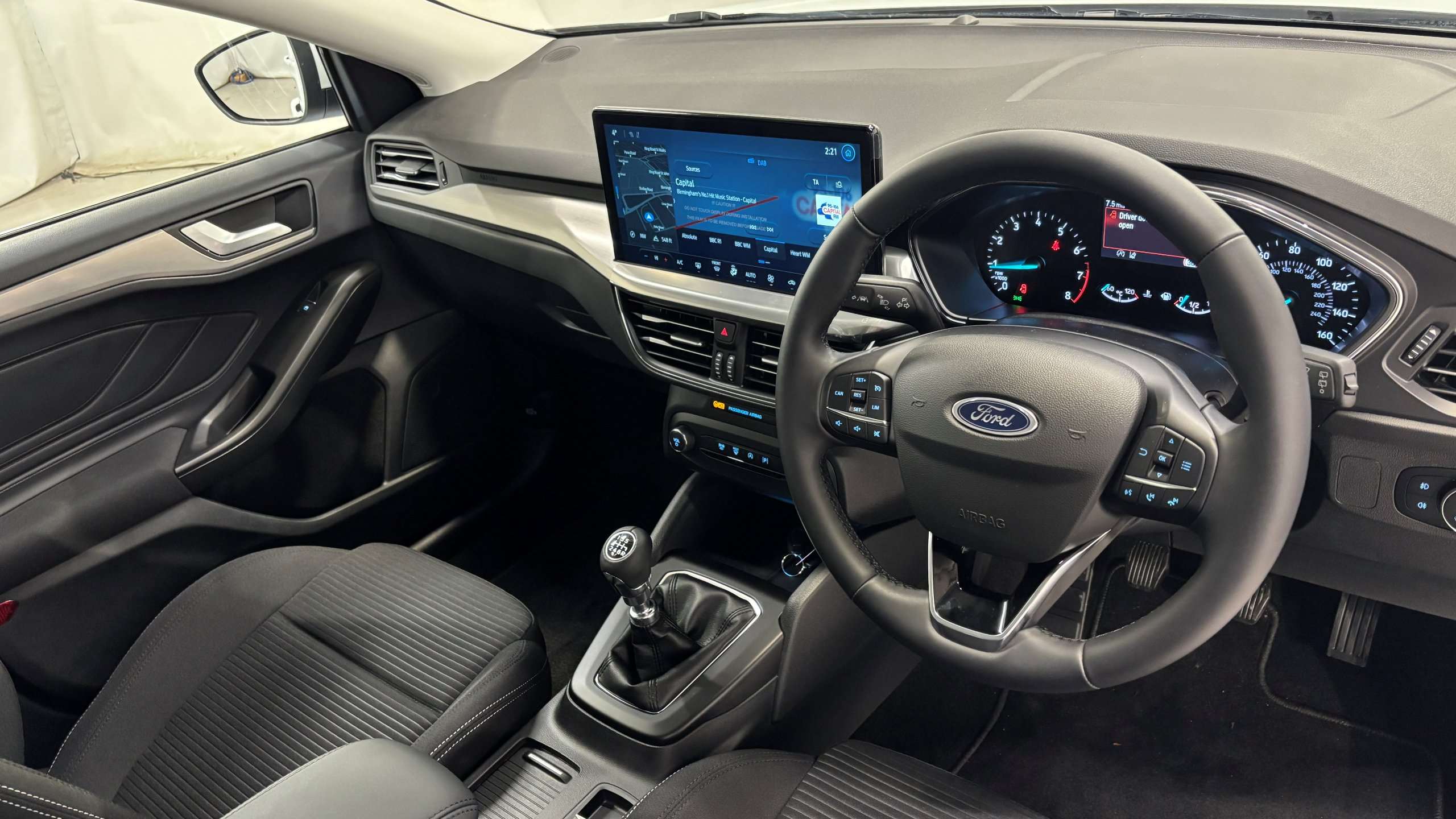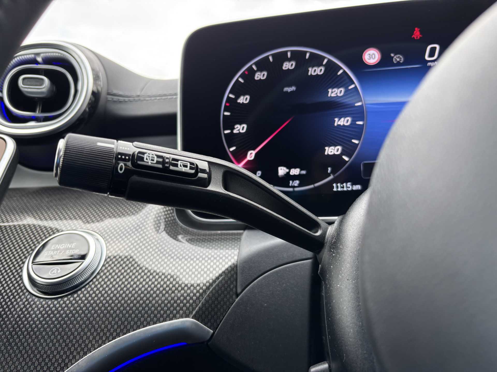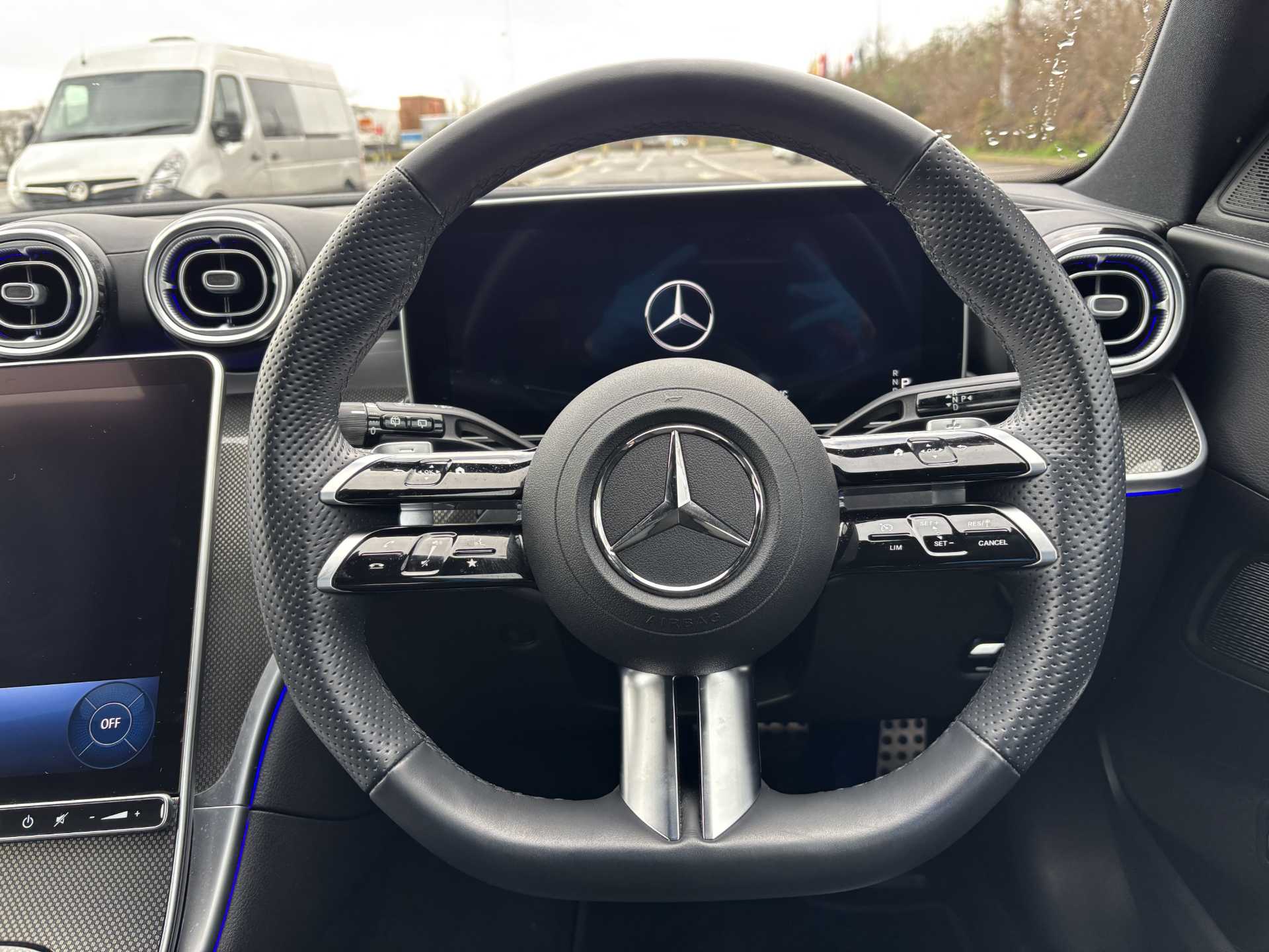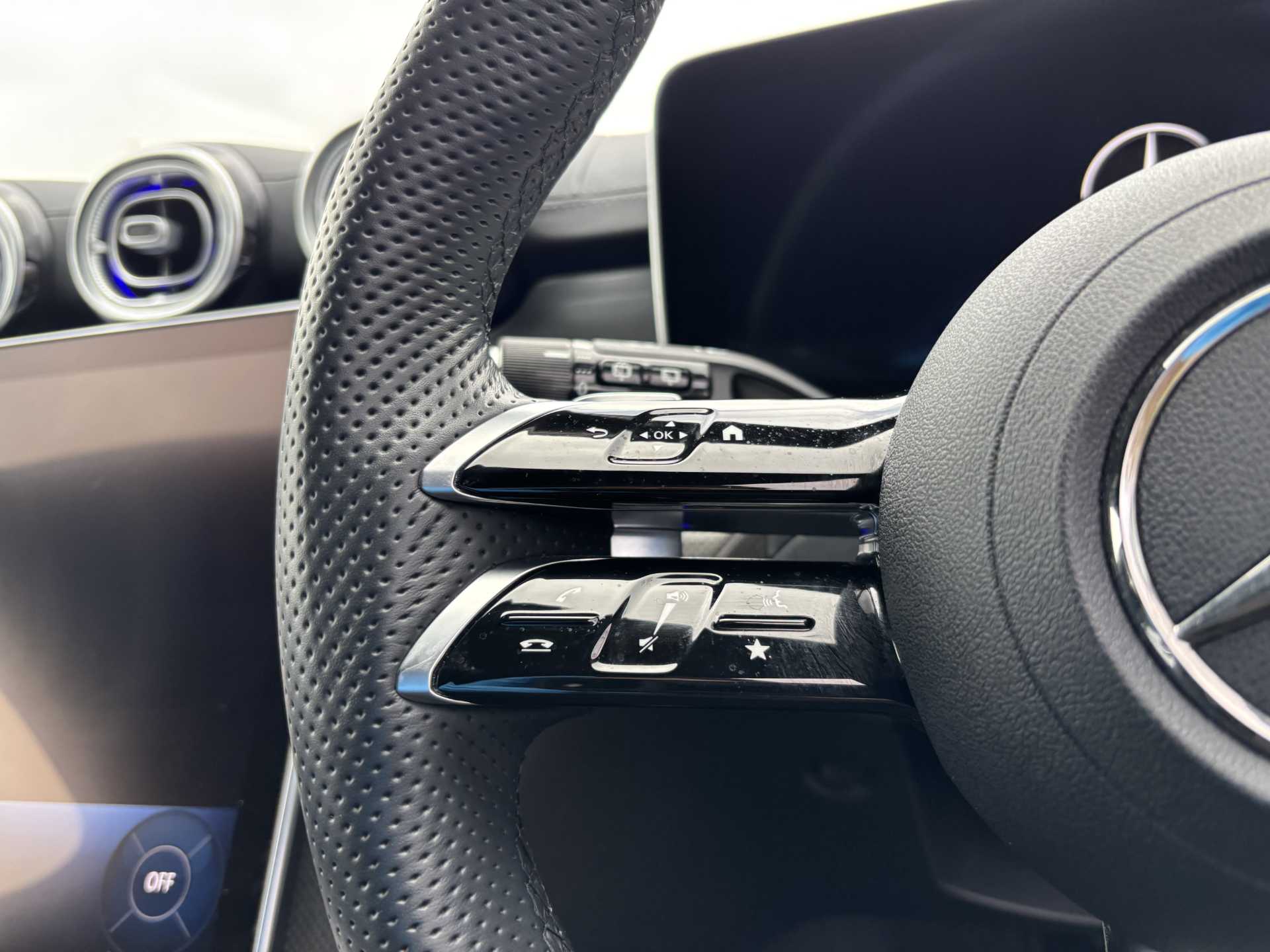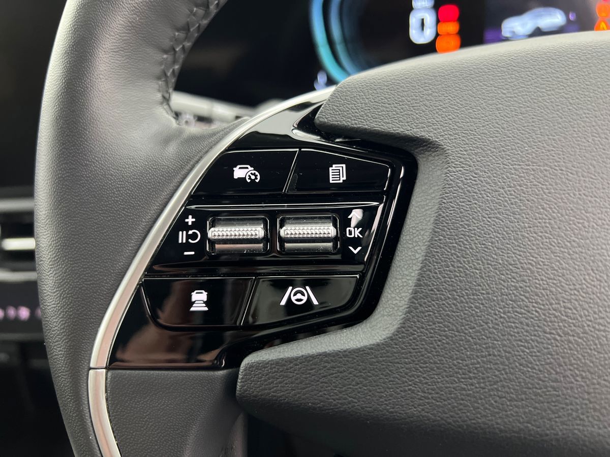 "Audio controls mounted on steering wheel"