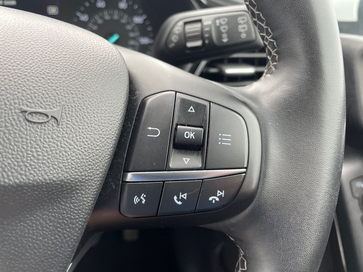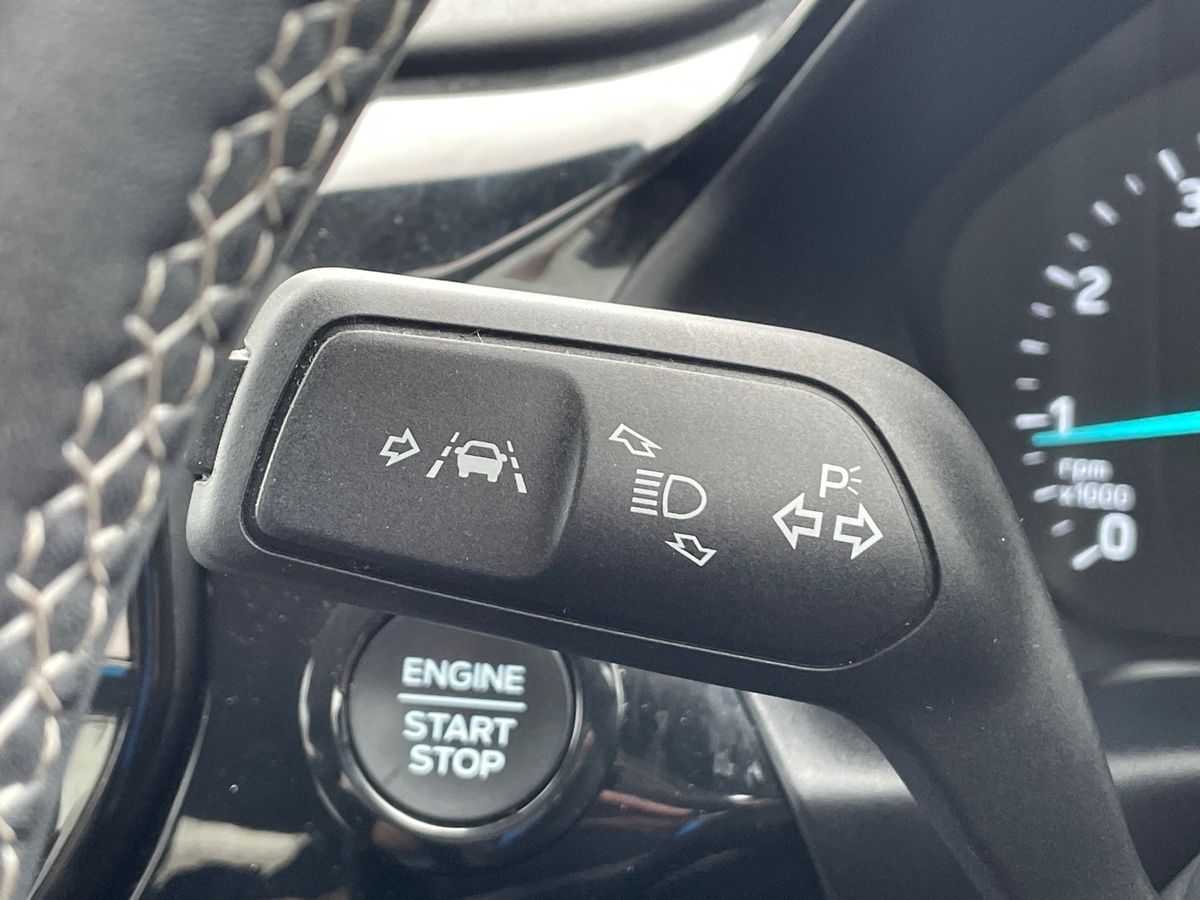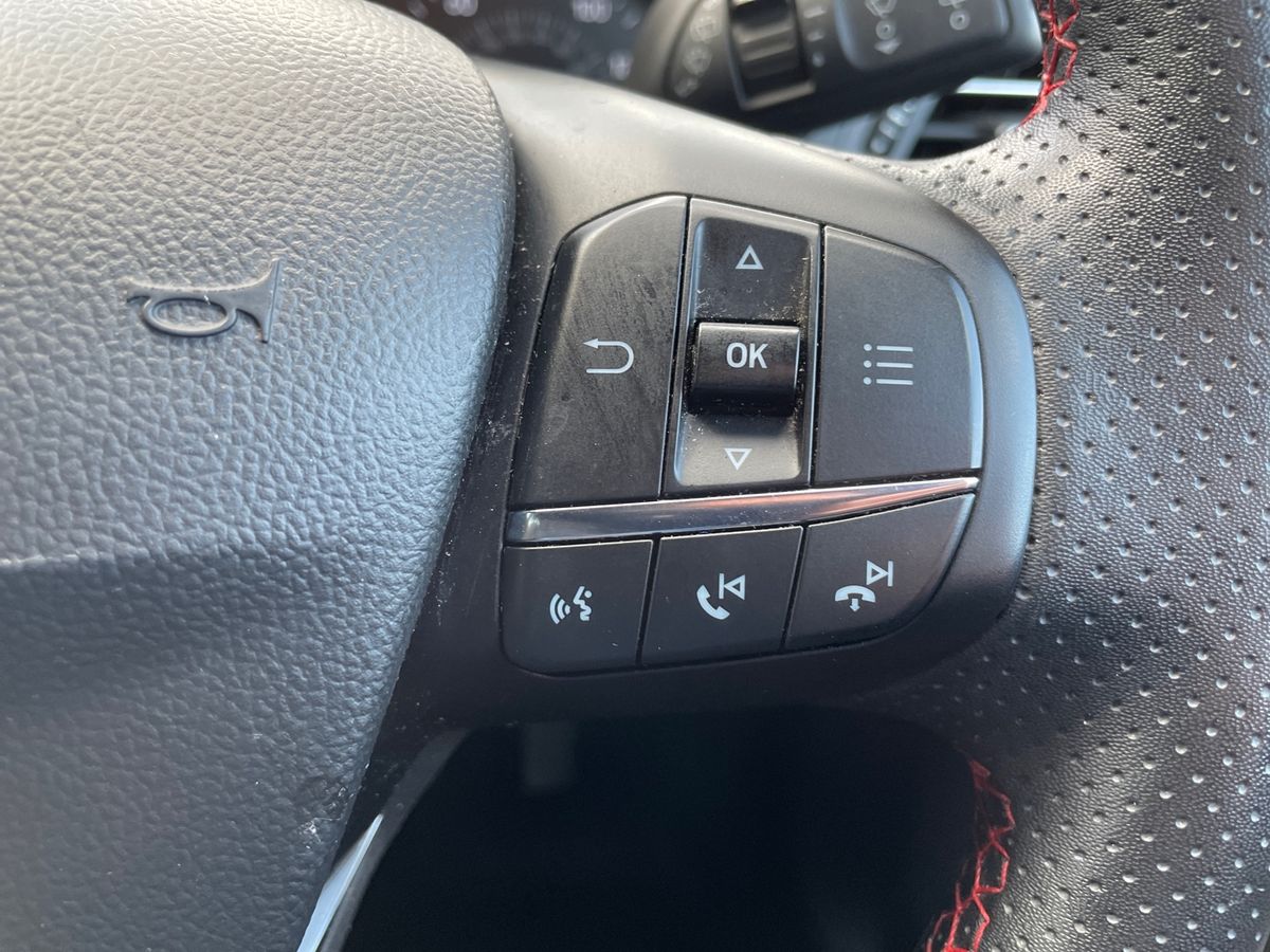 "features": "4.2\" Colour TFT Ice blue illumination analogue cluster with trip computer, Bluetooth system, Digital clock, Easy fuel capless refuelling system, Eco mode, Ford SYNC 4 Navigation with 13.2'' touchscreen, DAB radio, Emergency Assistance, Apple Carplay & Android Auto, 6 speakers & FordPass Connect, Lane keeping system - lane keeping alert and lane keeping aid, PAS, Rev counter, Selectable drive mode, Service interval indicator, Sports tuned suspension, 2 USB ports, Auto headlamps (on/off), Body coloured door handles, Electrically operated front and rear windows with one touch opening and closing, Electrically operated heated power fold door mirrors with puddle lamp with side indicators, Front variable intermittent wipers with electric wash, Full fixed LED headlamps, Heated rear window, LED daytime running lamp, LED rear lamps, LED third brake light, Polished twin tailpipe, Privacy glass, Quickclear heated windscreen, Rain sensor, Rear side wing doors, Tailgate wash/wipe, Unique ST-Line grille, full bodystyling kit, and large body coloured rear spoiler, 3 rear headrests, 3 seat bench in 2nd row, Cloth upholstery, Dual zone electronic air temperature control, Height adjustable front headrests, Isofix child seat preparation, Reach + rake adjustable steering column, Single front passenger seat, 3x3 point rear seatbelts, ABS+Electronic Brake force Distribution, Auto hold function, Driver airbag, EDL traction control, Electronic parking brake, Electronic stability control, Front and rear seatbelt reminder, Front inertia reel height adjustable seatbelts with pre-tensioners, Front passenger airbag, Front side airbags, Passenger airbag deactivate switch, Post collision braking, Pre collision assist with autonomous emergency braking and pedestrian/cyclist detection, Remote/power child rear door locks, Side curtain airbags, Three rear inertia reel lap/diagonal seatbelts, Tyre pressure monitoring system, Keyless entry and keyless start, MyKey system, Remote central locking & engine immobiliser, Thatcham alarm with power door dead locks, 17\" 5 spoke Rock mettalic finish alloy wheels with mini spare wheel, ",