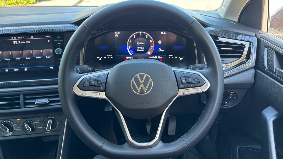 "3 spoke multi-function leather steering wheel",