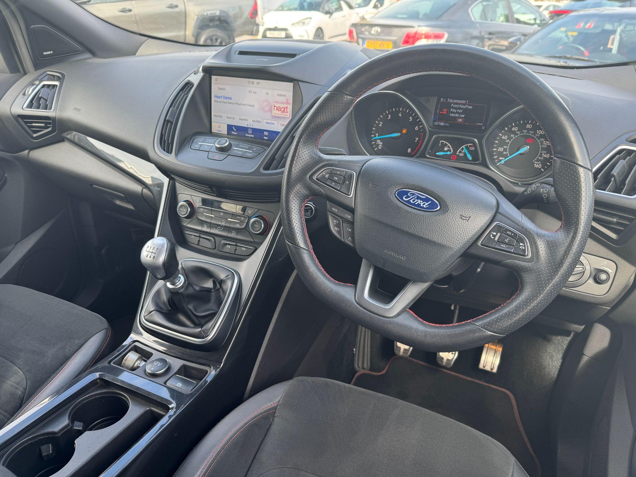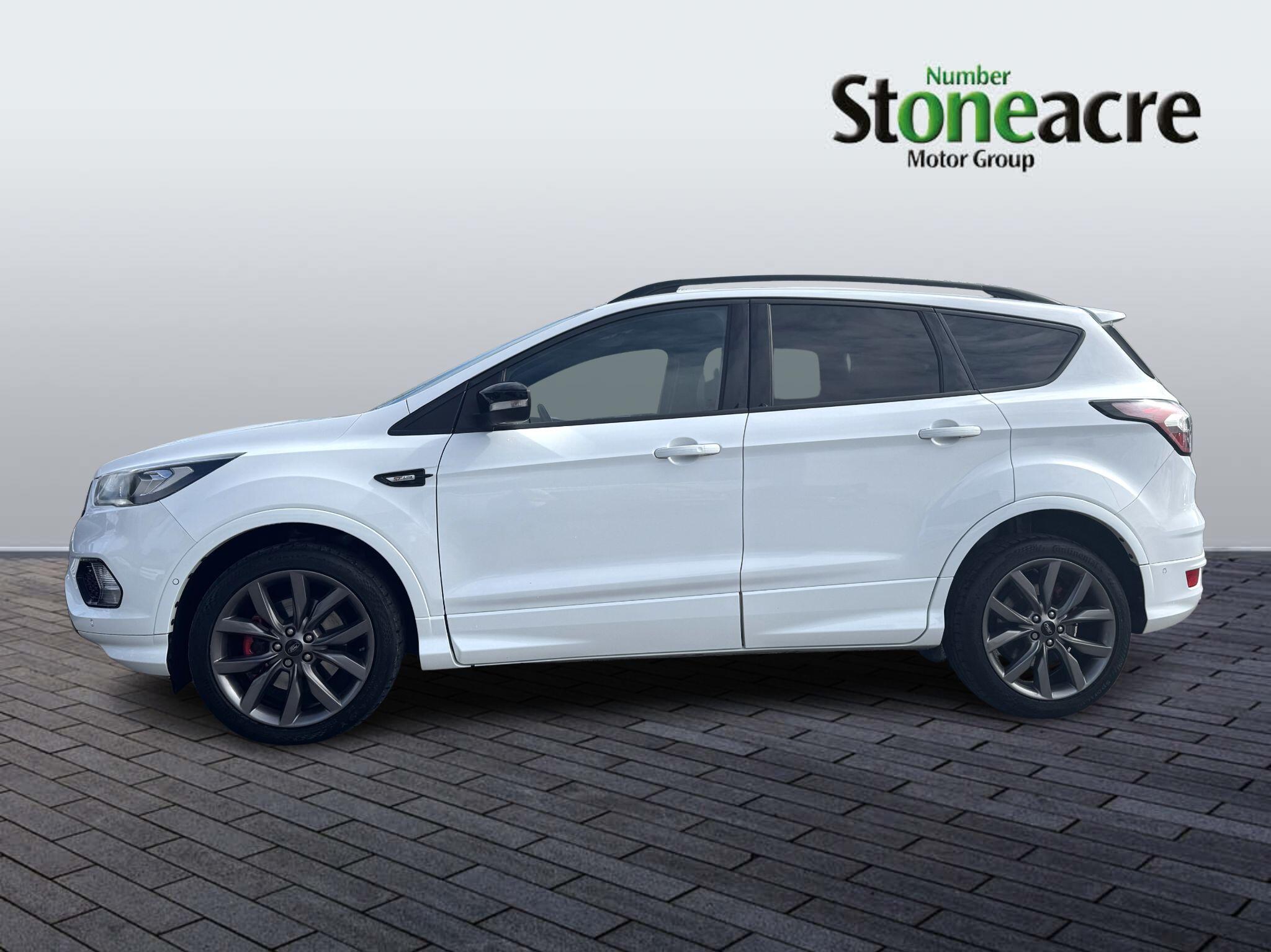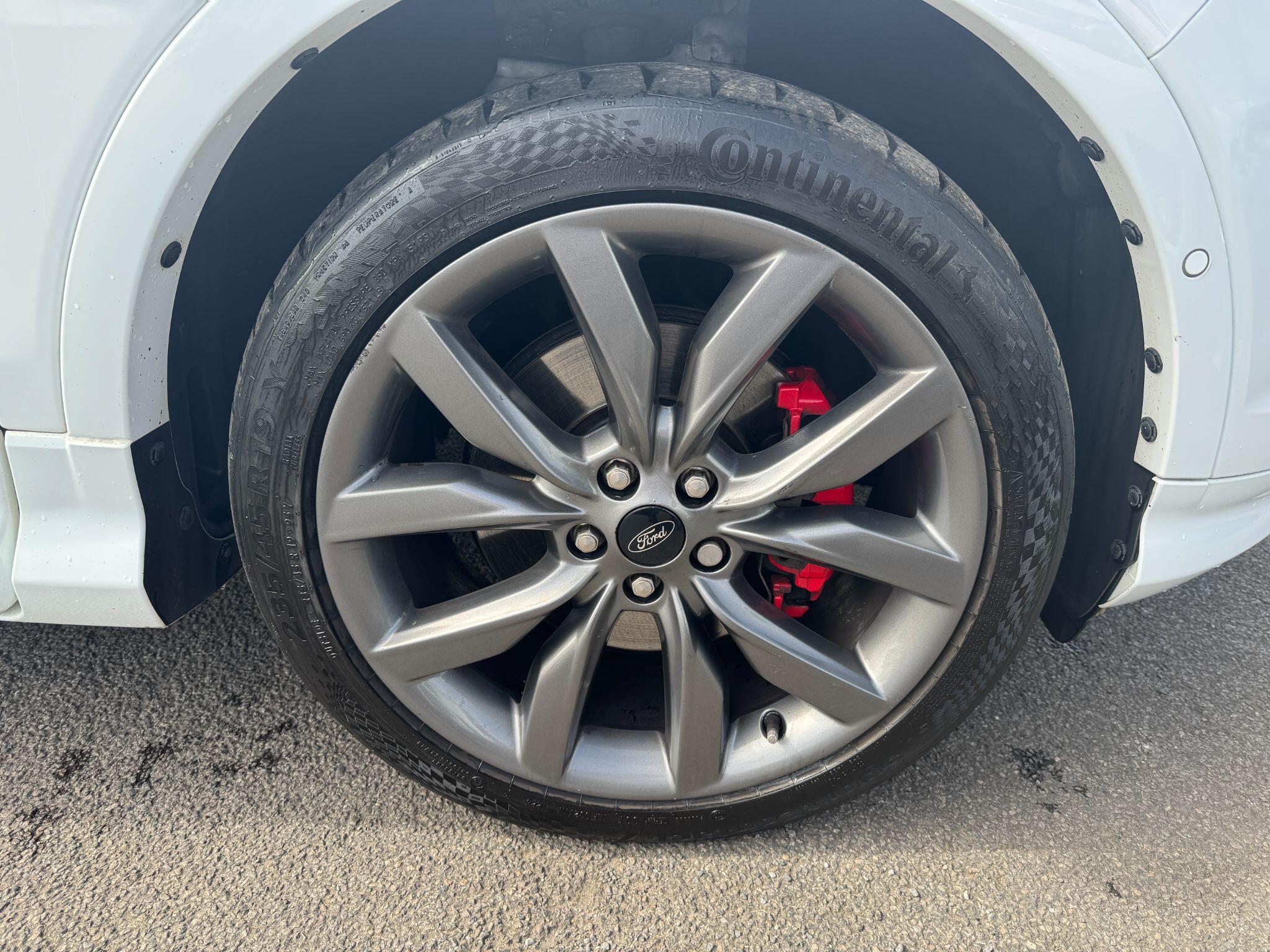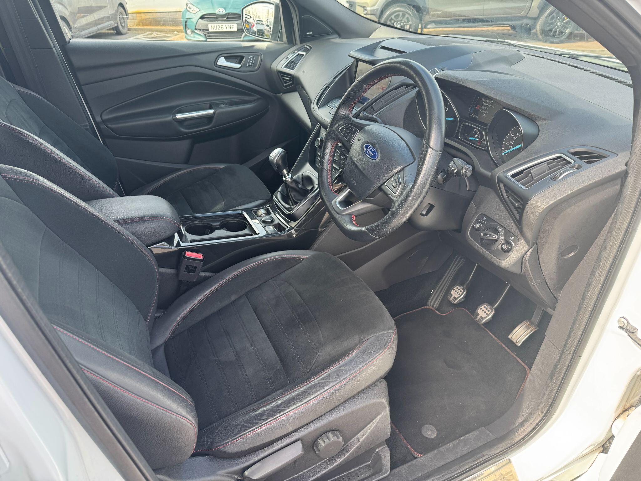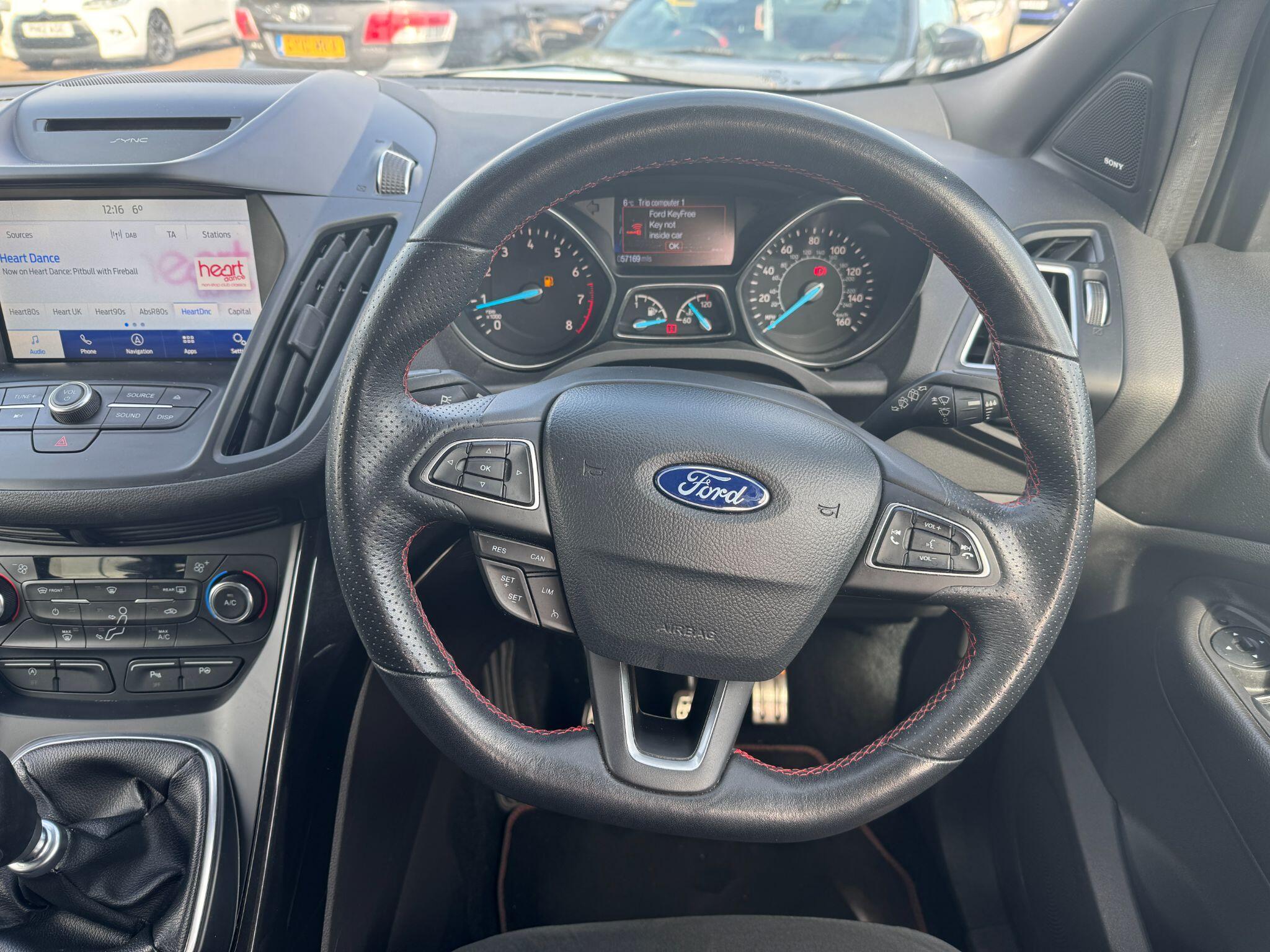 "features": "Apple car play/Android Auto, Enhanced active park assist including perpendicular parking pull out assist, flank guard and front/rear parking sensor, EPAS, Hands free telephone, Trip computer, Sports suspension, 2 USB ports, Auxiliary socket for external device, Remote audio controls on steering wheel, Auto dimming rear view mirror, Black mirror caps, Body colour bumpers, Body styling kit - Body colour front/rear/side skirts, door claddings, wheel arches, high gloss black rear mesh, silver skid plate and rear diffuser, Electrically operated and heated door mirrors with side indicators, Electrically operated front and rear windows with global closing, Front fog lights, Front scuff plate, Large rear spoiler, Power folding door mirrors, Power opening panoramic glass sunroof, Quickclear heated windscreen, Rain sensing wipers, Tailgate wash/wipe, Twin exhaust pipes, 6 way manually adjustable passenger seat with lumbar support, 60/40 split/folding rear back and cushion, Alloy Foot Pedals, Auxiliary power socket in luggage area, Centre console with stowage tray/bottle holder/CD stowage/front and rear 12V power point, Dark headliner, Driver/passenger front seatback pockets, Dual electronic automatic temperature control, Flat bottomed leather steering wheel with red stitching + gear knob, Floor mats with red stitching, Folding rear centre armrest, Footwell courtesy lights front and rear, Front head restraints, Front overhead courtesy lights with theatre style dimming and delay, Front/rear reading lights, Isofix system on outer rear seats, Multi-colour ambient interior lighting, Part leather upholstery, Reach + rake adjustable steering column, Rear head restraints, Sports style front seats, Stowage unit in upper instrument panel, Tie down hooks, Tonneau cover, Variable intensity instrument illumination, Appearance pack - Kuga/ST-Line, 3 point seatbelts on all 3 rear seats, ABS/EBD, Airbags - front driver/passenger, front & rear side, curtain, drivers knee, EBA, Electric traction assist system, Electronic Stability Programme, Front passenger airbag deactivation switch, Hill start assist, Intelligent Protection System (IPS), Red brake calipers, Tyre pressure monitoring system, Engine immobiliser, Keyless entry, Keyless start with 'Ford Power' starter button, Locking wheel nuts, MyKey system, Remote powered central double locking doors, Thatcham category 1 alarm, 19\" 5x2 rock metallic alloy wheels, Mini steel spare wheel, ",