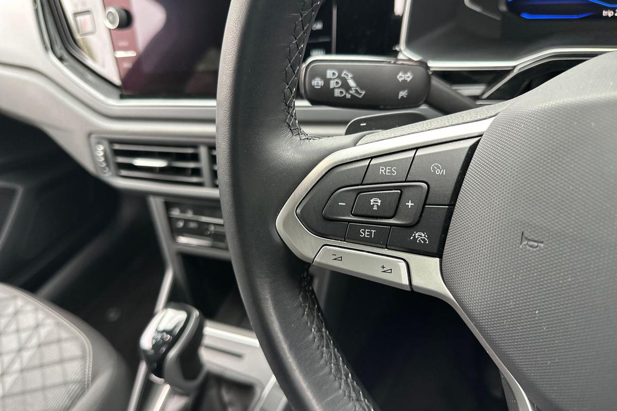 "features": "Adaptive cruise control, App-Connect including App-Connect Wireless, Digital cockpit pro - 10.25\" high resolution TFT dash display screen with customizable menus and information, Driver alert system, Driving profile selection, e-Call (emergency call), Power Steering, Travel assist including emergency assist, Washer fluid level indicator, Wireless Charging including Bluetooth, Start-stop system with battery regeneration (recuperation - energy recovery during braking), XDS electronic differential lock for improved traction and handling, Digital radio reception (DAB+), Diversity antenna for FM reception, WeConnect plus, Ambient lighting with logo projection, Aspherical driver's exterior mirror, Auto headlights, Body coloured bumpers, Body coloured exterior mirror housings and door handles, Bumpers in R-Line style, Electric windows, External USB type C socket and charging sockets, Front fog lamps with cornering function, Front scuff plates with R-Line logo, Headlight range control, LED headlamps, LED rear combination lamp, LED third brake light, Left convex exterior mirror, Power folding adjustable/heated exterior mirrors and front passenger exterior mirror lowering function, Rear fog light on one side, reversing light on both sides, Rear side wing doors, Rear wash/wipe with intermittent wipe setting, 12V socket in centre console, 2 front reading lights, 3 rear head restraints, 3 seat bench in 2nd row, Air care climatronic air conditoning system with active combination filter and 2-zone temperature control, Black carpets, Black roof lining, Child seat anchor for child seat system i-Size, 2x top tether and child seat anchor in front on front passenger side, Chrome bezel for instrument cluster, vents, door handles + gear shift, Driver and front passenger seat height adjustment, Front + rear carpet mats, Front centre armrest, Front footwell illumination, Front sports comfort seats, Height and reach adjustable steering wheel, Interior ambient lighting and surround lighting, Karoso artvelours cloth upholstery, Leather trimmed gear knob, Leather wrapped multifunction steering wheel, Luggage compartment floor, Luggage compartment light, Lumbar support for driver's and front passengers seat, Seat covers in grey + titanium black, Single front passenger seat, Split folding backrest with centre armrest and unsplit rear seat bench, Stainless steel pedals, Storage compartment under front seats, Sun visors with illuminated vanity mirrors, Chrome Package - Taigo, Drivers assistance pack - Taigo, Light and Sight pack including High beam assist - Taigo, 2 x 3-point seatbelts/outer rear seats with ECE label, 3-point seat belts in front with pretensioner and height adjustment, 3-point seatbelt for centre rear seat, Driver and front passenger airbags with front passenger airbag de-activation, front side and curtain airbags, Driver and front passenger safety-optimised head restraints, Electronic stability control, Extended and predictive pedestrian/ cyclist protection, Front and rear disc brakes, Front curtain and side airbags with center airbag, Hill start assist, Manual rear child locks, Single tone horn, Tyre pressure loss indicator, Anti-theft alarm system with interior monitoring, backup horn, and towing protection, Anti-theft wheel bolts, Grey anodised matte decorative inserts in dash and front door panels, Low rolling resistance tyres, ",