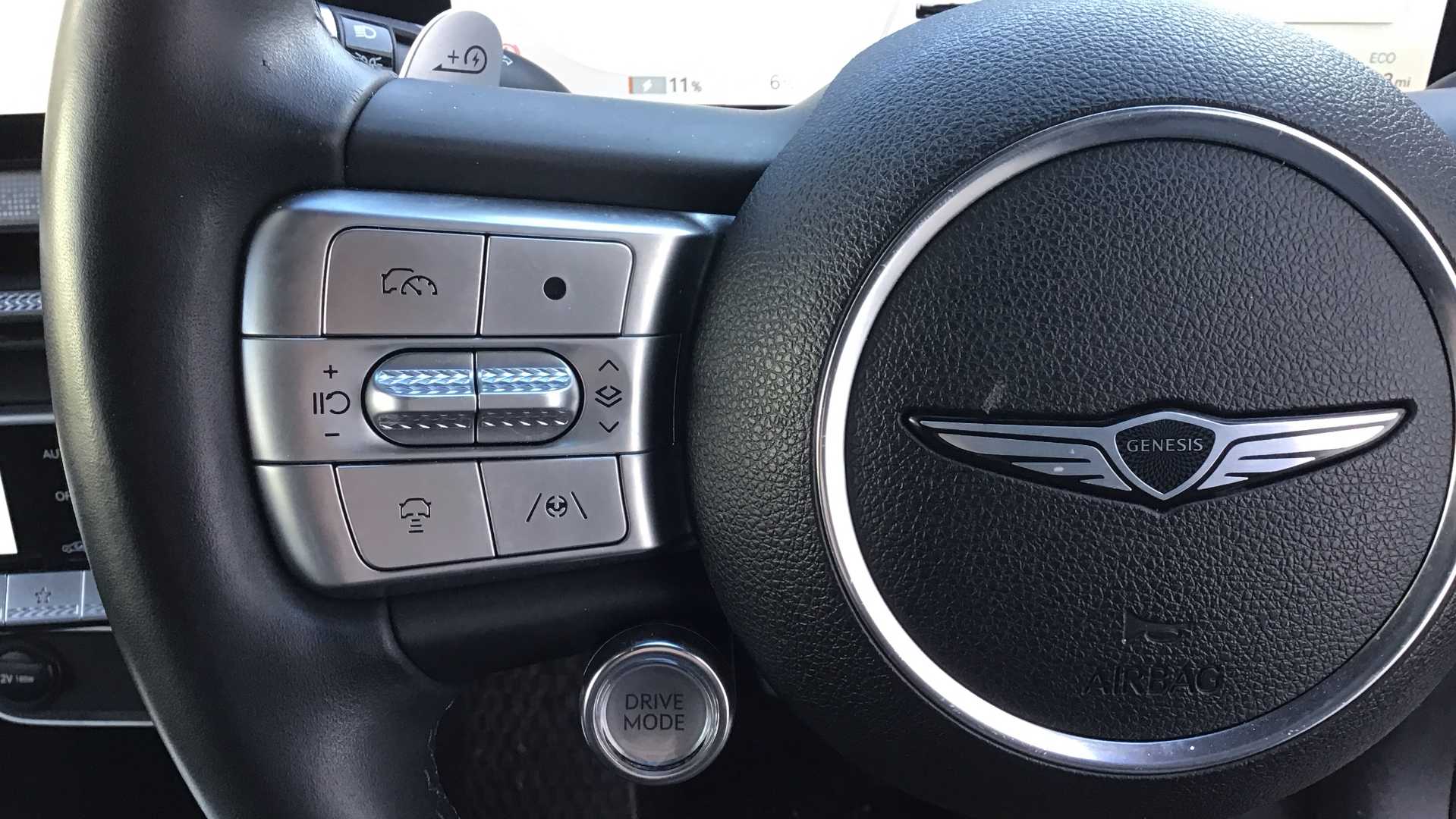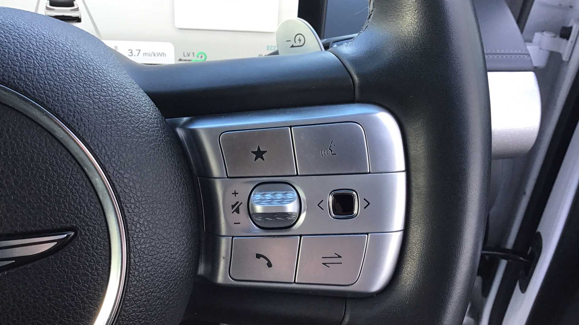 "Audio controls mounted on steering wheel"