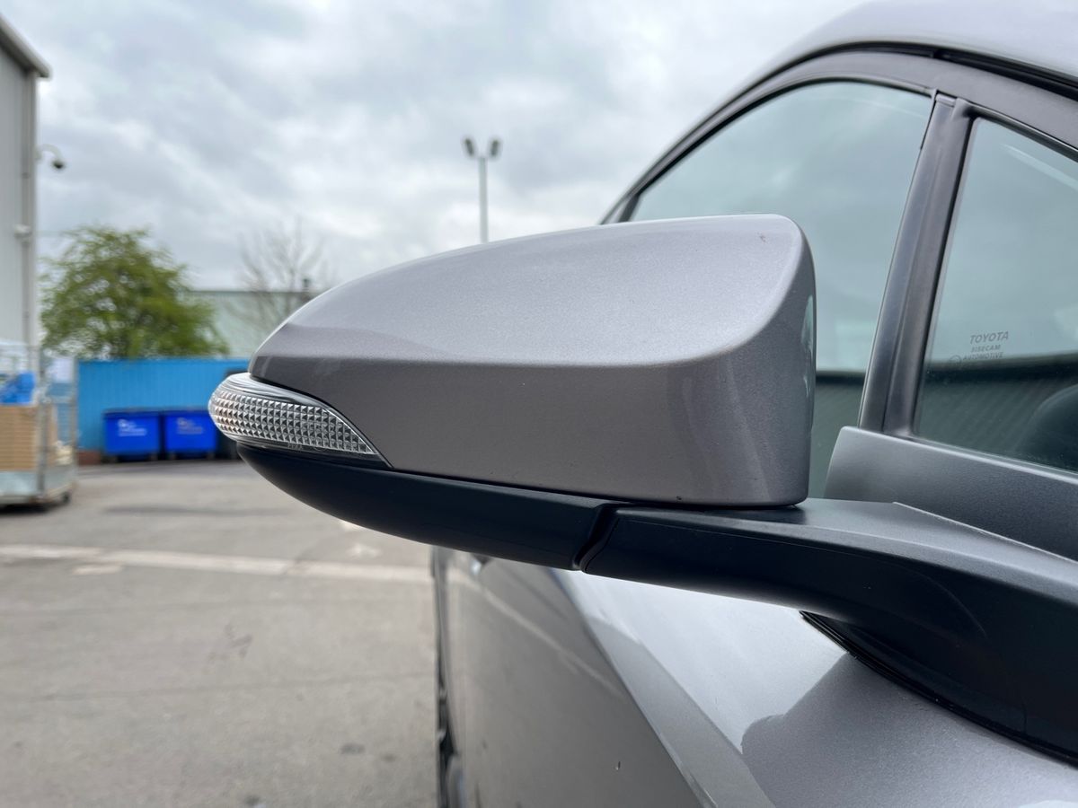 "Dark metal door mirrors in grey",