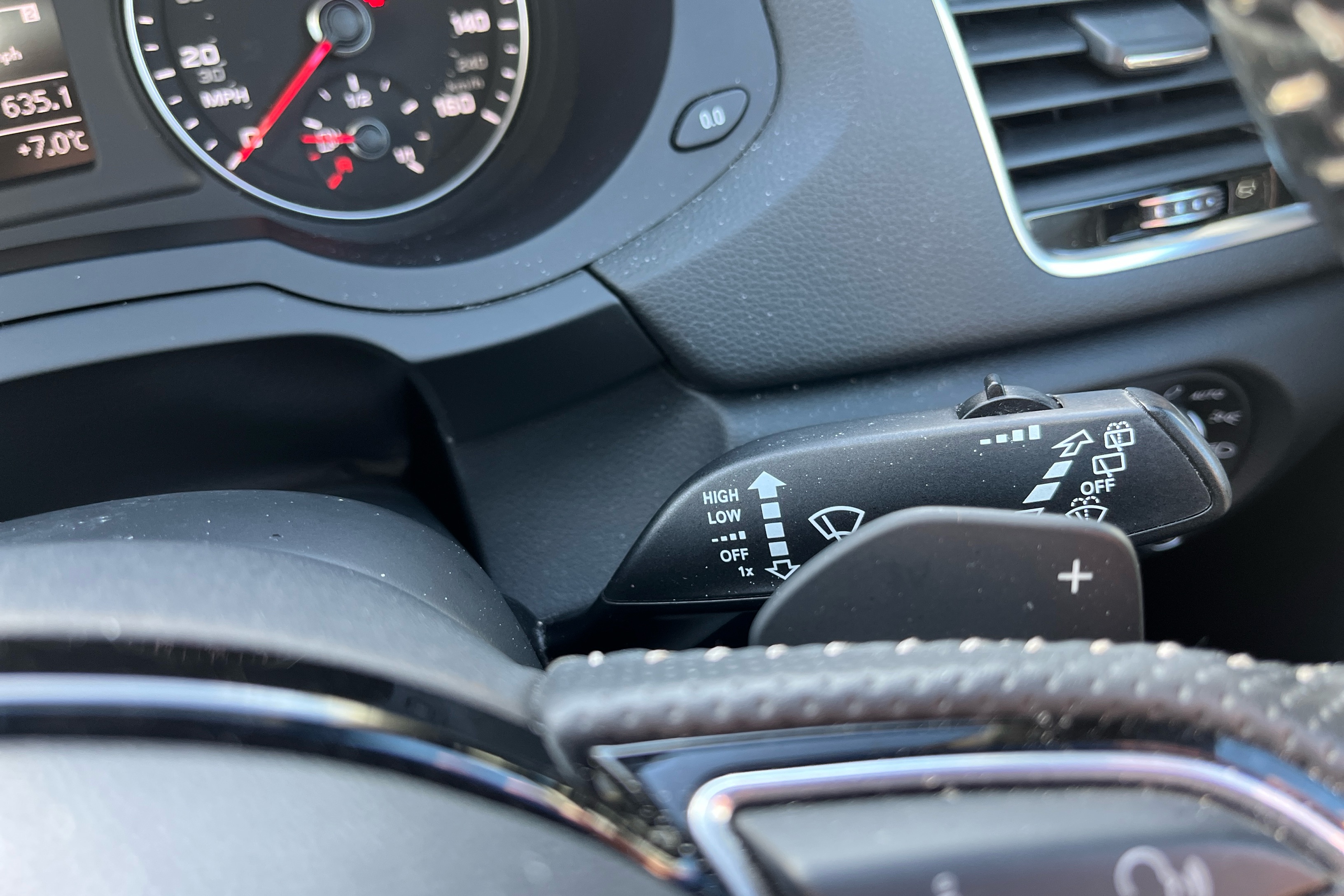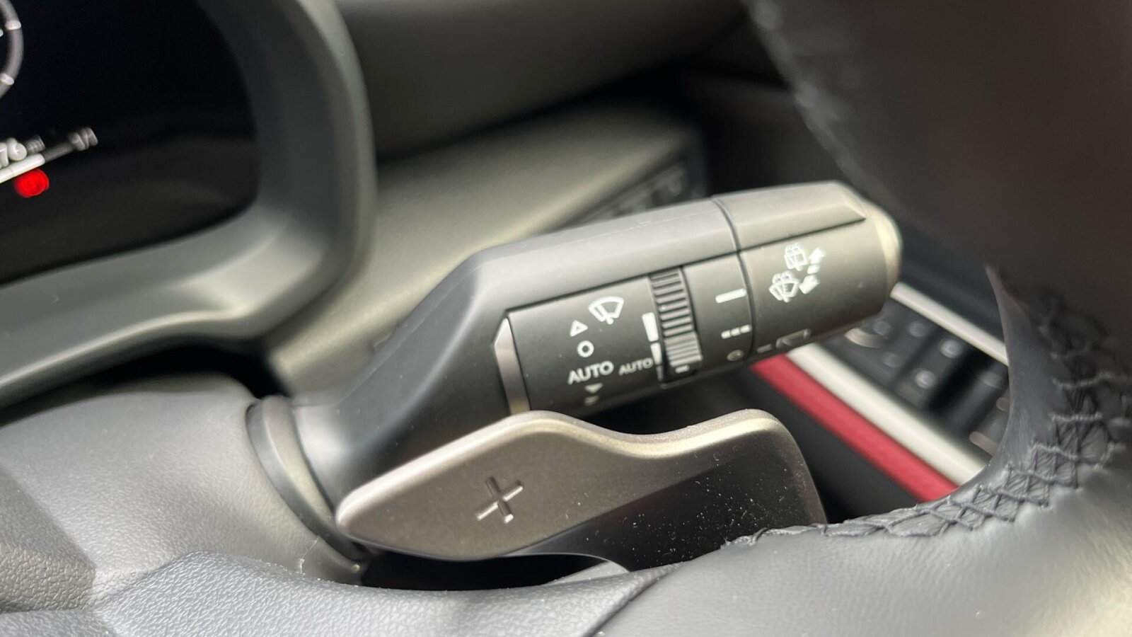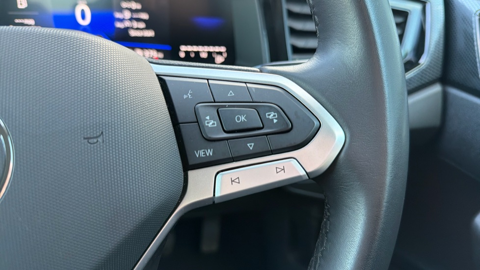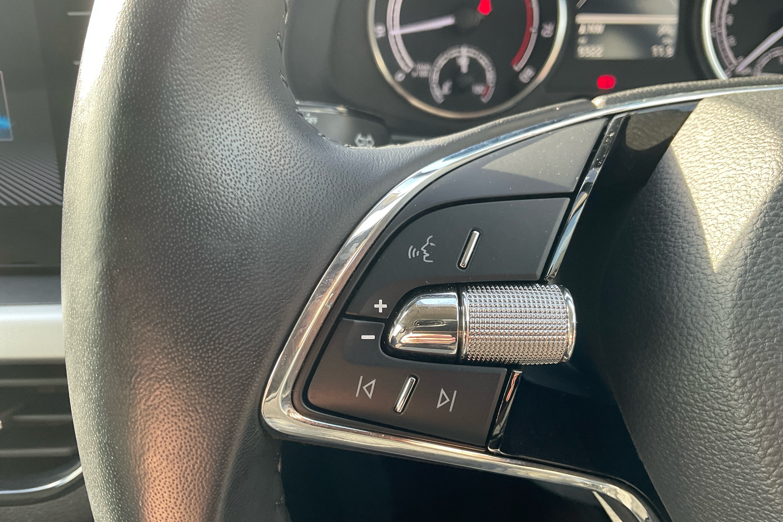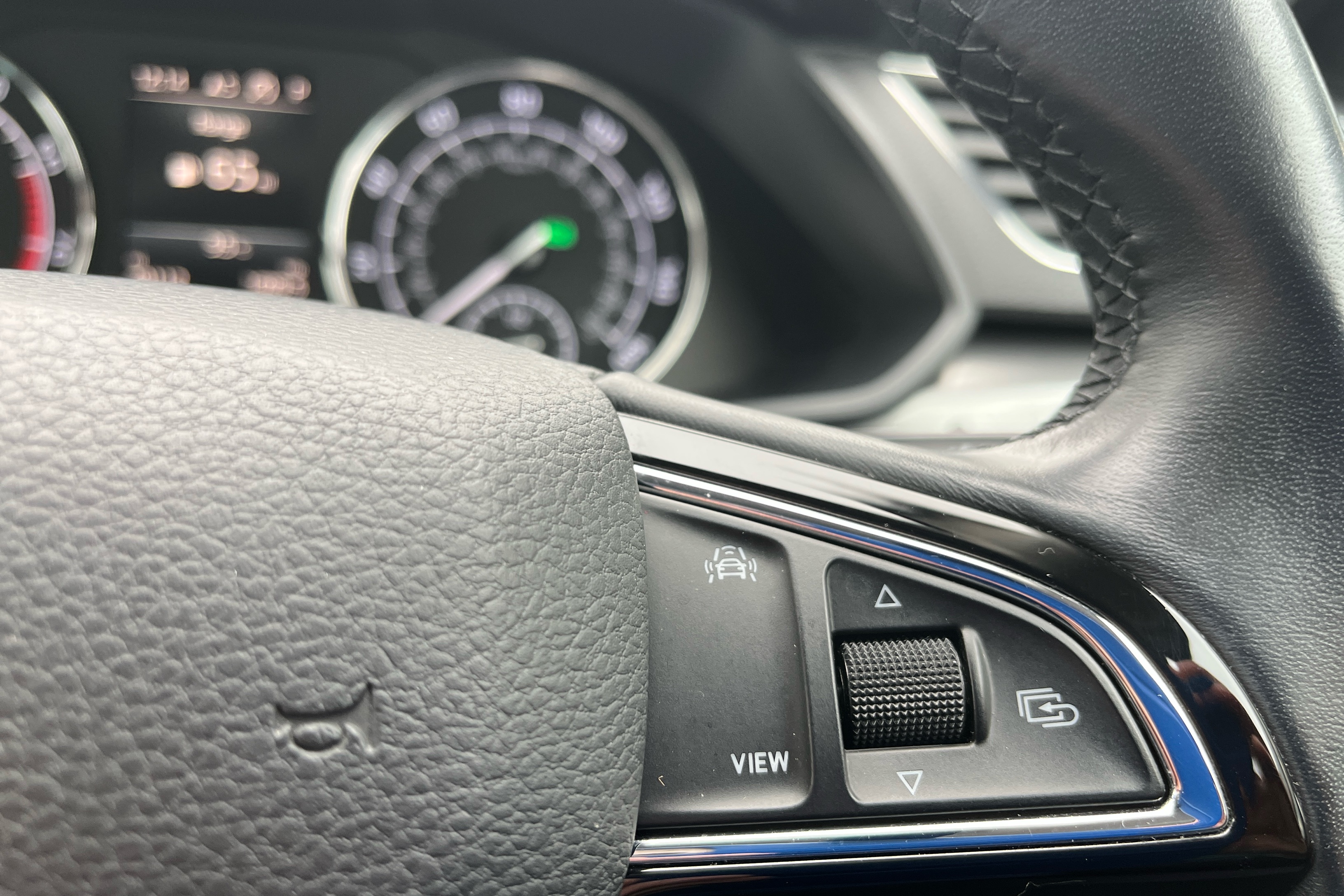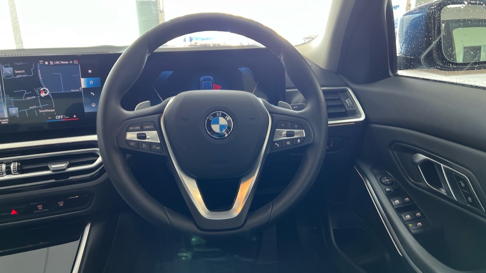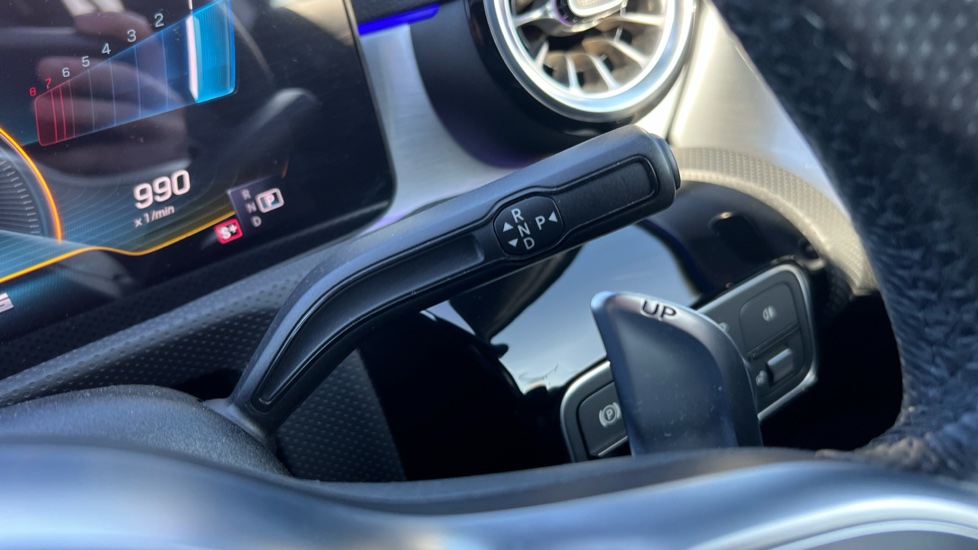 "3 spoke flat bottom multi-function perforated leather steering wheel with contrast stitching and aluminium gearshift paddles",