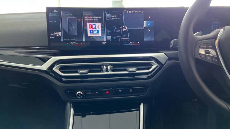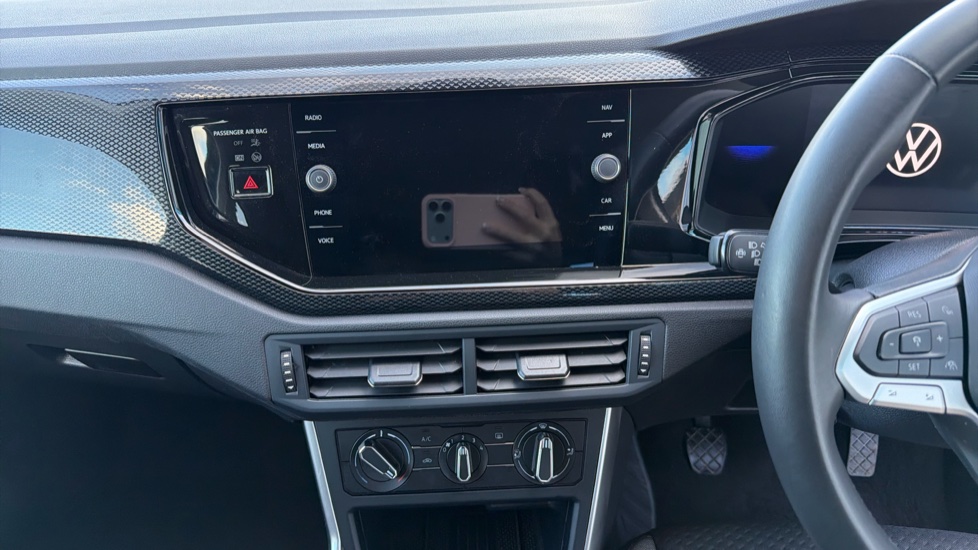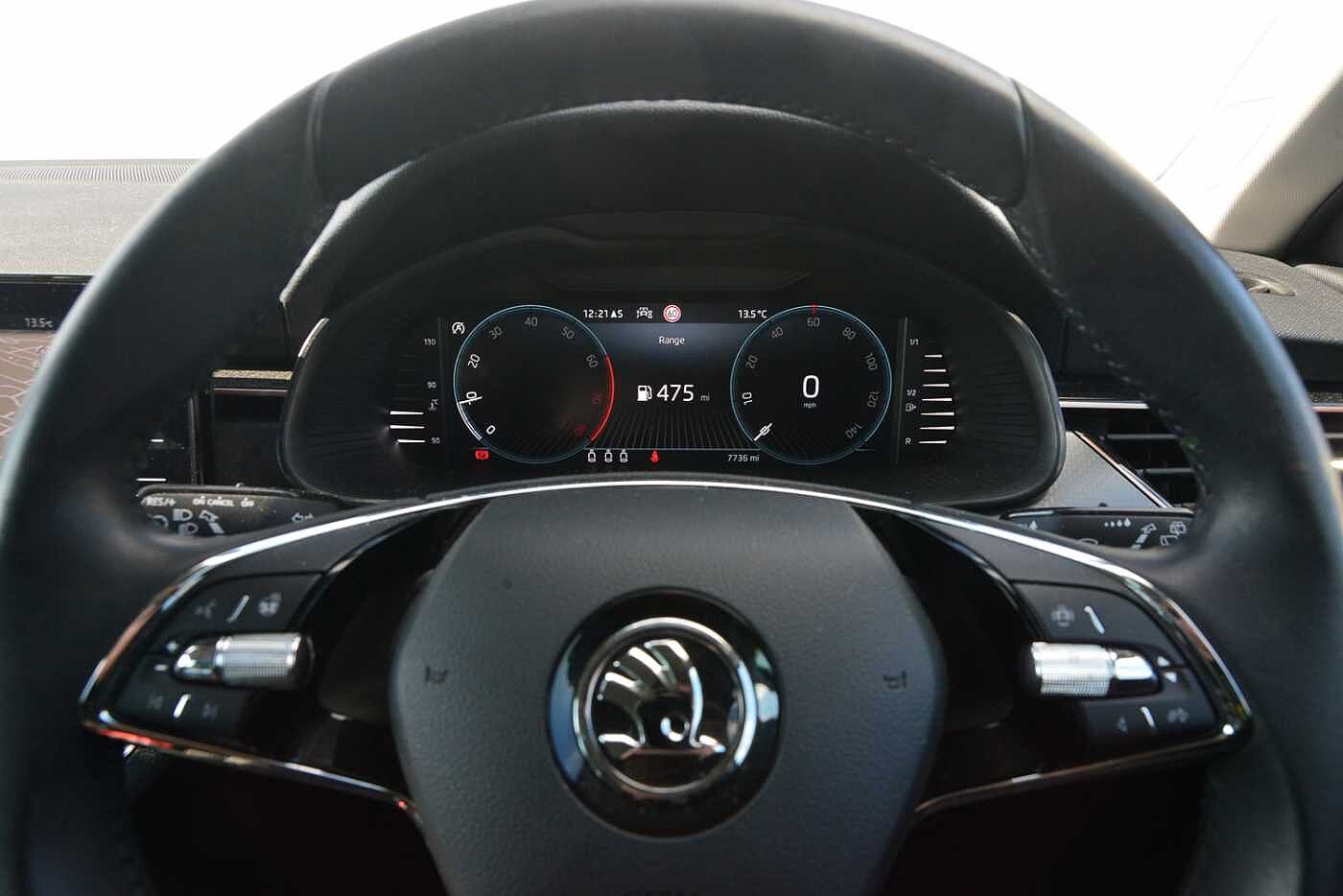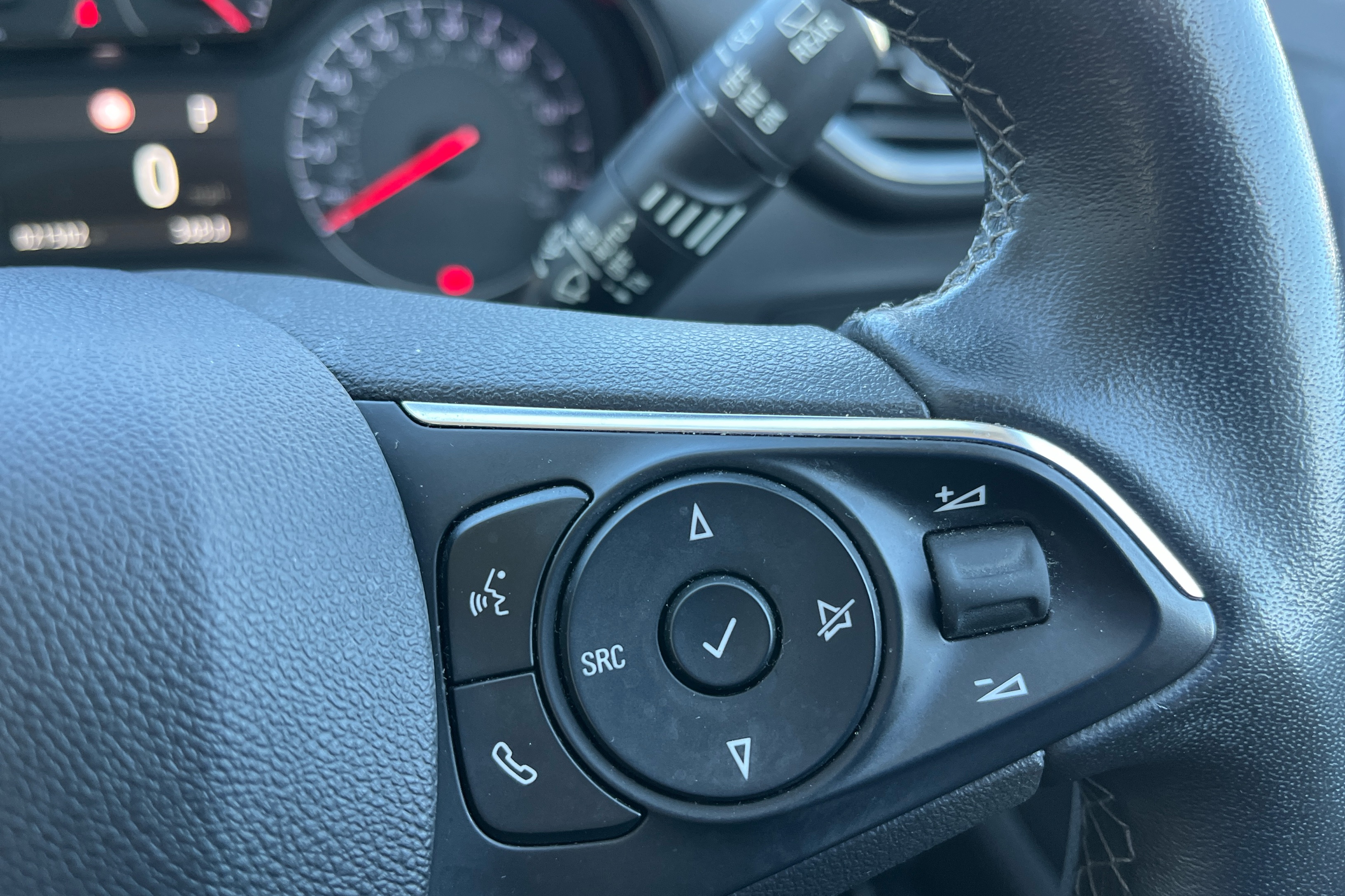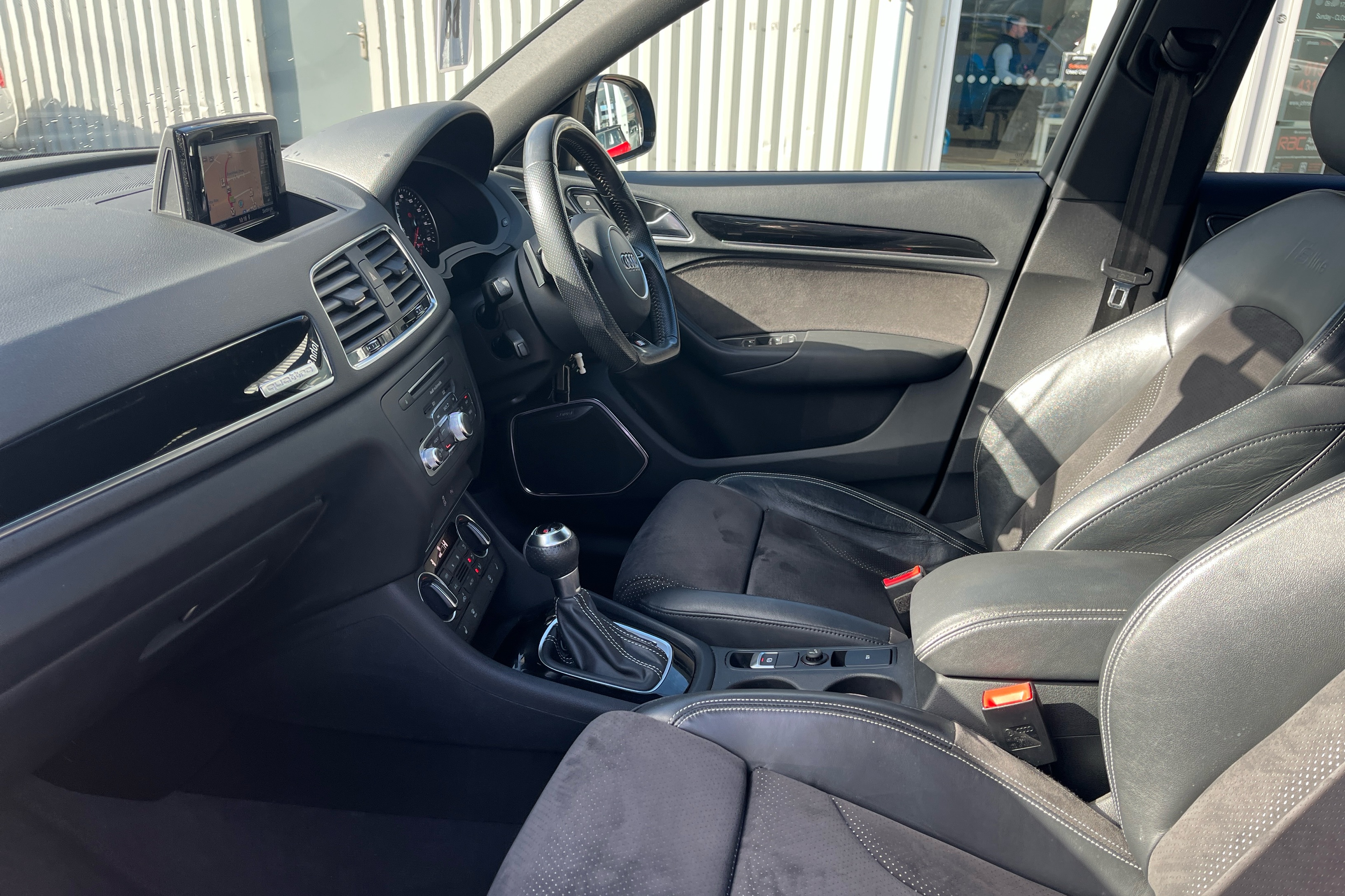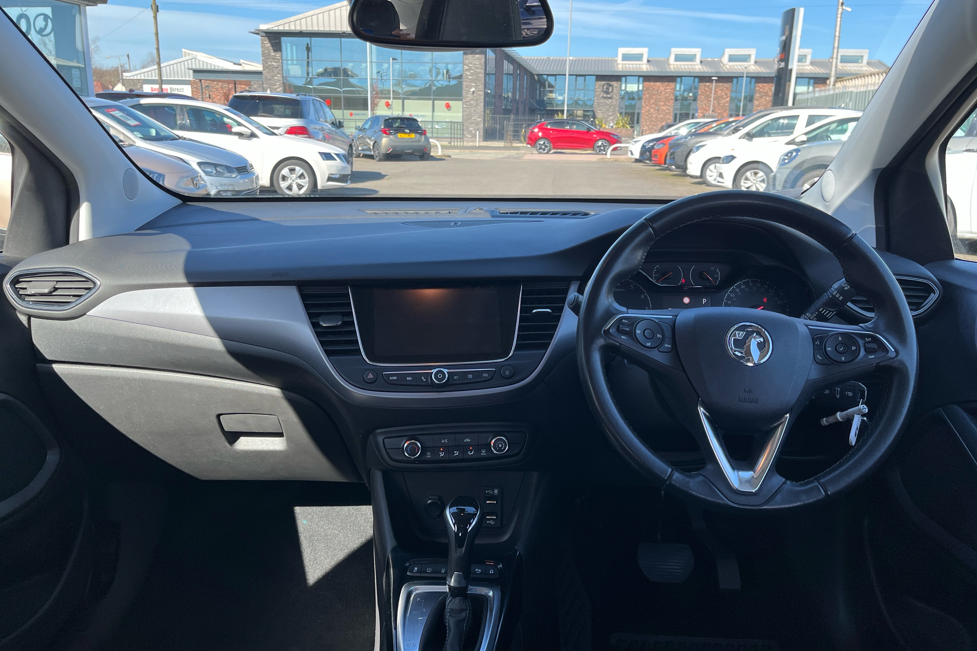 "3 spoke flat bottom multi-function perforated leather steering wheel with contrast stitching and aluminium gearshift paddles",