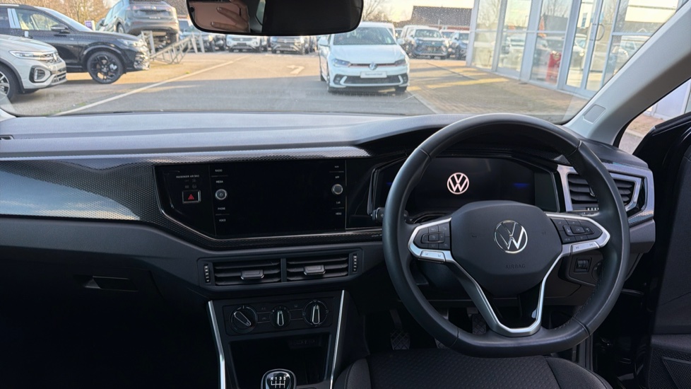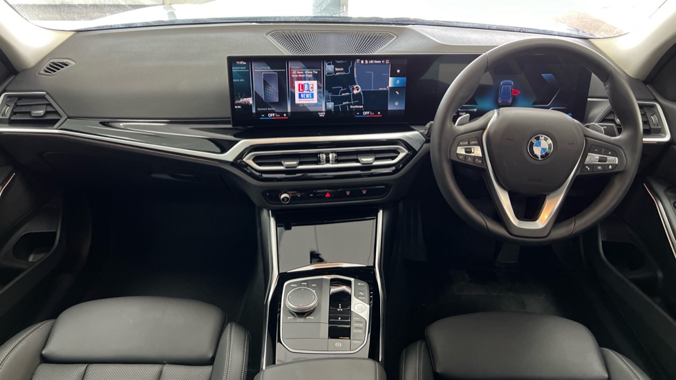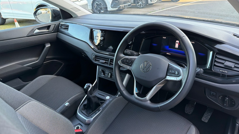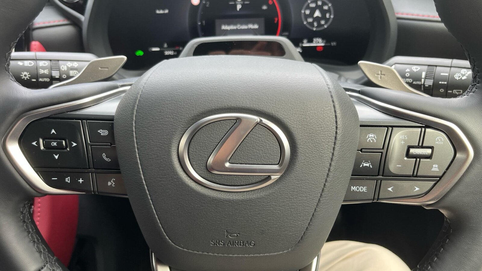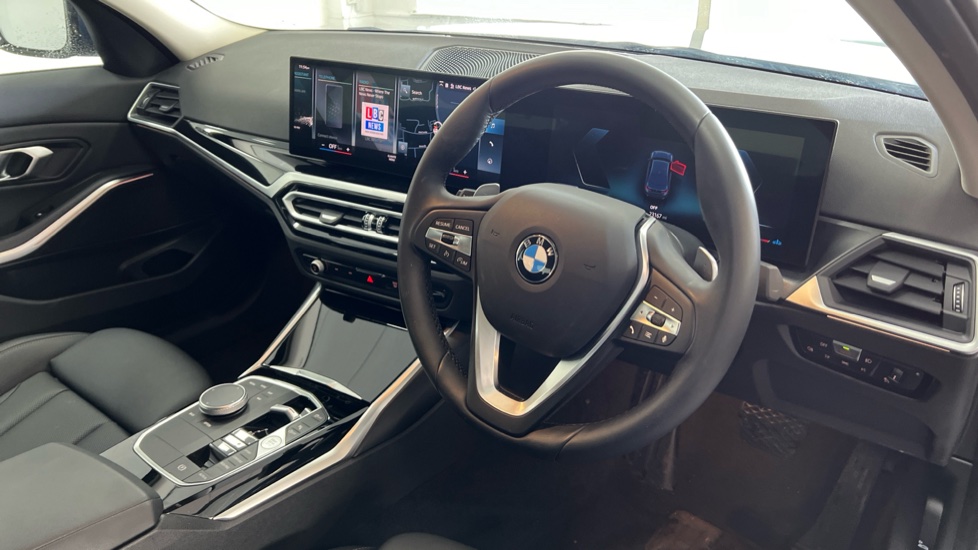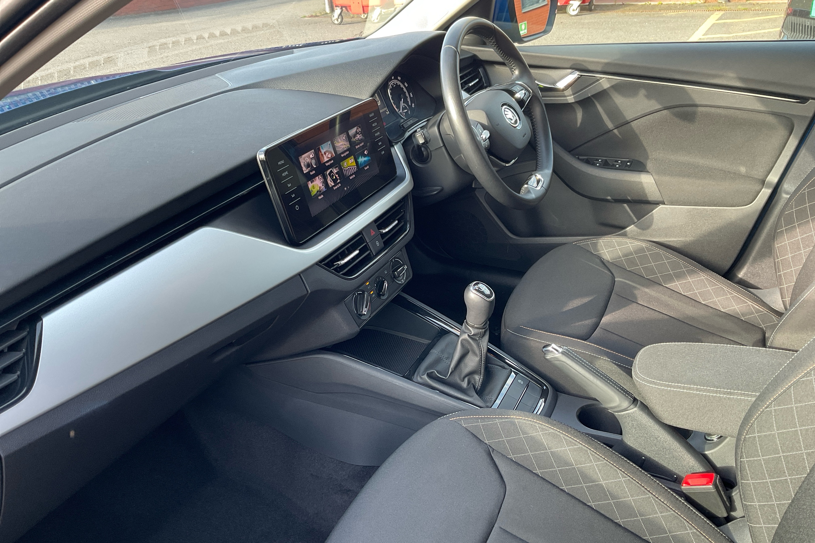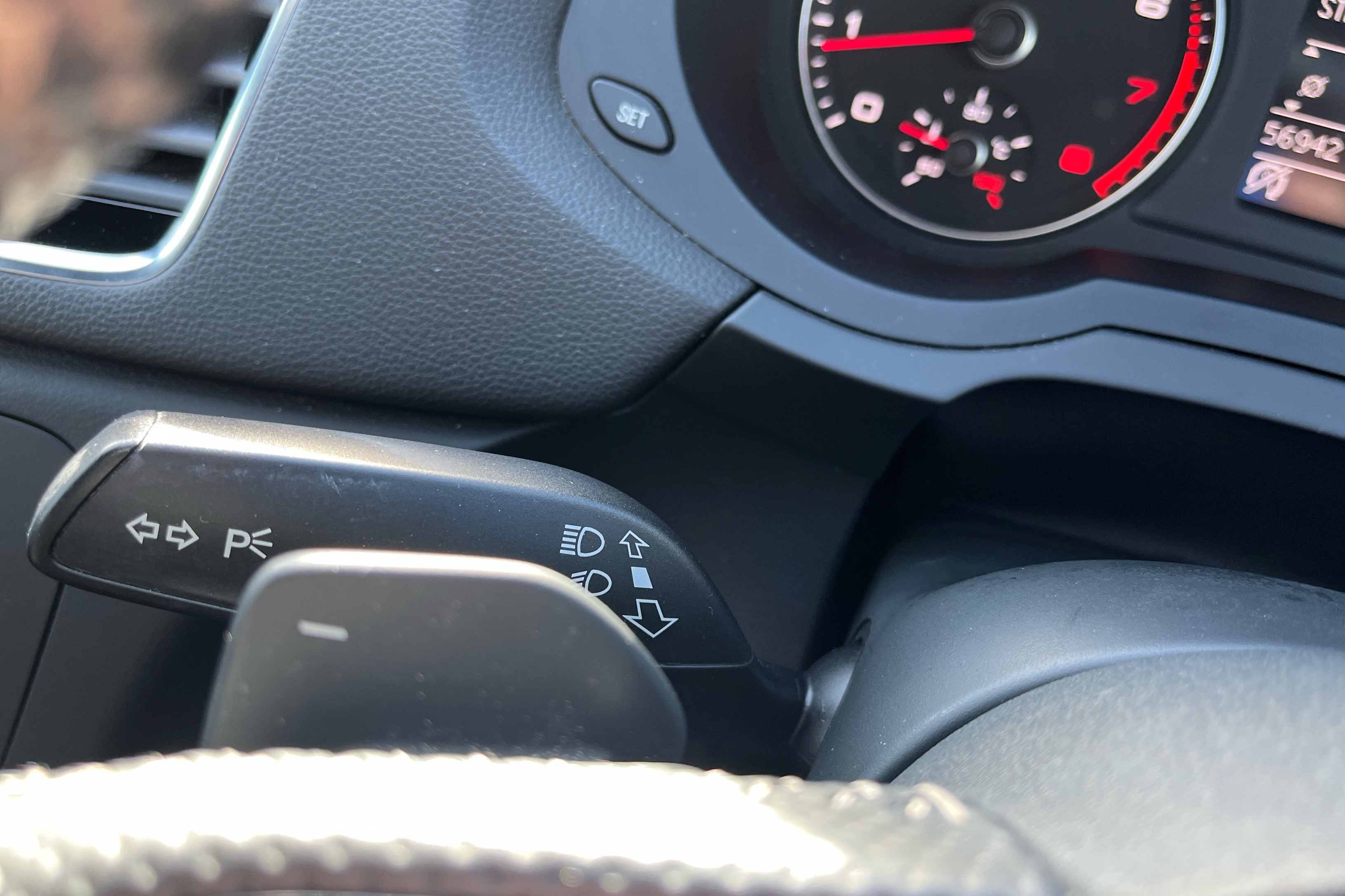 "3 spoke flat bottom multi-function perforated leather steering wheel with contrast stitching and aluminium gearshift paddles",