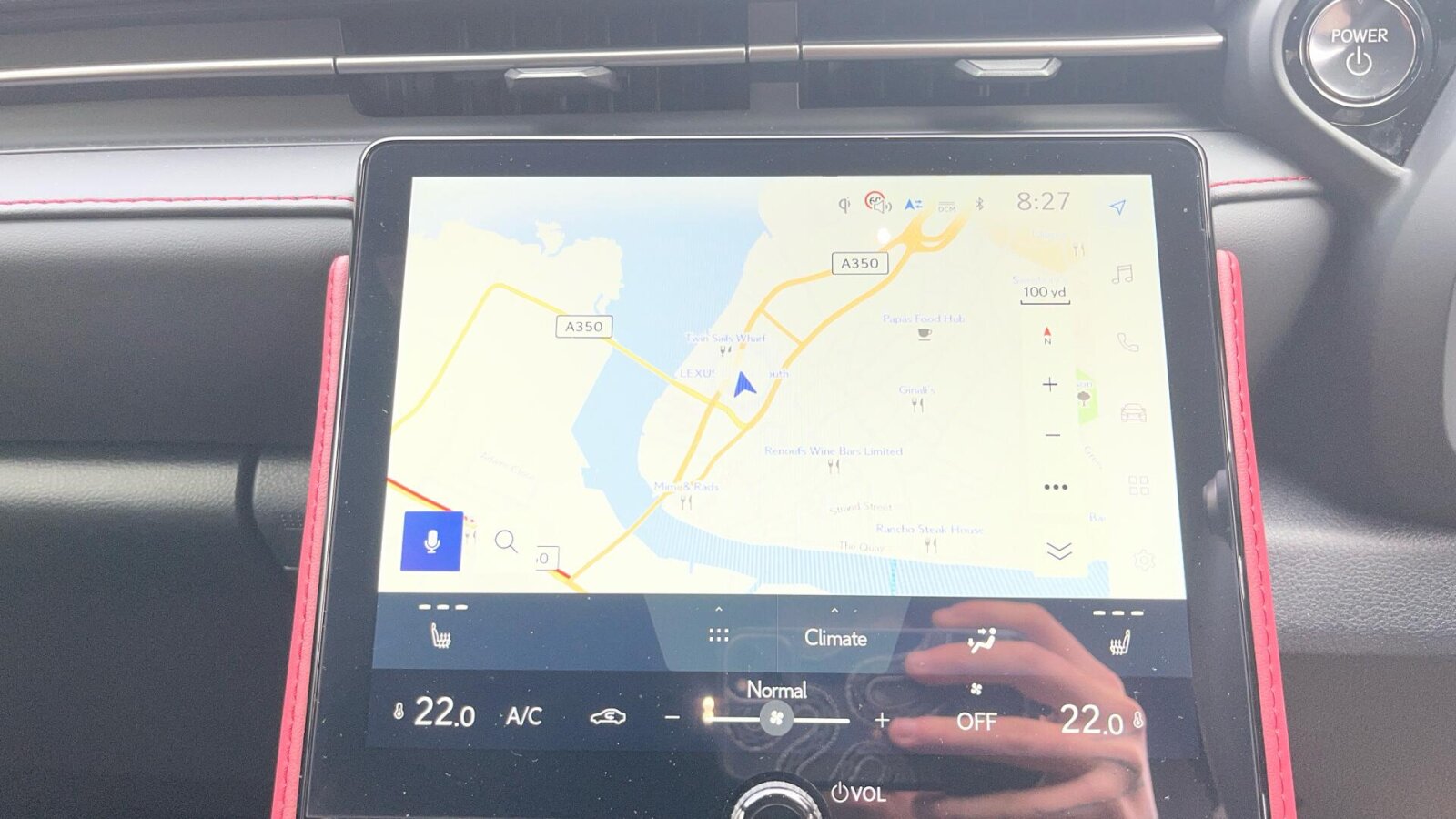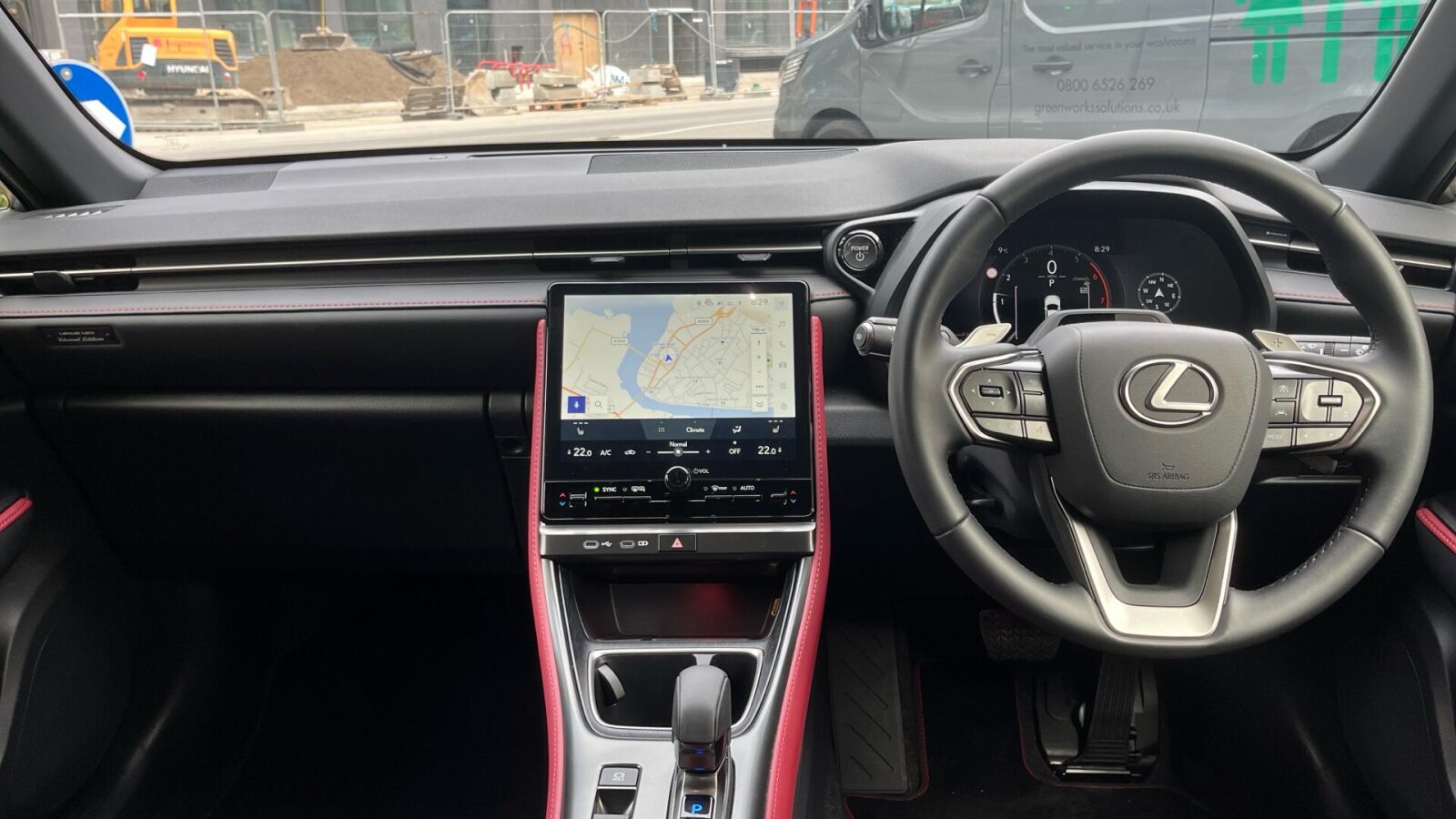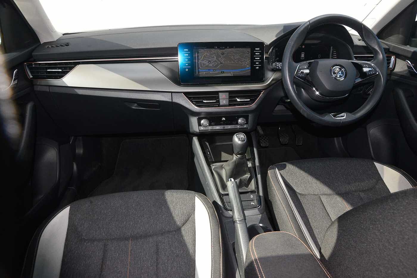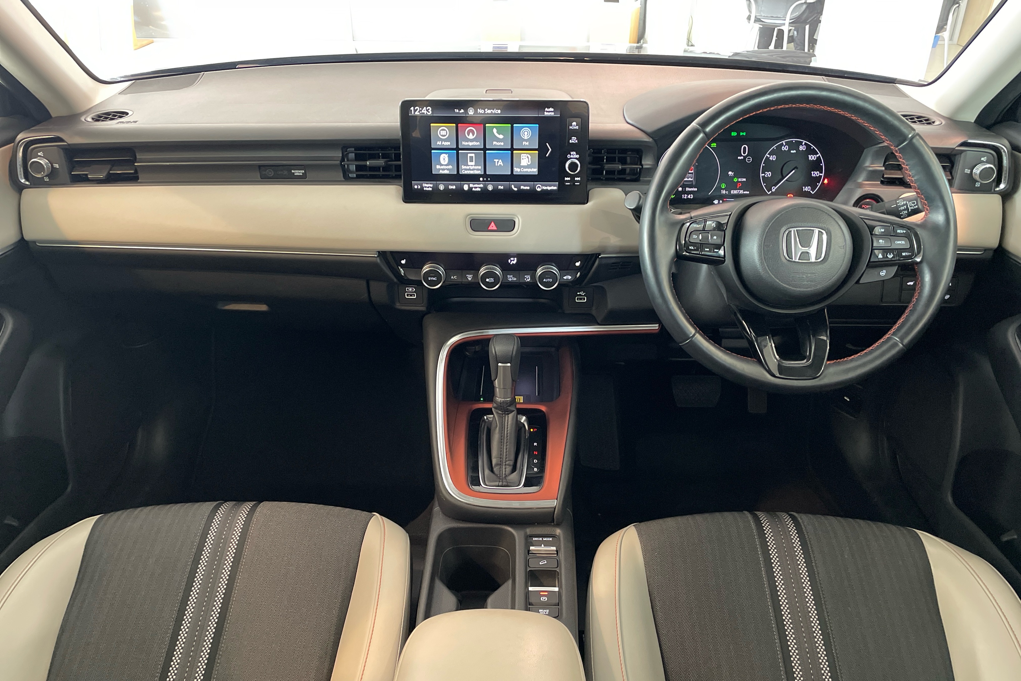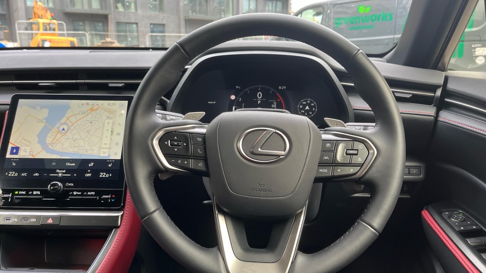 "3 spoke flat bottom multi-function perforated leather steering wheel with contrast stitching and aluminium gearshift paddles",
