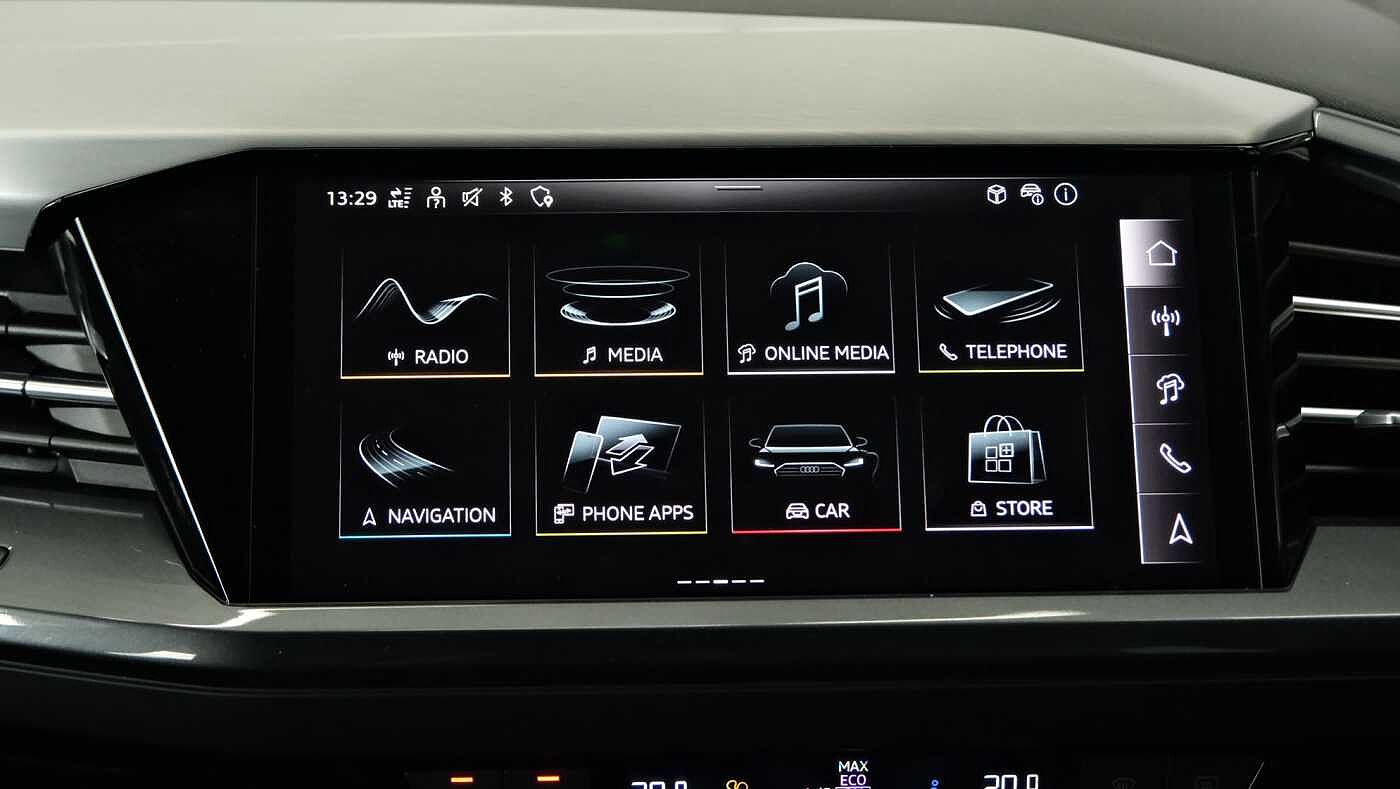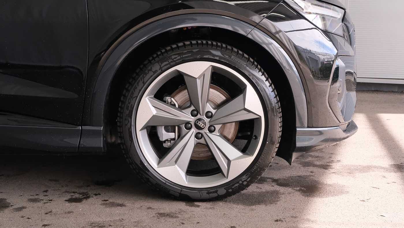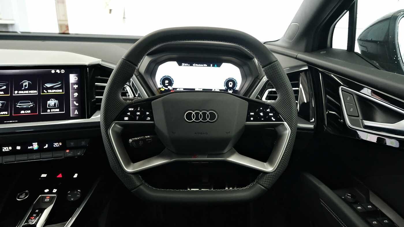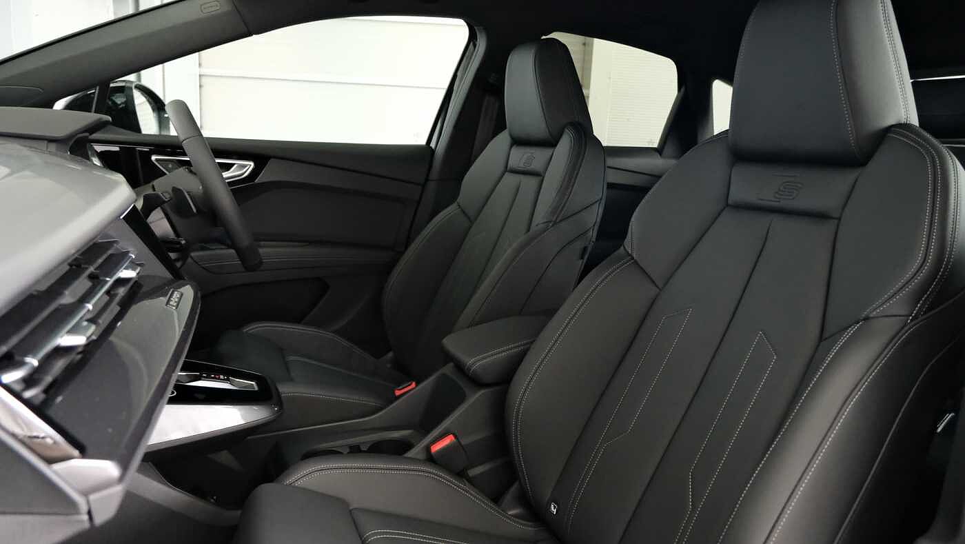 "features": "Adaptive cruise control with speed limiter, Advanced driver attention and drowsiness monitor, Audi application store, Audi connect safety and service (e-call), Audi drive select, Audi side assist with exit warning and rear cross traffic assist, Audi smartphone interface, Audi Virtual Cockpit - 10.25\" display, Bluetooth interface, Camera based traffic sign recognition, Lane departure warning including emergency assist, MMI Navigation Plus with high resolution 11.6 inch touchscreen colour display, Power operated tailgate with sensor controlled release, Progressive steering, Rear view camera, Swerve assist and turn assist, 11KW onboard charger, 175kW DC charging capability, AC and DC charging access point positioned on driver's side rear, Control unit with household plug and charging cable, Mode 2, Type 2 / G (10A), Mode 3 type 2 AC charging cable 22kW, Sport suspension, 2 USB-C ports with charge and data functions, Audi sound system with 8 loudspeakers incl. centre speaker, subwoofer and 6-channel amplifier with total output of 180 watts, DAB Digital radio, Audi rings and model badging in black (with powertrain designation removed), Contrast bumpers in Manhattan grey, Electrically adjustable/heated/folding/auto dimming door mirrors with integrated LED indications + kerb view function for passenger side, Frameless auto dimming interior rear view mirror, Heat insulating glass windscreen, Heated rear window, LED 3rd brake light, LED daytime running lights, LED Headlights, LED rear lights, Privacy glass - dark-tinted rear window, rear door windows and rear side windows, Projection light in the exterior mirrors, e-tron logo projected from the underside of the exterior mirror onto the ground, Rear side wing doors, Rear wiper, S Line badges on the front wings, S line exterior styling, Single frame grille with a structured, closed surface within an octagonal shape, 3 seat bench in 2nd row, 3 zone automatic air conditioning, 4 way electric lumbar support for driver and front passenger, 40/20/40 split folding rear seat bench, Accent surfaces in gloss black - centre console control panel, switch panel and trim on front doors in gloss black, Black carpets, Black cloth headlining, Comfort auxiliary air conditioning, Door armrests in leatherette, Flat top and bottomed twin-spoke leather multifunction sport steering wheel with shift paddles for recuperation, Front centre armrest, Front door sill trims with aluminium inlay, illuminated with S logo, Front/rear floor mats, Heated front seats, Pedals in stainless steel, Rear centre armrest with cupholders, Rear head restraints, Single front passenger seat, Steering wheel with trim in chrome look, S emblem, steering wheel grips in perforated leather and contrast stitching, Ambient lighting plus pack - Q4 E-tron, Black styling pack plus - Q4 E-tron, Non smoking pack - Q4 E-tron, 3x3 point rear seatbelts, Acoustic vehicle alerting system, Audi pre sense basic and rear, Convenience key with safelock, Driver and front passenger airbag with passenger airbag deactivation, Electric child locks, First aid kit with warning triangle and vests, Front side airbags with head airbag system and front interaction airbag, i - Size child seat mounting on the front passenger side and i - Size and top tether on the outer rear seats, Pre-sense front with pedestrian and cyclist detection, Rear seat occupant reminder for child presence detection, Seat belt monitoring, Tyre pressure loss indicator, Anti theft alarm, Anti-theft wheel bolts, Keyless Go, Aluminium look interior elements, Black dashboard, Vehicle tool kit, ",