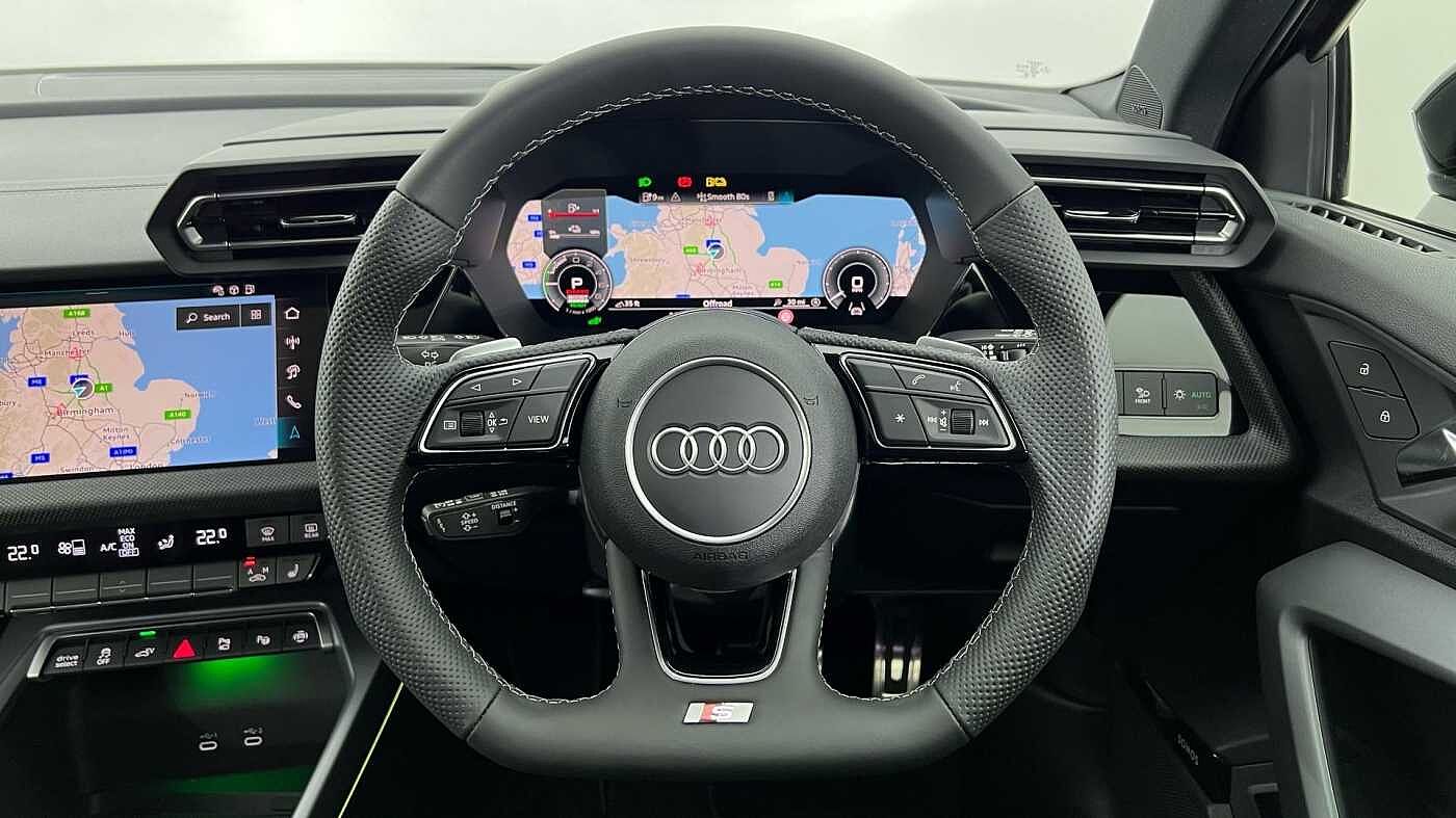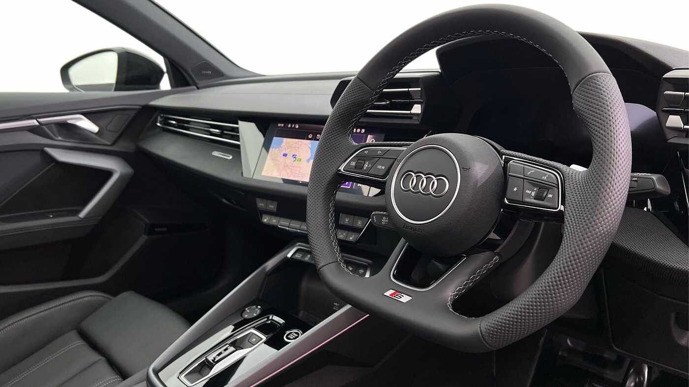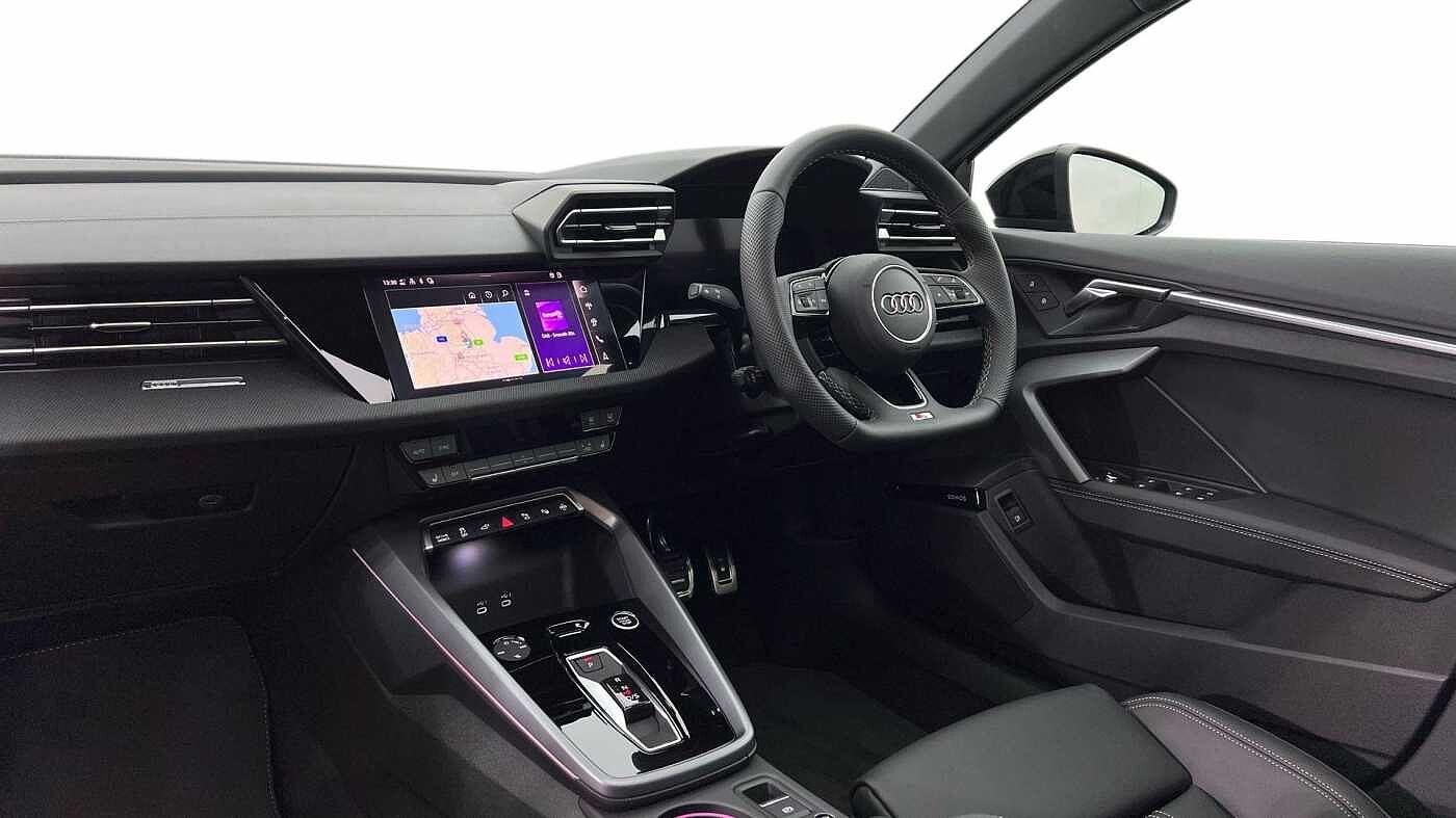 "features": "Adjustable speed limiter, Audi drive select, Audi smartphone interface with app store includes wireless Apple carplay, Android auto and Amazon alexa integration, Audi virtual cockpit plus - 12.3\" full HD resolution dynamic digital instrument cluster, Automatic start/stop system with recuperation, Bluetooth interface, Camera based traffic sign recognition, Collision avoidance assistant, Cruise control, Distraction and Fatigue warning, e-Call (emergency call), Electromechanical power speed sensitive steering, Lane departure warning system, MMI Navigation Plus with high resolution 10.1\" colour touch screen display, Park Assist with parking system Plus, Service indicator, Tailgate, Trip computer, Voice control system with natural language interaction, Diesel particulate filter, Sports suspension, Audi Phonebox light with wireless charging, Audi sound system - 10 loudspeakers including centre loudspeaker and subwoofer, DAB Digital radio, USB ports with charging function in the rear, Acoustic glass windscreen, Aluminium window trim, Auto dimming frameless rear view mirror, Body colour exterior mirrors, Chrome exhaust tailpipes, Electrically adjustable/heated/folding/auto dimming door mirrors with integrated LED indications + kerb view function for passenger side, Exterior model badging, Front and rear side air inlets in grained matt black with dark liquid chrome frame, Front electric windows, Front radiator grill in high gloss dark chrome, Heat insulating glass windscreen, Illuminated door sills with aluminium inserts at the front with S logo, LED 3rd brake light, LED daytime running lights, LED headlights with LED rear lights and dynamic rear indicators, Light and rain sensors, Privacy glass - dark tinted rear window, rear door and side windows, Rear diffuser and grill in grained matt black with inlay in dark liquid chrome, Rear electric windows, Rear side wing doors, Rear wiper, S line bumpers, S roof spoiler, Side S line emblems on front wings, Side sill trim in dark liquid chrome, 12V socket and storage compartment in front centre console, 3 seat bench in 2nd row, 3 spoke flat bottomed leather multifunction sport steering wheel with gear shift paddles, 3-zone deluxe automatic air conditioning, 4 way electrically adjustable lumbar support for driver and front passenger, 40/20/40 split folding rear seat bench, Black cloth headlining, Front and rear centre armrest in artificial leather, Front and rear headrests, Front/rear floor mats, Heated front seats, Height and reach adjustable steering wheel, Manual boot compartment lid, Manually adjustable front seats, Rear cup holders, S badging on the steering wheel, Seat side bolsters, Single front passenger seat, Stainless steel pedals and front footrest in black, Twin leather upholstery with front sports seats S embossed logo, Aluminium interior elements pack - A3 Sportback, Multi-coloured LED interior lighting package - A3, 3x3 point rear seat belts, Driver and front passenger airbag with passenger airbag deactivation, Electronic Stabilisation Control (ESC) including ABS, ASR and EDL, First aid kit with warning triangle and 2 safety vests, Front side airbags with head airbags and interaction airbag, Hill hold assist, Pre-sense front with pedestrian and cyclist detection, Seatbelt monitoring, Tyre pressure loss indicator, Anti theft alarm, Anti-theft wheel bolts, Electronically operated child locks, Immobiliser, Remote central locking with safelock, Dash & door Inlay in dark aluminium Spectrum, ",
