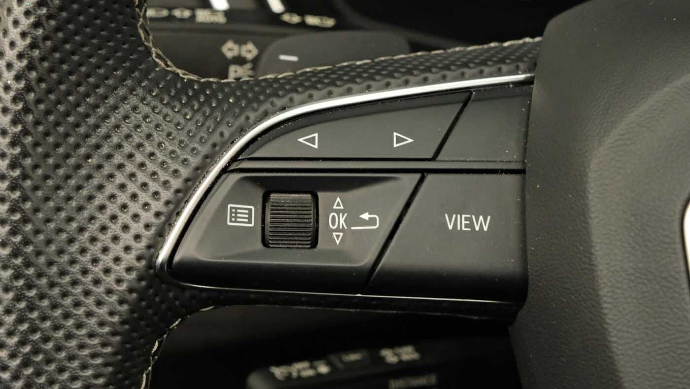 "3 spoke flat bottomed multi-function leather sport steering wheel with gear shift paddles with S logo",