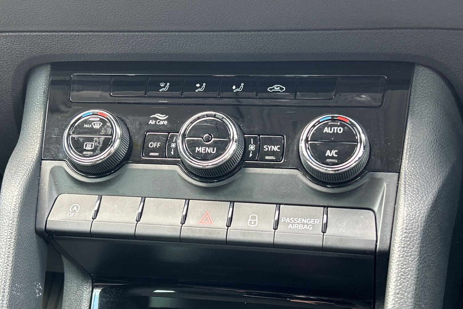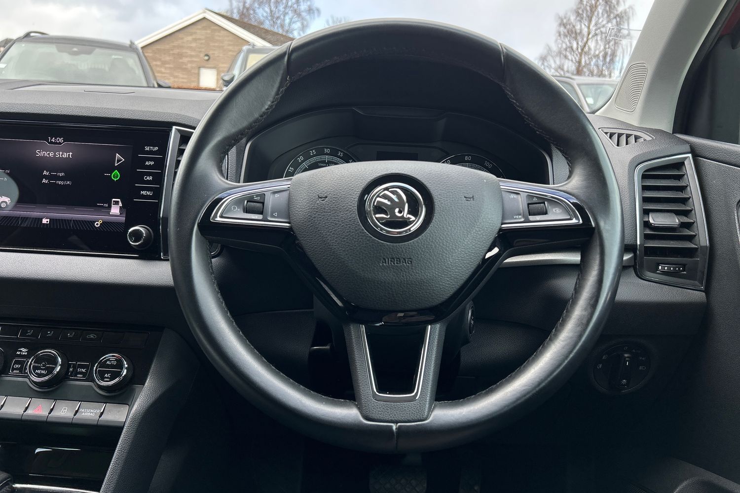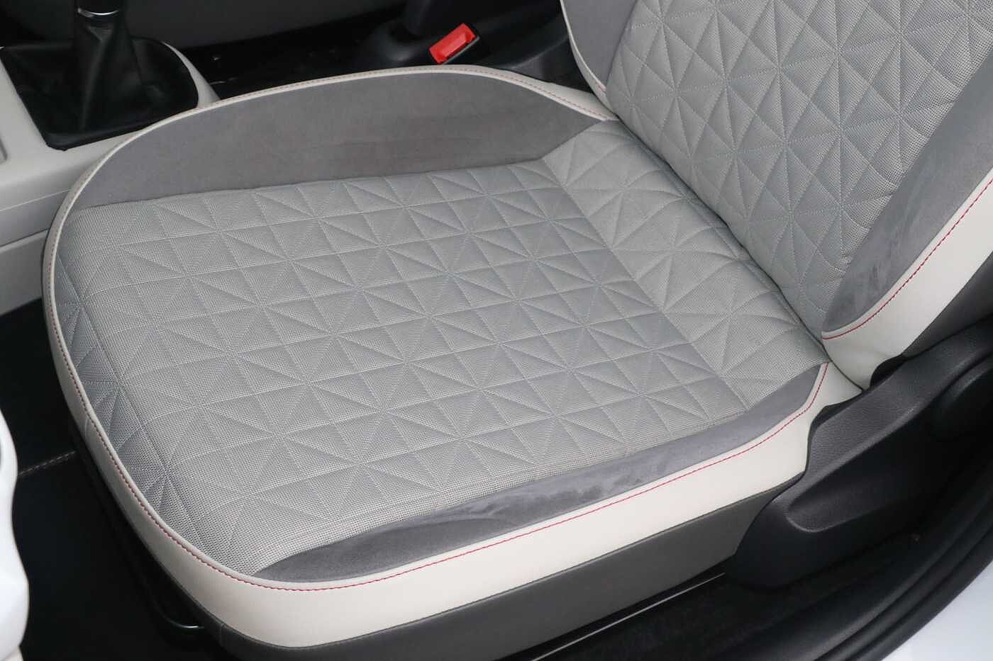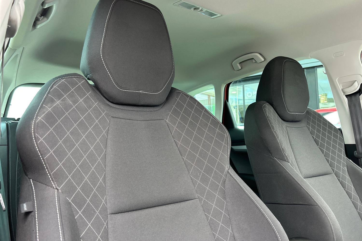 "Tailored instrument panel with contrast stitching"