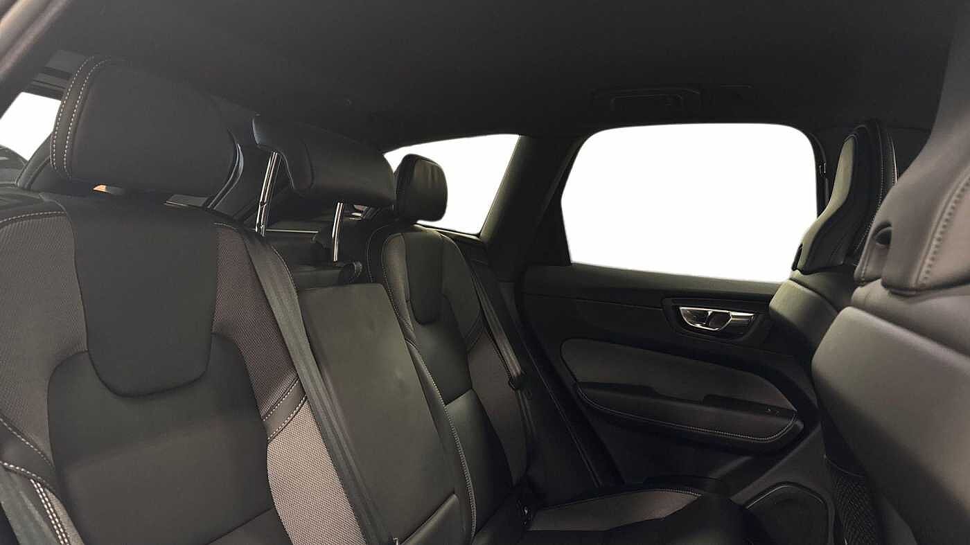 "features": "12.3\" Progressive Driver Display, 360 degree surround view parking camera with side proximity sensors, 9\" centre console touch screen, Adjustable steering wheel force, Apple carplay (wired), Bluetooth handsfree system, Driver alert control with lane keeping aid, Emergency services call system, Front and rear park assist, Google Automotive Services, Intelligent speed assistance, Oncoming Lane Mitigation, PAS, Power operated tailgate with handsfree opening and closing, Service interval indicator, Speed limiter, Speed sensitive steering, Trip computer, Volvo cars services with app, Volvo on call with App, Wireless/Inductive Mobile Phone Charging, 8 speed automatic transmission with start/stop + manual change functions, Active four-C chassis + four corner adaptive damper with electronic rear air suspension, DAB Digital radio, Premium sound by Bowers and Wilkins, dirac live, dolby pro logic II surround sound, 14 speakers/1100W output and fresh air subwoofer, Steering wheel remote infotainment controls, Active bending headlights with adaptive shadow technology, Adaptive brake lights with high level LED brake lights, Auto dimming interior + exterior mirrors, Automatic headlight levelling system, Automatic LED Headlights + Active high beam incorporating daytime running lights, Dark tinted windows for rear side windows and cargo area, Electric adjustable/heated/auto power folding door mirrors, Electric front+rear windows, Front aluminium tread plates, Headlight cleaning system, High gloss black door mirrors and window surround, High gloss black front and rear bumper decoratives, High gloss black mesh front grille with high gloss black surround, Home safe and approach lighting, Integrated roof rails in high gloss black, LED front fog lights with static cornering light function, Power glass tilt and slide panoramic sunroof with sun curtain, Puddle lights, Rain sensor with automatic windscreen wiper activation, Rear side wing doors, Rear wiper, Roof antenna, Roof spoiler, Tinted windscreen, Visible VIN plate, 12V socket in front tunnel console and luggage compartment, 3 seat bench in 2nd row, 4 Zone electronic climate control, A-pillar parking ticket holder, Air purifier particulate matter (PM) 2.5 filter, B Pillar ventilation, Bright metal luggage scuff plate, Centre console cupholders and storage, Charcoal floor mats, Front and rear courtesy lights, Front and rear door pocket illumination, Front cupholder illumination, Front footwell illumination, Front reading lights, Front seat cushion extensions, Glovebox compartment with illumination, Head restraints for all seats, Heated front seats, Heated steering wheel, Height/reach adjustable steering column, Illuminated luggage compartment, Illuminated vanity mirrors + ticket holder, ISOFIX attachment on outer rear seats, Load cover, Load protection net, Multi directional lumbar support, Power driver seat with memory + exterior mirrors memory, Power folding rear headrests, Power passenger seat with memory, Rear armrest with cupholder, Rear footwell and front and rear side step illumination, Rear reading lights, Rear seat concealed storage, Single front passenger seat, Tailgate illumination and ambient door lighting, Underfloor stowage compartment, Versatile split folding rear seat - 60/40, Driver assist pack with Driver awareness - XC60, 5 three point seatbelts, City safety with steering support with Pedestrian + cyclist + front collision warning with full auto brake and rear auto brake, Drivers knee airbag, Dual stage driver/passenger airbags, Electronic parking brake with auto hold, First aid kit, Front seats SIPS airbags, Hill descent control - Off-road drive mode, Hill start assist, IC (Inflatable Curtains) - Full Length, Passenger airbag cut-off device, Power child locks on rear doors, Run off Road Mitigation, Run off Road Protection, Seatbelt reminder and pretensioners, SIPS (Side Impact Protection System), Slippery road and hazard light alert, Stability and Traction Control with Spin control, Engine Drag Control and Corner Traction Control, Tyre pressure monitoring system, Vehicle deceleration control with Anti-lock Brake System, Electronic Brake Distribution and Emergency Brake Assist, Warning triangle, WHIPS whiplash protection system - front, Anti-theft alarm including immobiliser/volume sensor + level sensor, Care key with user defined top speed, Key integrated remote control central locking + fuel flap with deadlocking system and auto open/close power windows, Keyless Drive (includes Keyless Entry and Keyless Start), Locking wheel nuts, Private locking for tailgate, Tailored instrument panel with contrast stitching, ",
