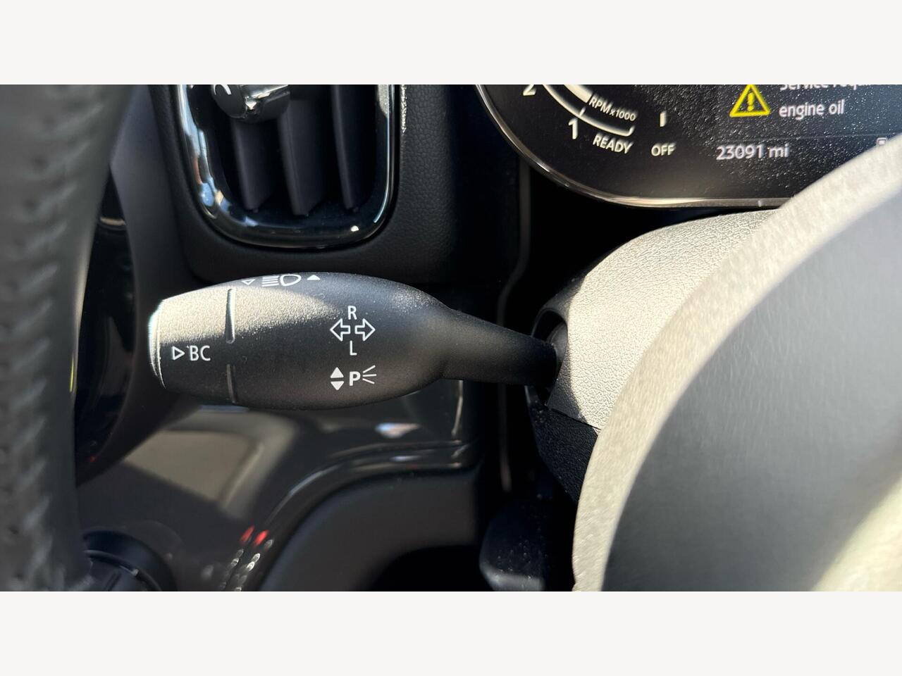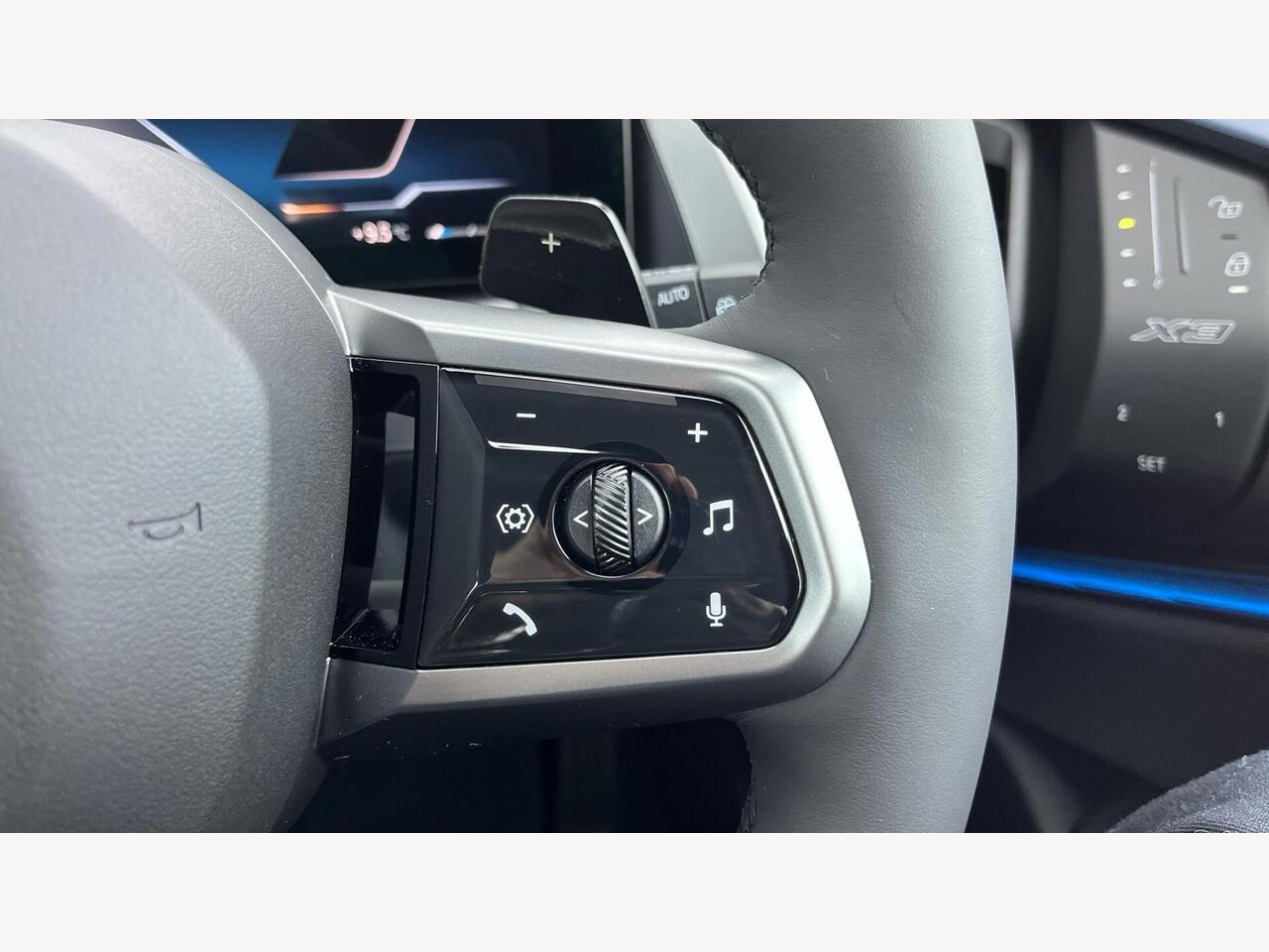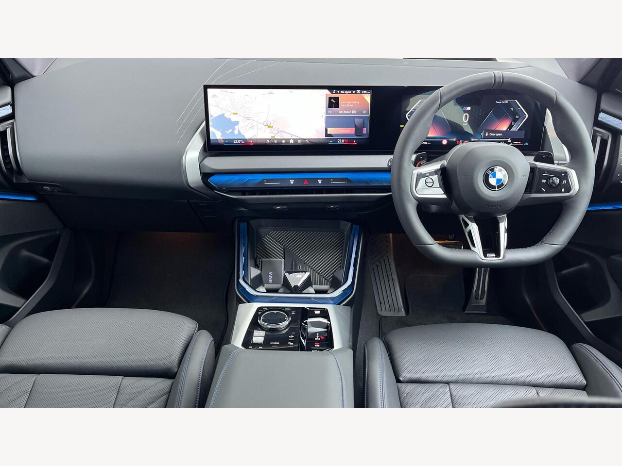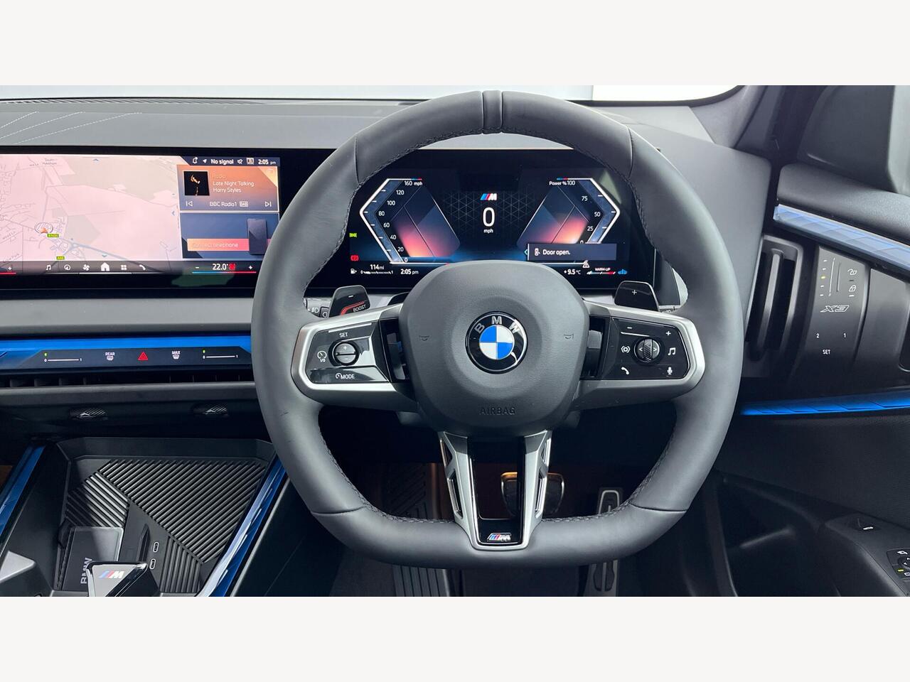 "Walknappa leather steering wheel with grey seam and MINI Yours badge on Piano Black lower steering wheel spoke"