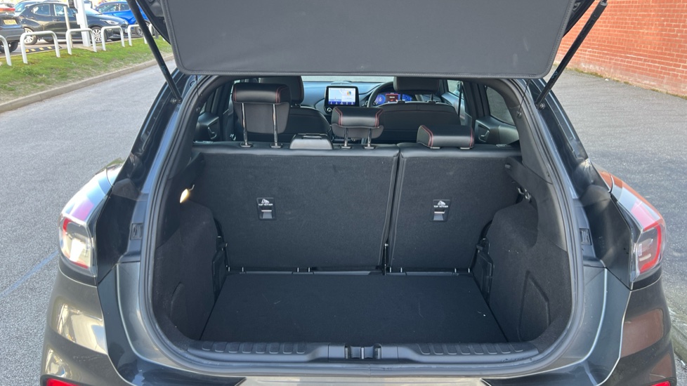 "Parcel shelf stow function under luggage board",