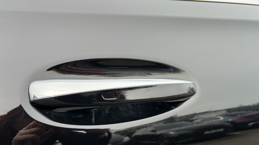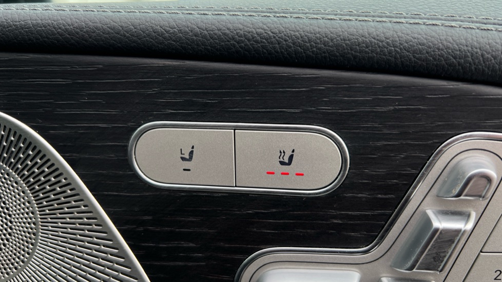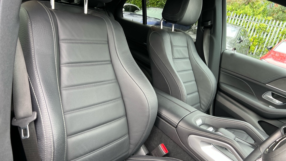 "Synthetic leather wrapped door handle with contrasting stitching",