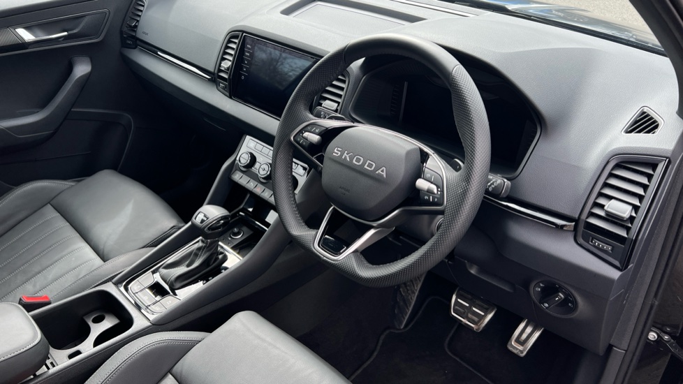 "features": "Advanced driver attention and drowsiness monitor, Bluetooth system, E-call, Front assist system, PAS, Rear parking sensors, Rear view camera, Service indicator, Speed limiter, Traffic sign recognition, Virtual cockpit with 10.25\" display, Voice control system, Wireless smartlink, 4 USB C ports, 8 Speakers, 9.2\" Skoda navigation display, DAB Digital radio, Auto dimming rear view mirror, Automatic headlight control with coming home and leaving home feature, Black roof rails, Body colour bumpers, Body colour door mirrors and handles, Chrome grille surround, Front and rear electric windows, Full LED headlights, Heated rear window, LED brake lights, LED daytime running lights, LED front turning lights, LED high beam, LED low beam, LED third brake light, Rear LED fog light, Rear side wing doors, Rear wiper, Ticket holder inside windscreen, 12V socket in luggage compartment, 3 seat bench in 2nd row, Black hotstamping, Cargo elements, Chrome inner door handles, Driver and passenger sun visors with vanity mirror, Dual zone climate control, Front and rear roof lights, Front centre armrest, Front head restraints, Glove compartment with illumination, Height adjustable driver seat, Height adjustable front passenger seat, Ice scraper, Inner circulation control with pollen filter, ISOFIX on front passenger seat, Isofix preparation for back seats, Krepp recycled decor inserts, Leather gearknob and handbrake lever, Loft cloth upholstery, Manual lumbar support for front seats, Net package and top tether hooks in boot space, Net under rear shelf, Overhead glasses storage compartment, Pocket on the back of both front seats include mobile phone pockets, Rake/reach adjustable steering wheel, Reading lights, Satin black door inserts, Single front passenger seat, Textile floor mats, Third rear headrest, Top tether for front passenger seat, Umbrella in driver's door, 3x3 point rear seatbelts, Airbags - driver and front passenger, Disc brakes, ESP, Extended and predictive pedestrian/cyclist protection, Front passenger airbag deactivation switch, Front side airbags with curtain airbags, Hill hold control, Manual leather parking brake, Manual rear child locks, One tone horn, Seatbelt reminder for driver an co-driver, Traction control, Tyre pressure monitor, Anti-theft alarm system with interior monitoring, backup horn, towing protection and remote central locking with SAFE system, Anti-theft wheel bolts, Electronic engine immobilizer, ",