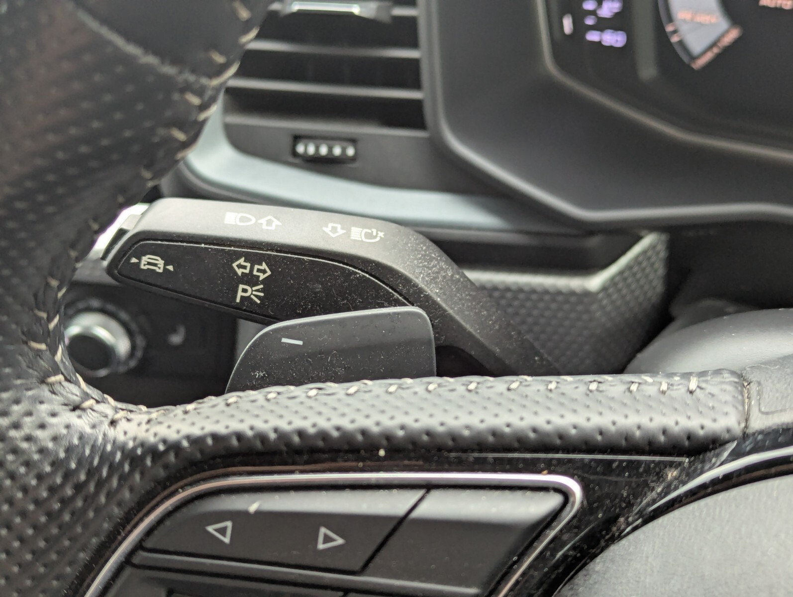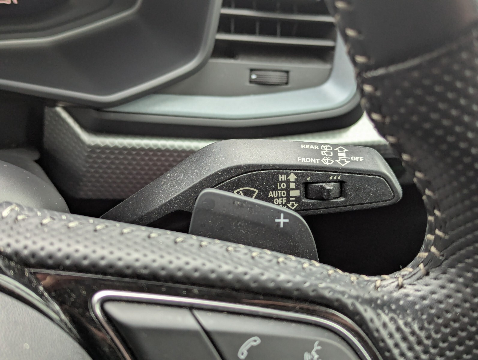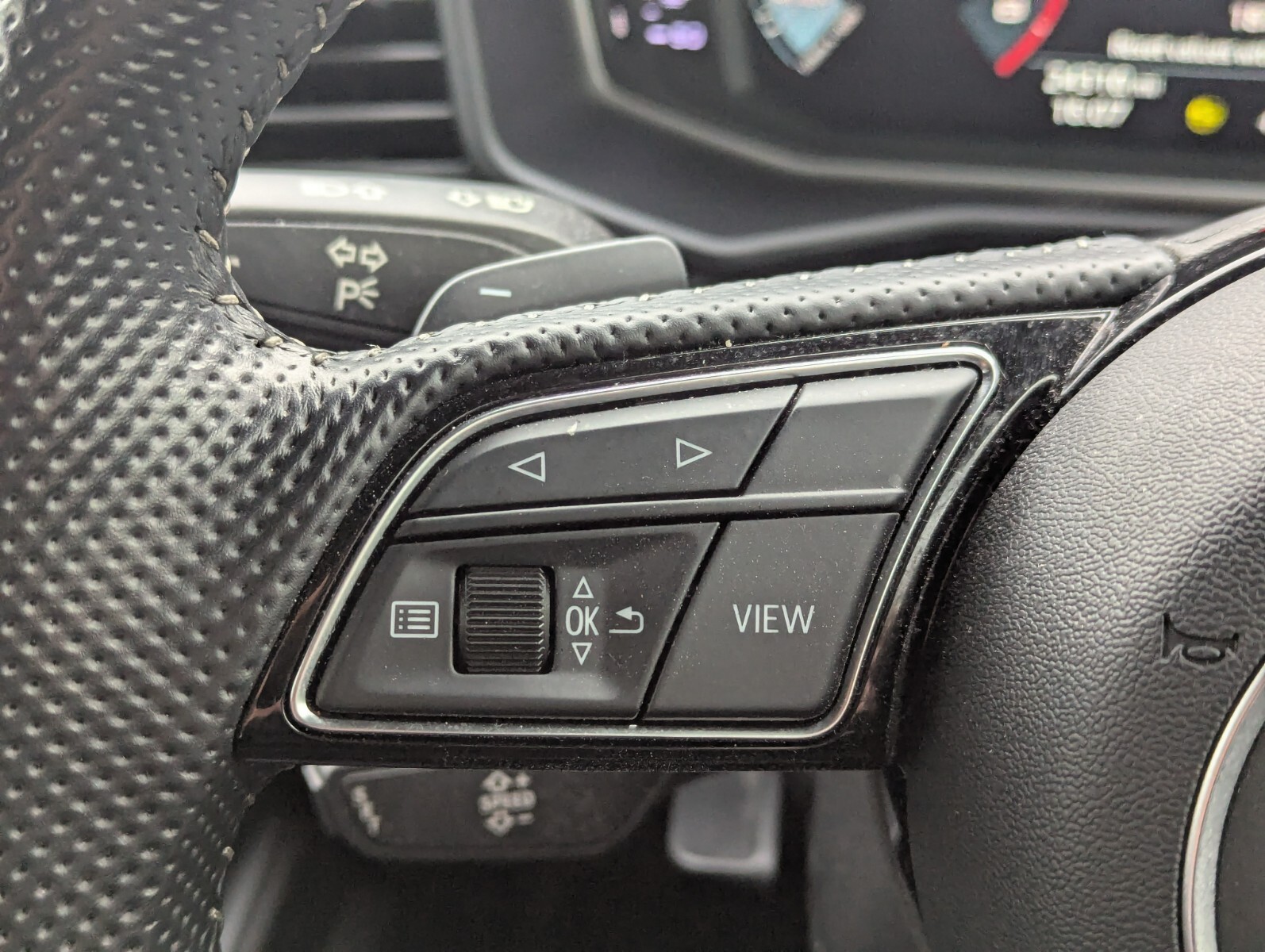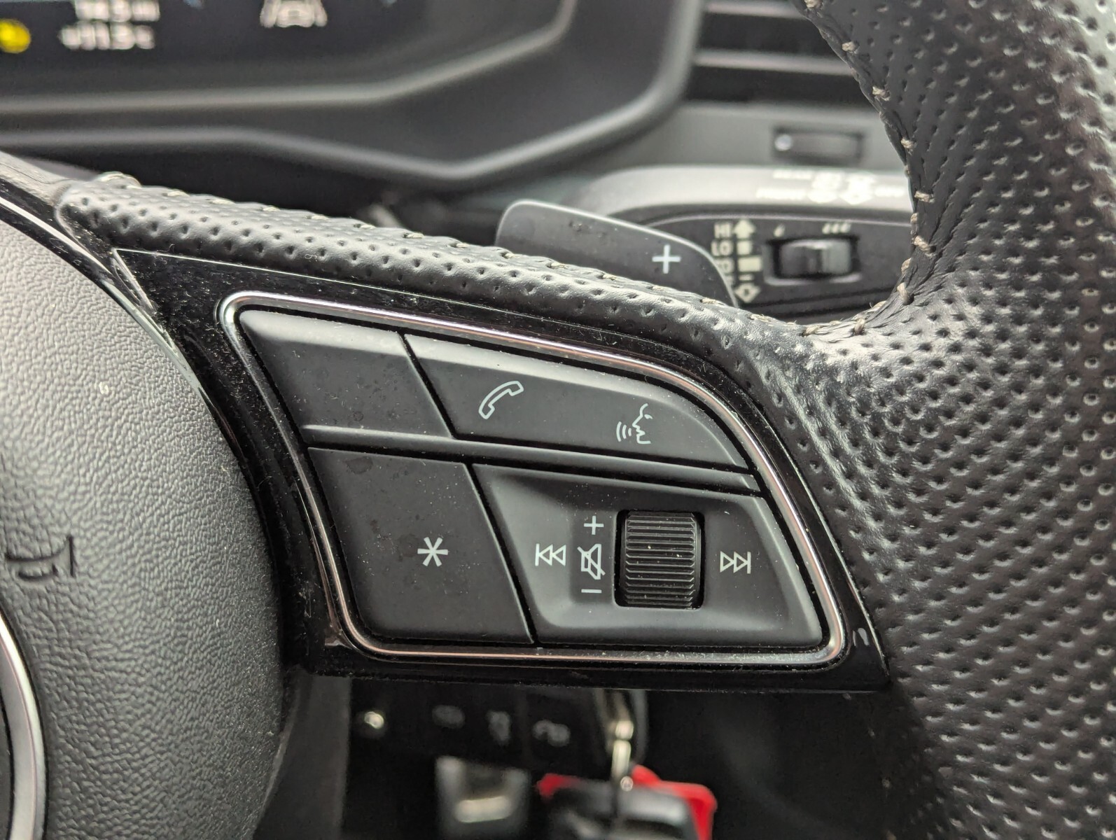 "3 spoke sports leather heated multifunction steering wheel with DSG paddles",