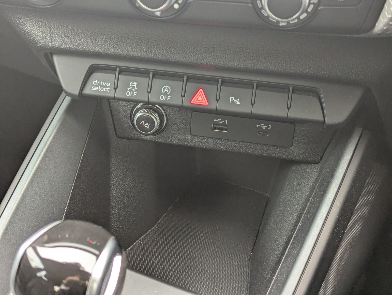"Under passenger seat storage compartment"
