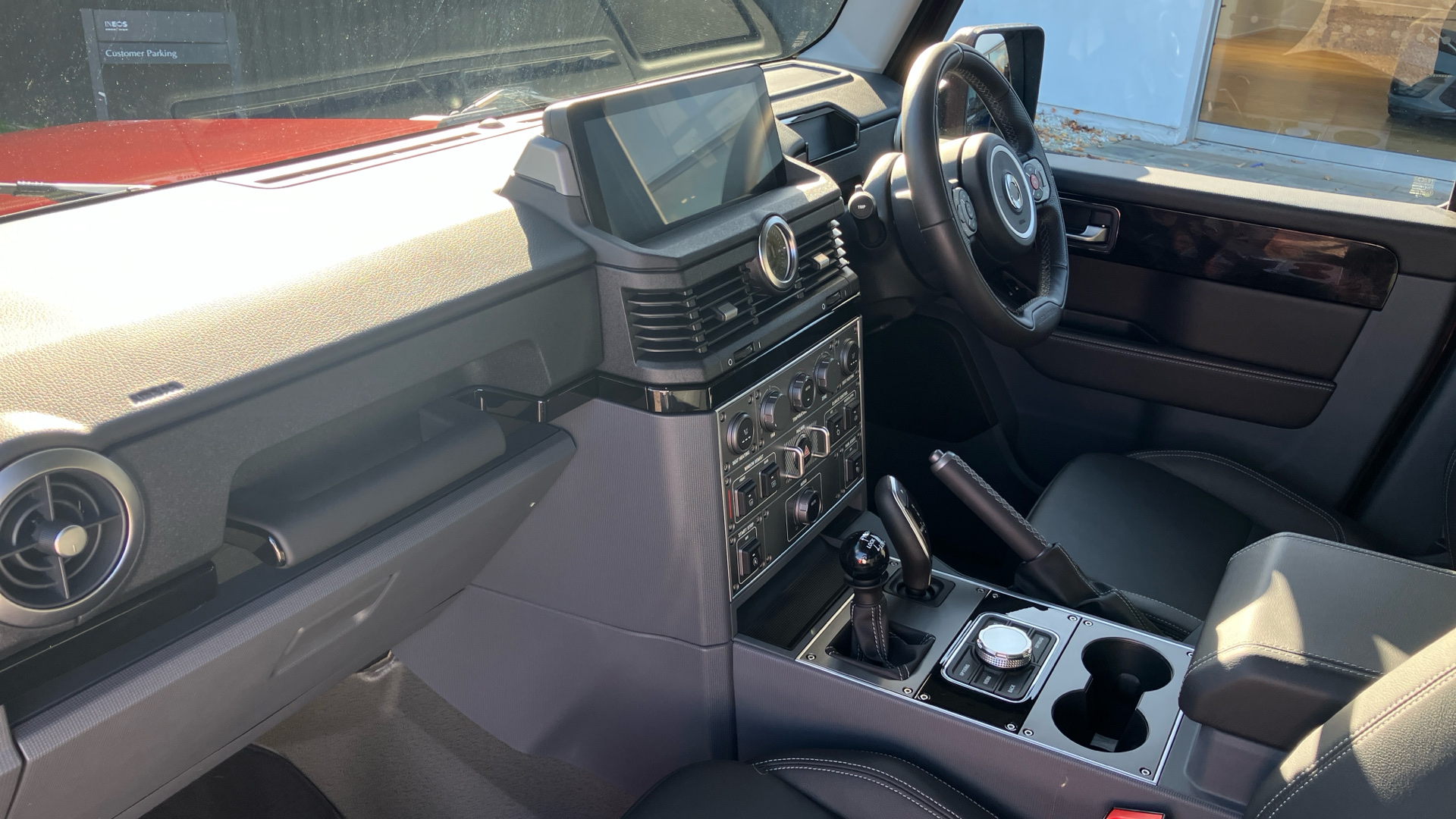 "High centre console with sliding armrest and storage",