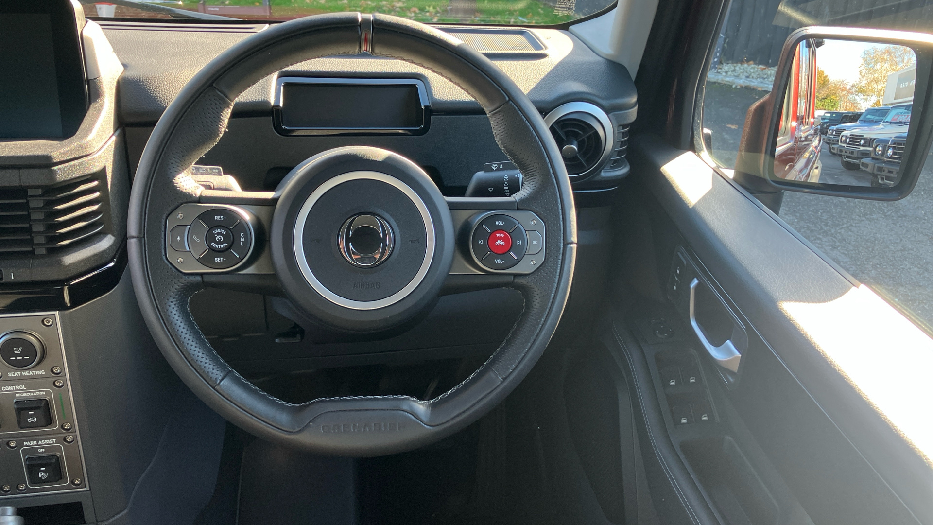 "Steering wheel mounted cruise control",